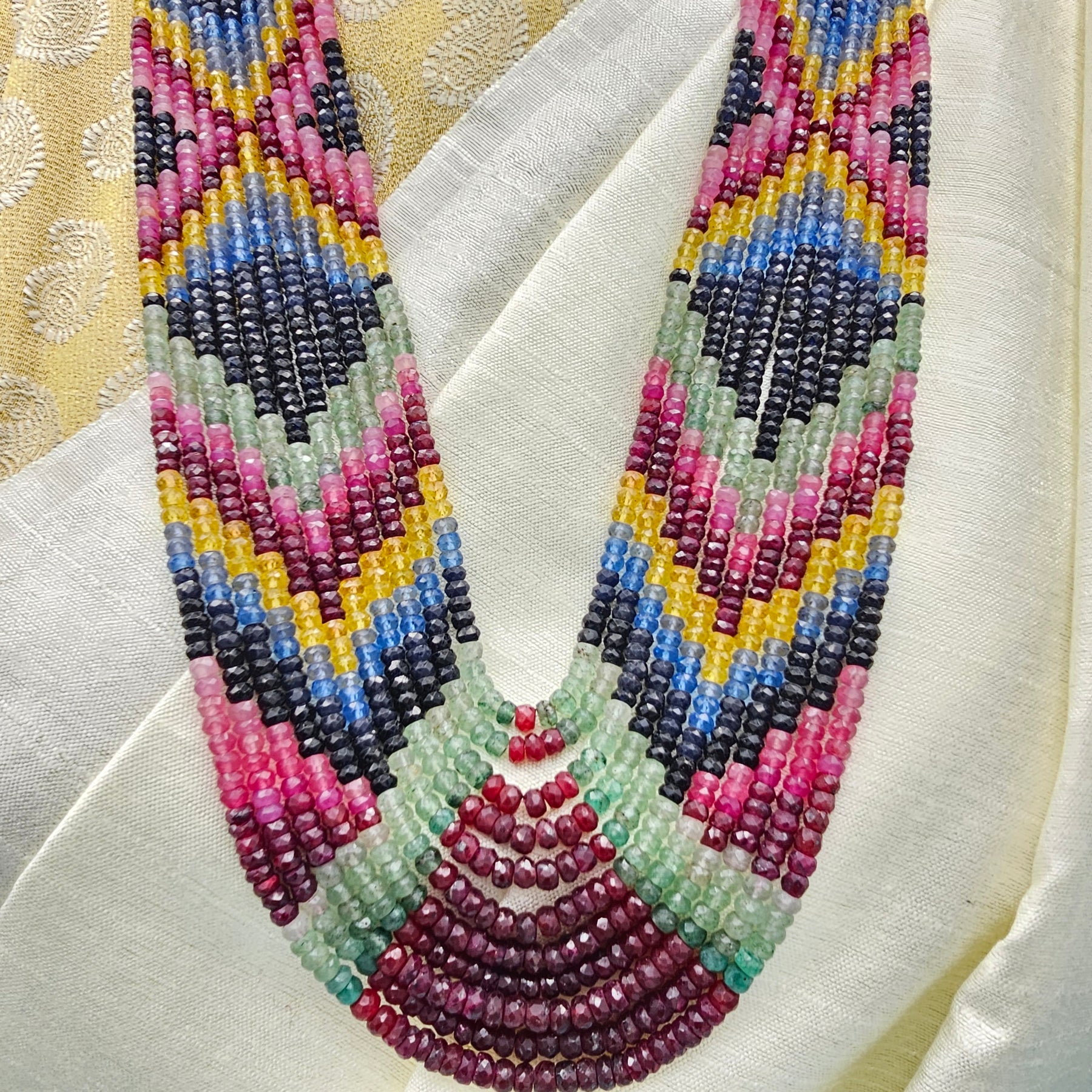 Multicolor Ranihaar Necklace: Ruby, Emerald, Sapphire Onyx Beads, Adjustable Jewelry, handmade.