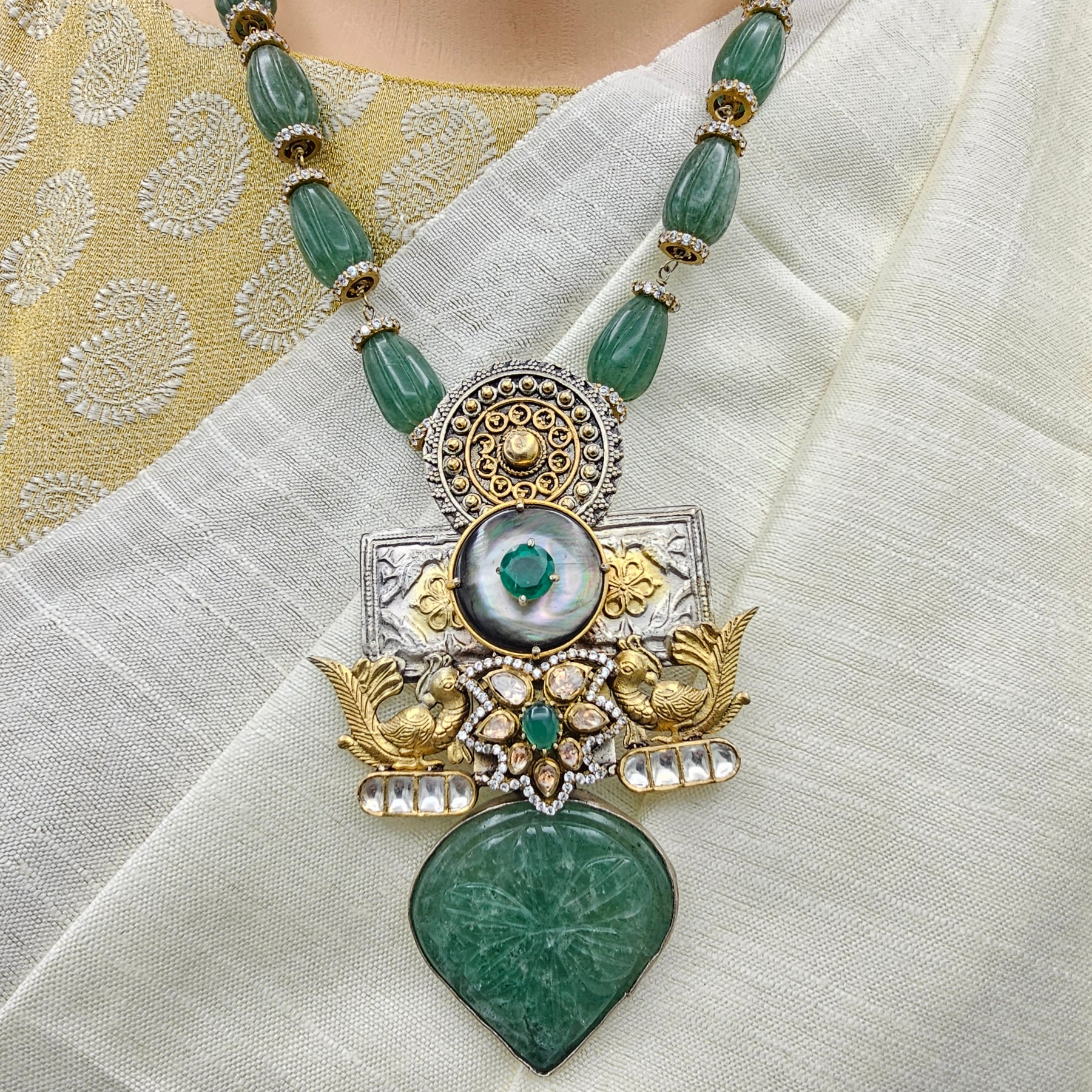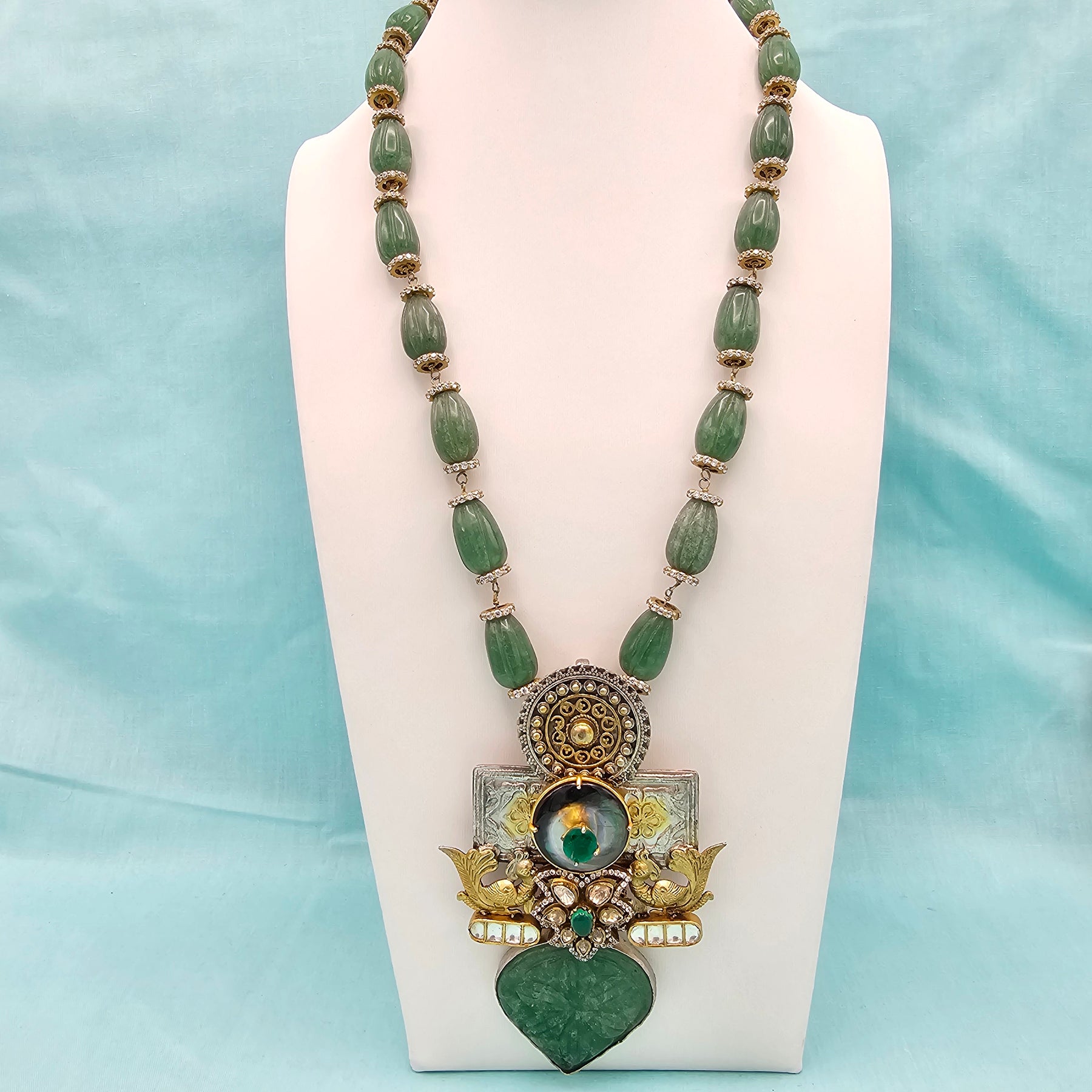Add a refreshing pop of elegance to your jewelry collection with this stunning Green Aventurine Tumble Beads Fusion Necklace, beautifully accented with sparkling Cubic Zircon (CZ) elements. The natural aventurine stones bring soothing green tones and a calming energy, while the CZs add a touch of refined sparkle—creating the perfect blend of traditional charm and modern luxury.