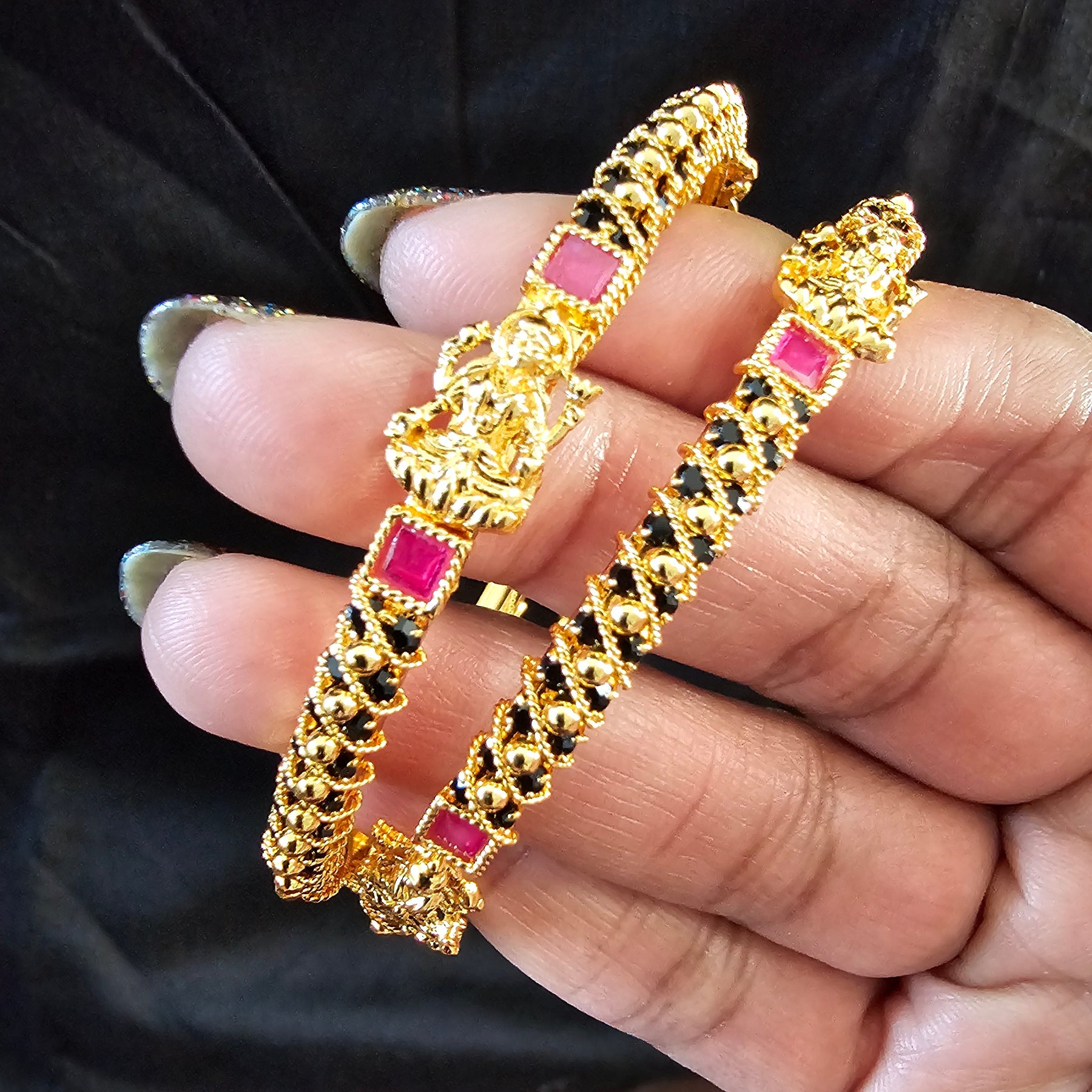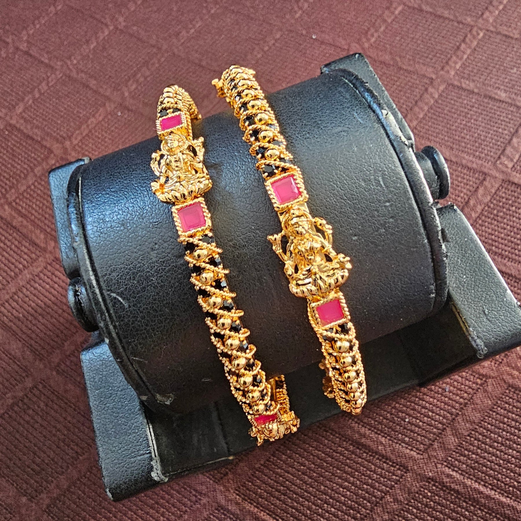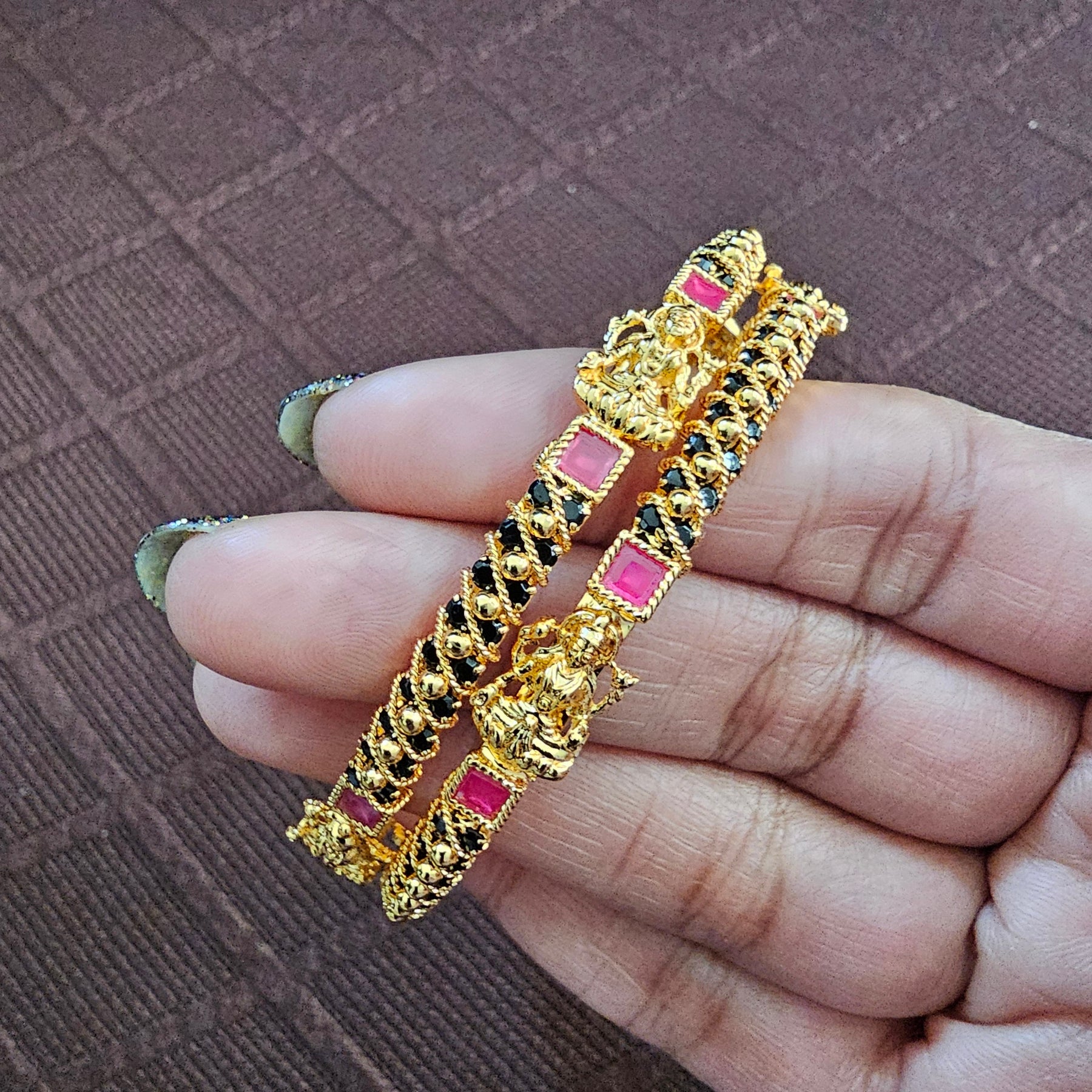 Gorgeous gold-plated bangle/ bracelet best exemplifies the careful craftsmanship done on it - a specialty at Nemali Jewelry. It has a special tone of elegance attached to it. The intricate handmade design of the bangle/bracelet set gives it a fresh and original look.