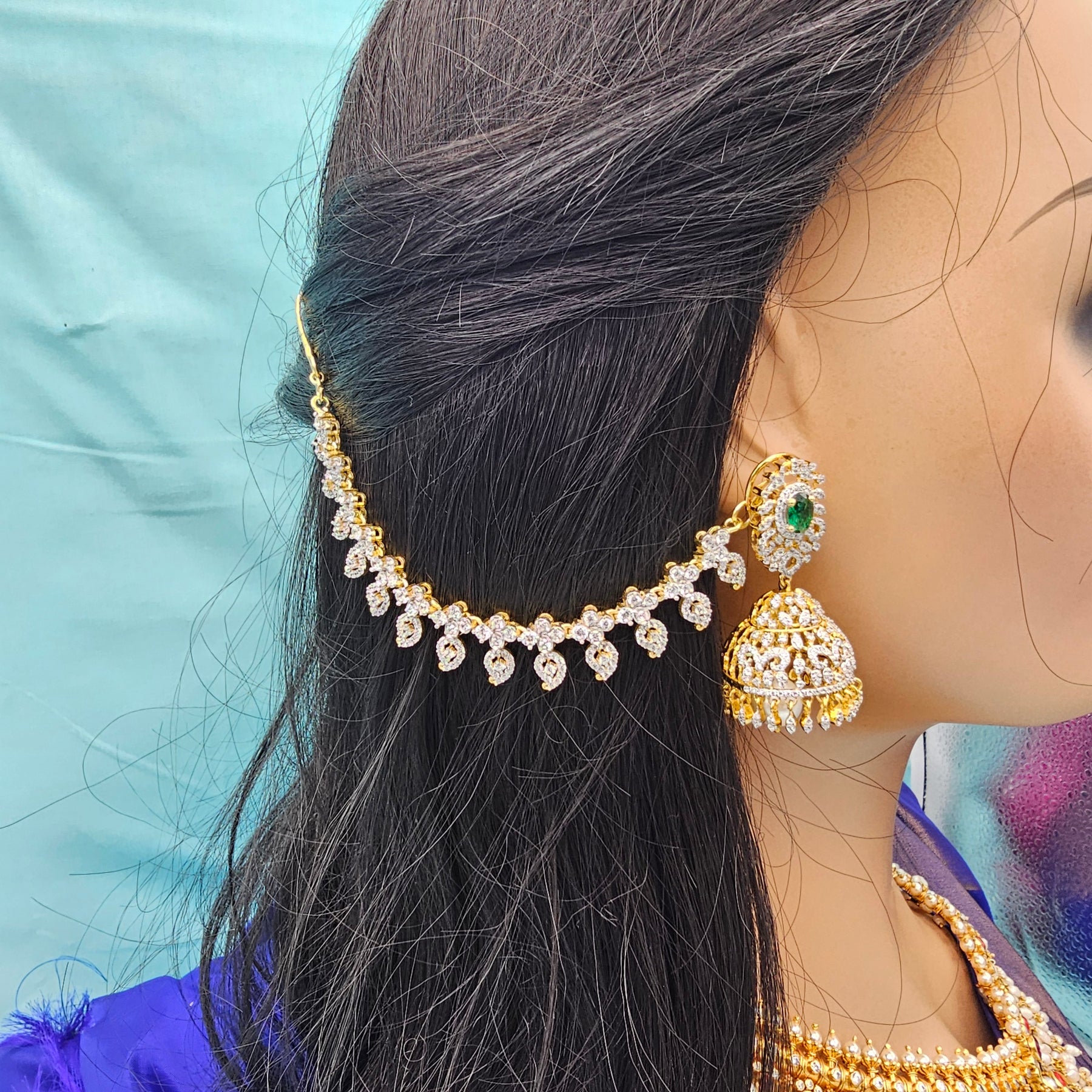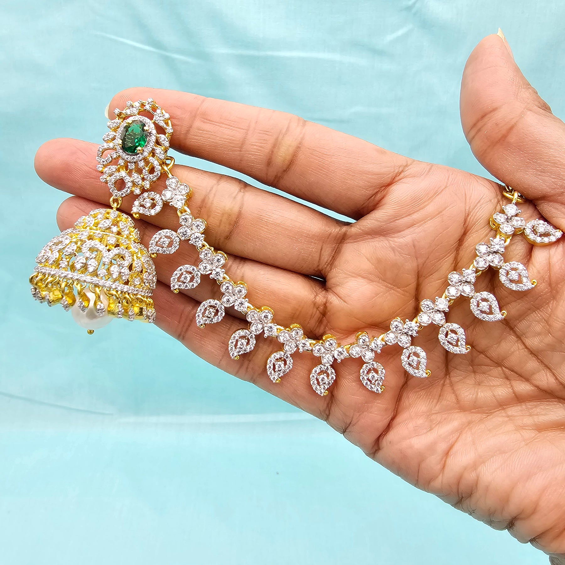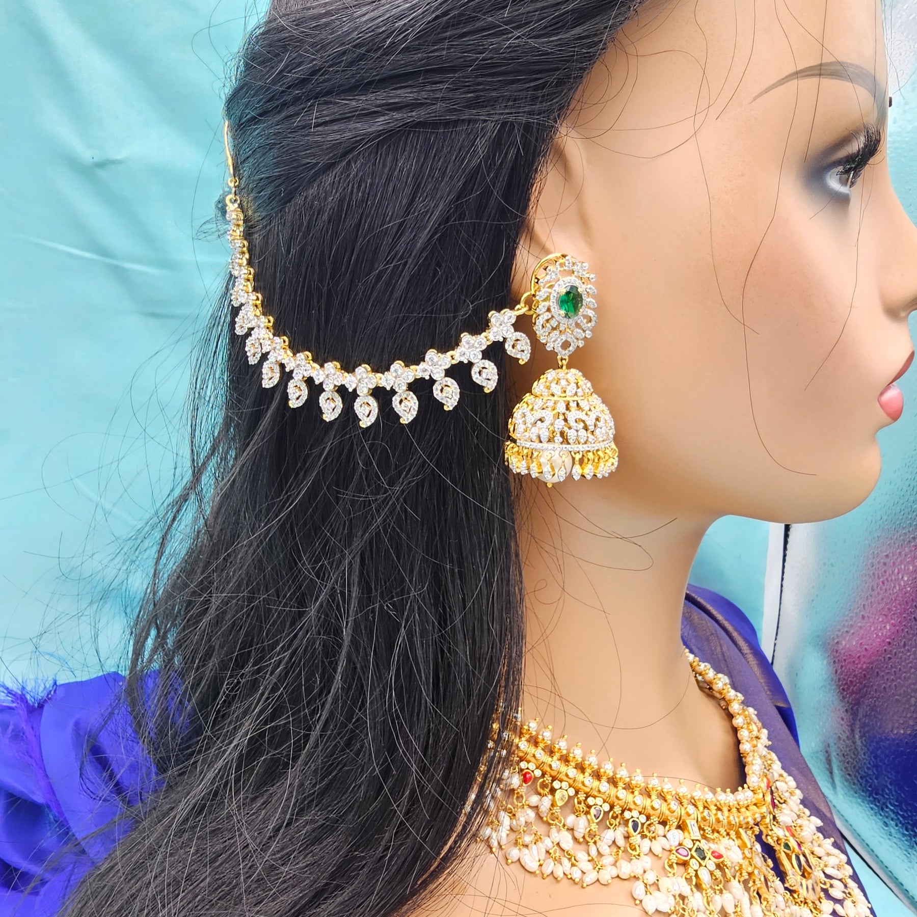 Add a touch of South Indian heritage to your look with these exquisite 92.5 Sterling Silver Pearl Chempaswaralu — traditional temple-style earrings that gracefully hug the ear and dangle with timeless elegance.