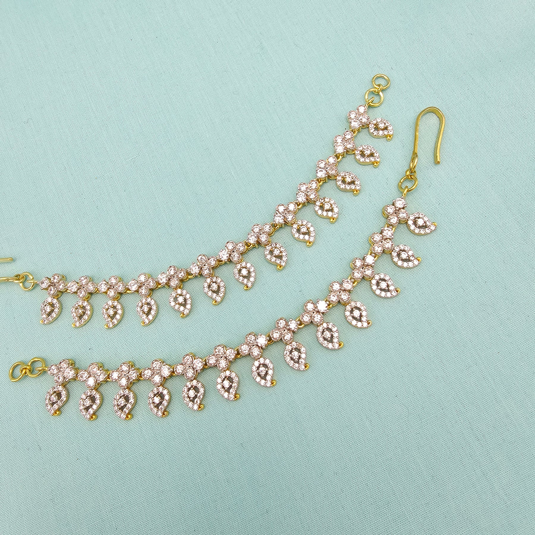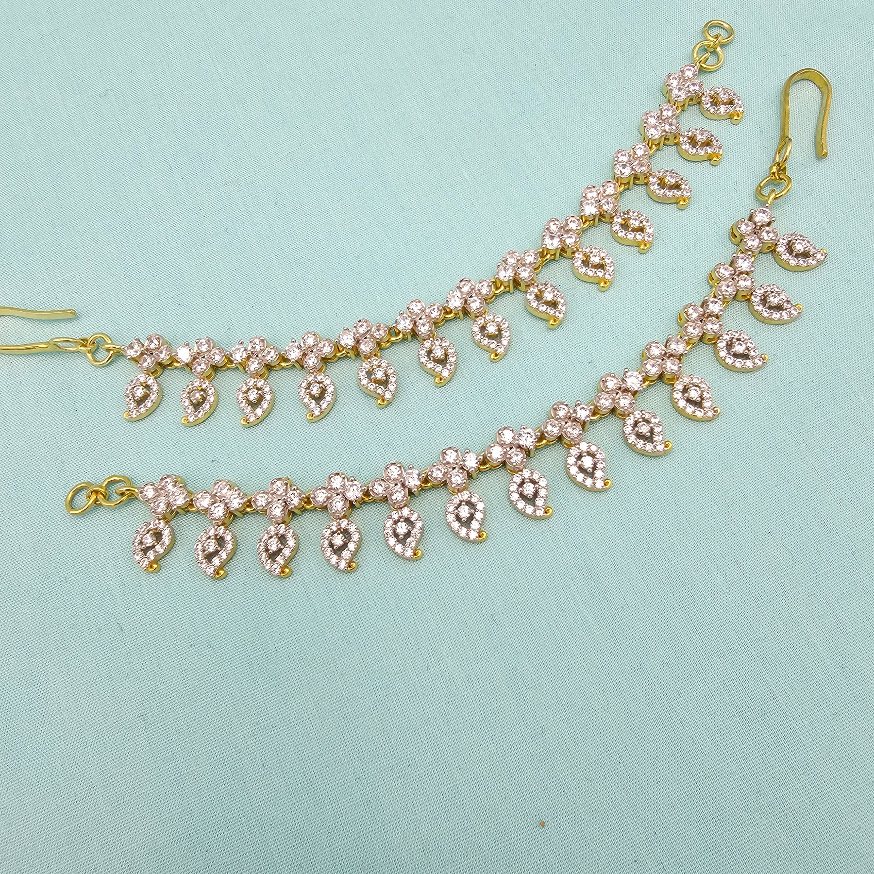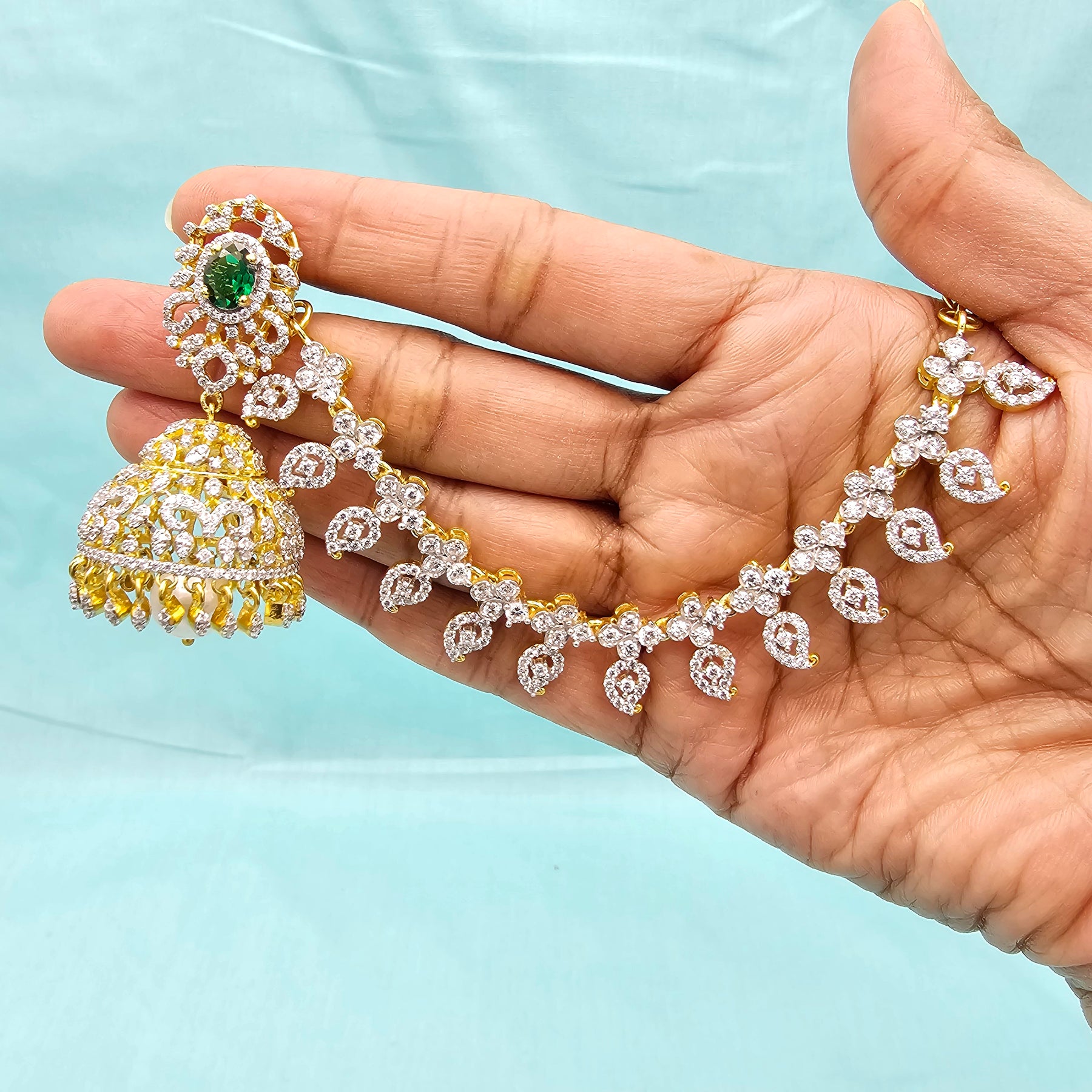 Add a touch of South Indian heritage to your look with these exquisite 92.5 Sterling Silver Pearl Chempaswaralu — traditional temple-style earrings that gracefully hug the ear and dangle with timeless elegance.