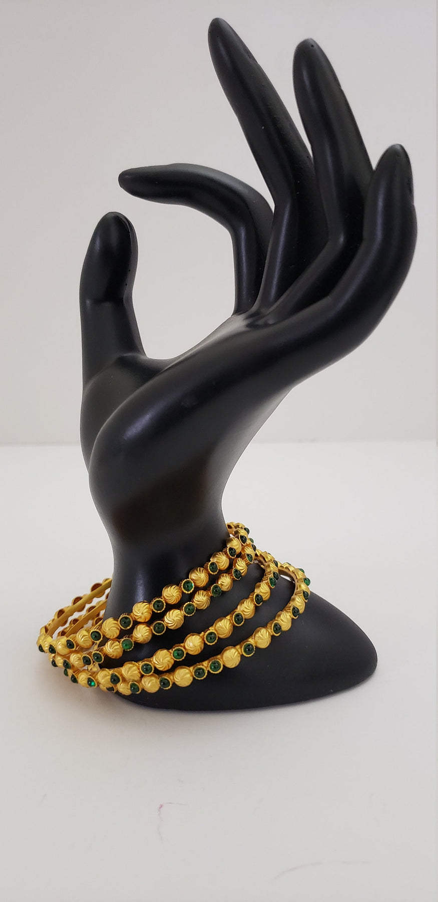Gorgeous gold-plated bangle/ bracelet best exemplifies the careful craftsmanship done on it - a specialty at Nemali Jewelry. It has a special tone of elegance attached to it. The intricate handmade design of the bangle / bracelet set gives it a fresh and original look.