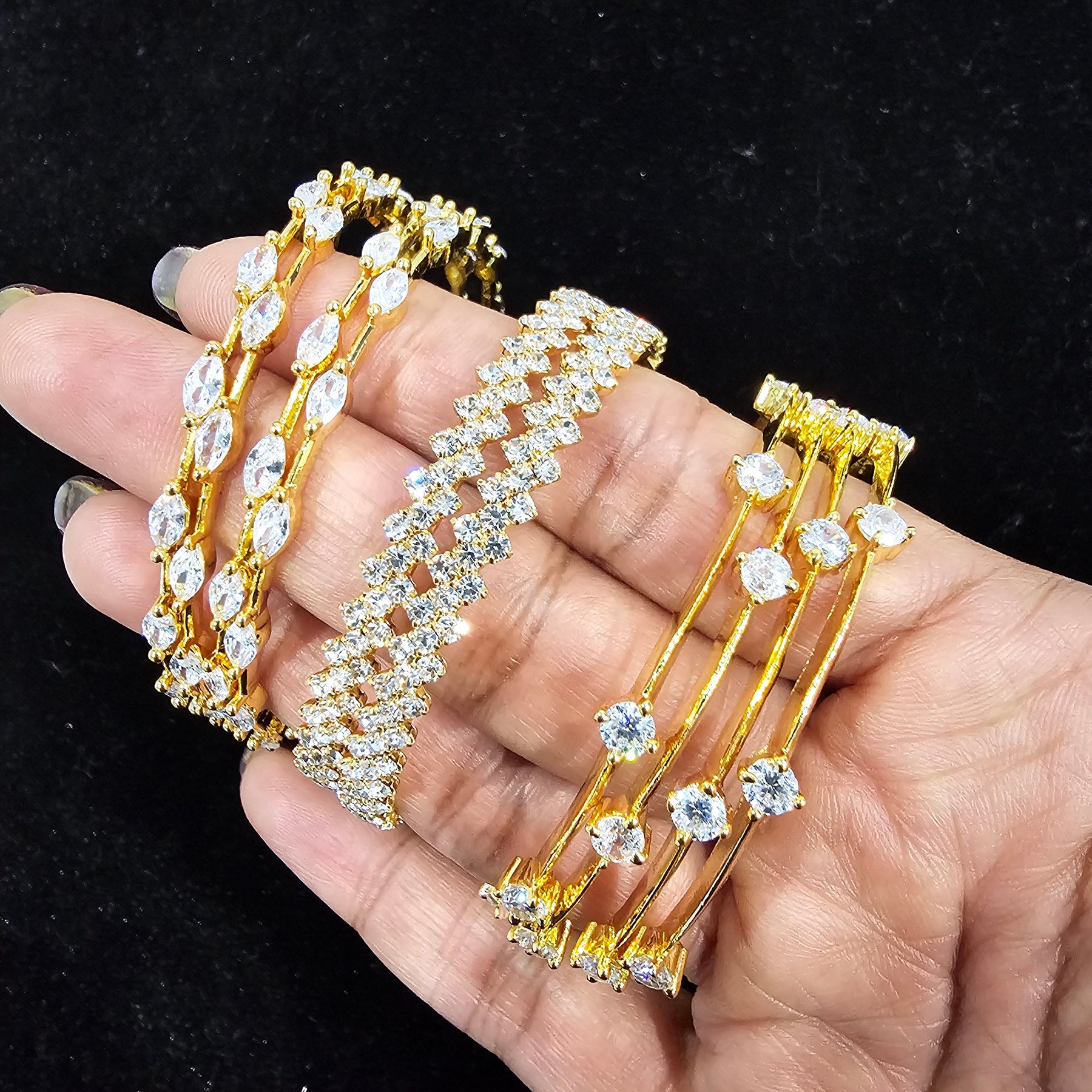 Look your best with this elegant-looking bangle / bracelet set from the house of Nemali Jewelry. This set looks elegant at first glance. You can Mix and match or easily pair it up with Glass bangles, Thread work bangles, Stone or Kundan bangles. Due to the simple intricate design of this jewelry piece, it Ideally goes well with Sarees, Dresses, and Kurtis.