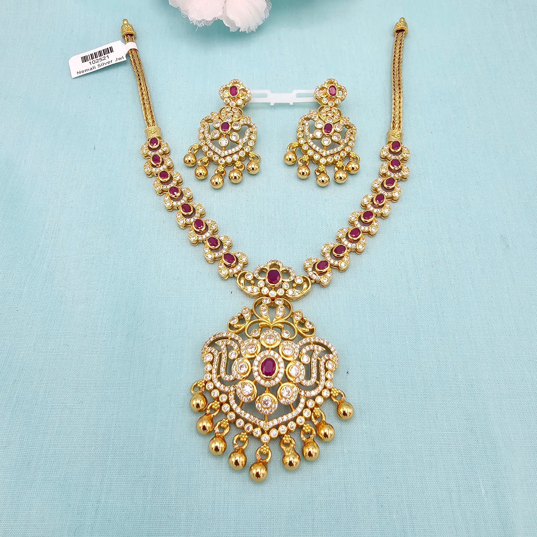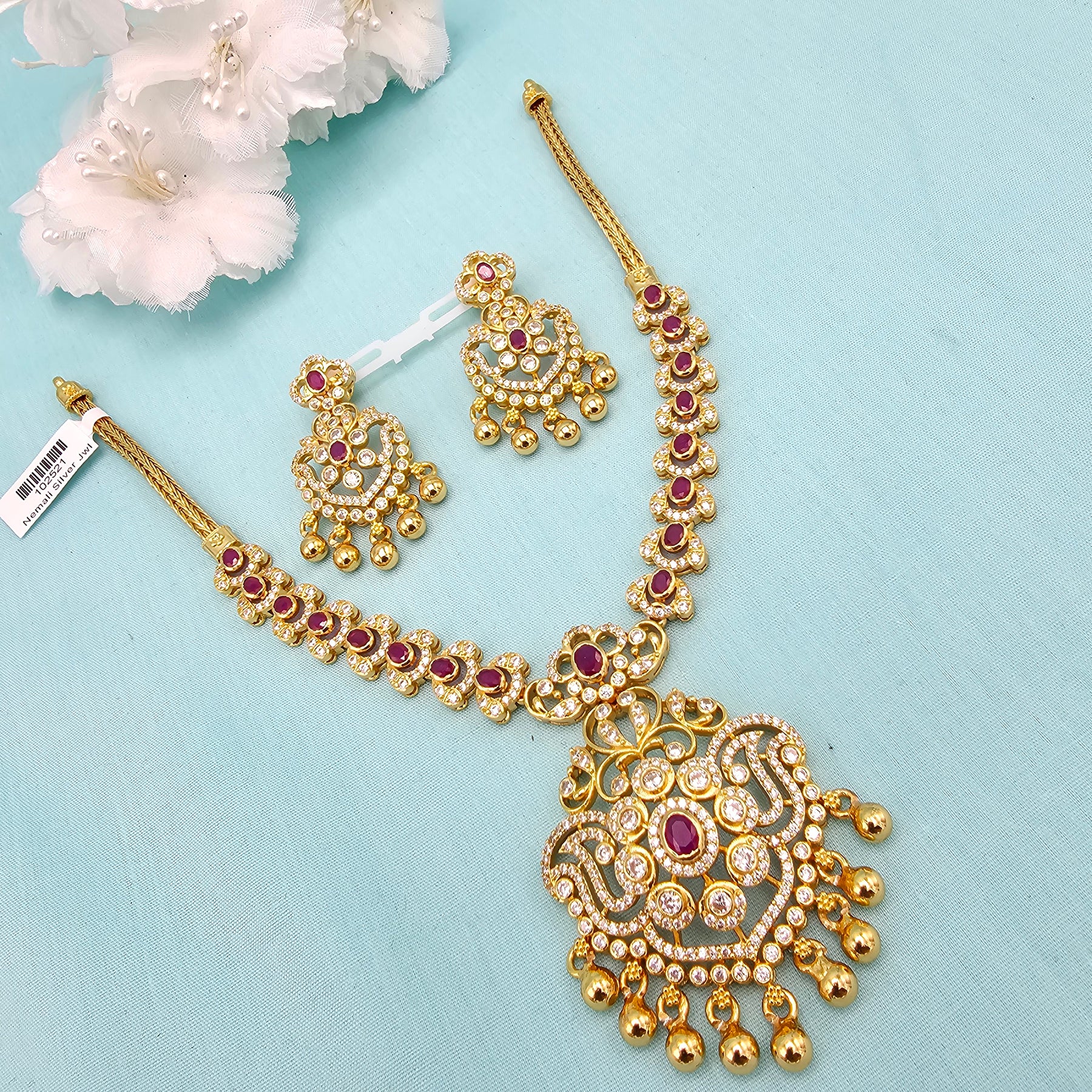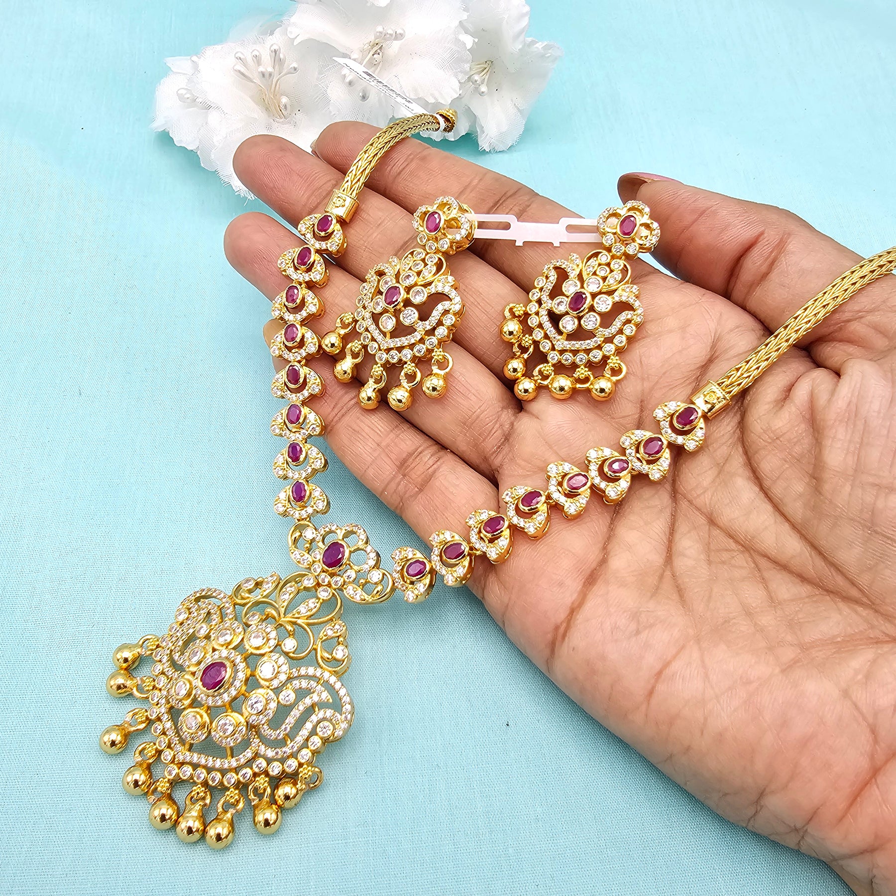 Short CZ Ruby Necklace set