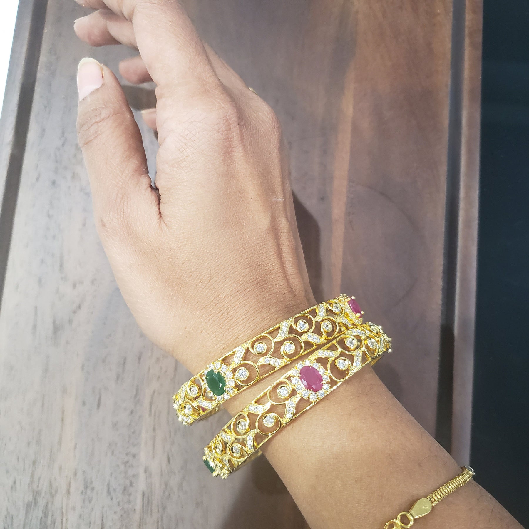 * Bangles with pretty Semi Precious Ruby, Emerald, CZ stones.