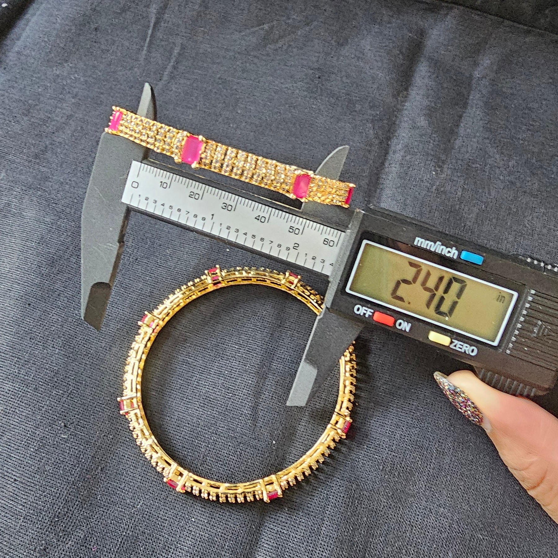 Look your best with this elegant-looking bangle/bracelet set from the house of Nemali Jewelry. This set looks elegant at first glance. You can Mix and match or easily pair it up with glass bangles, Thread work bangles, Stone or Kundan bangles. Due to the simple intricate design of this jewelry piece, it Ideally goes well with Sarees, Dresses, and Kurtis.