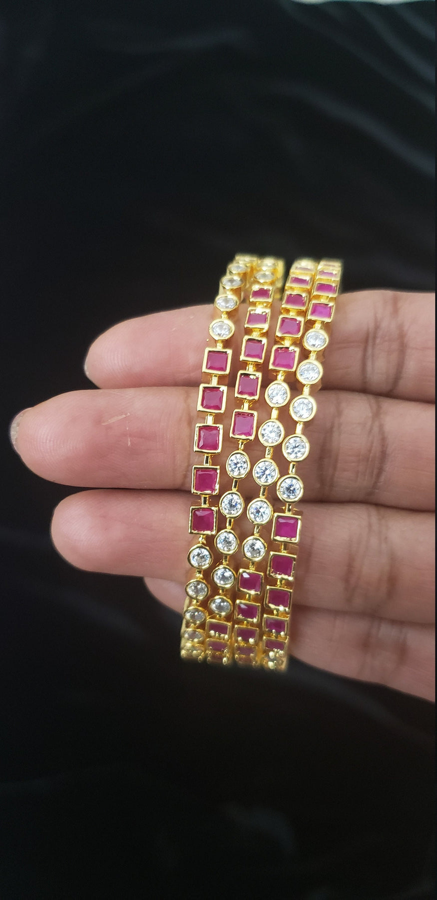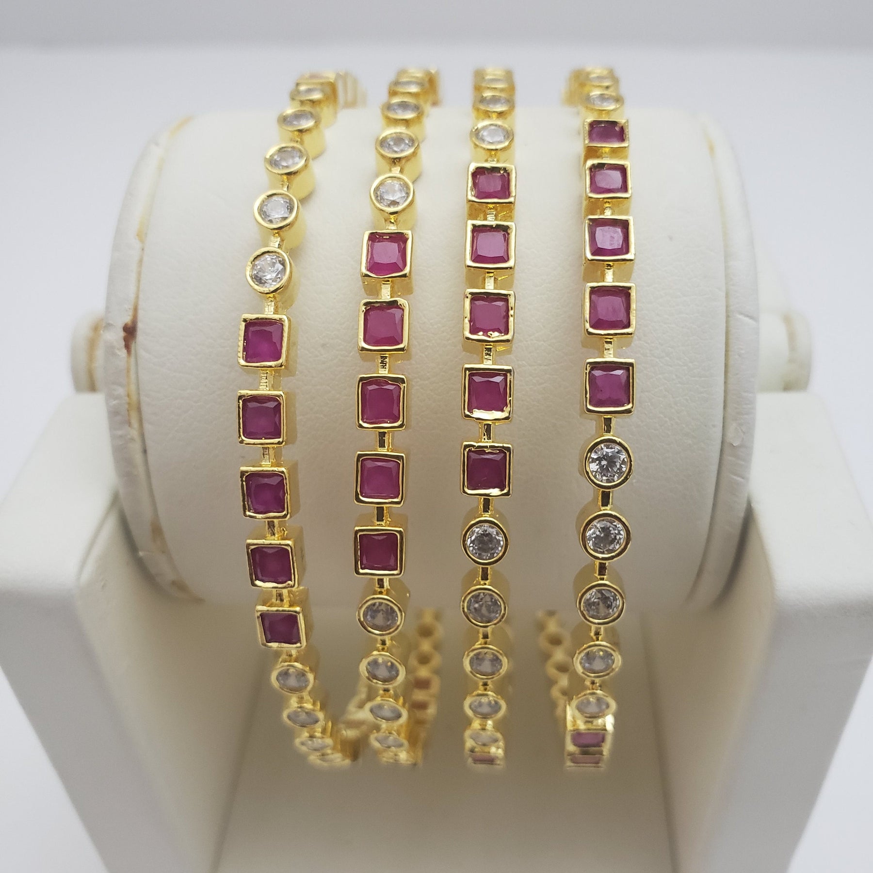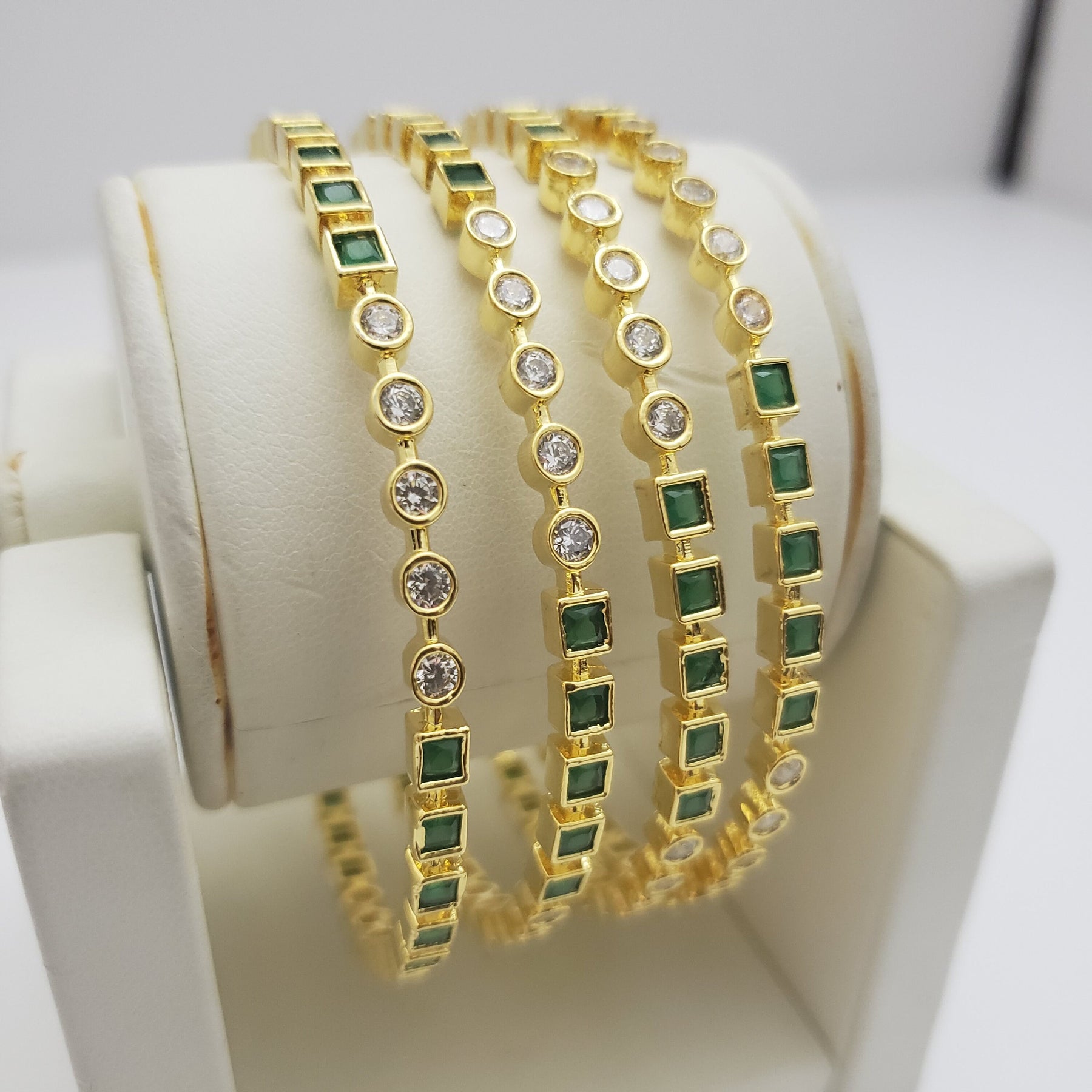 Look your best with this elegant-looking bangle/bracelet set from the house of Nemali Jewelry. This set looks elegant at first glance. You can Mix and match or easily pair it up with glass bangles, Thread work bangles, Stone or Kundan bangles. Due to the simple intricate design of this jewelry piece, it Ideally goes well with Sarees, Dresses, and Kurtis.