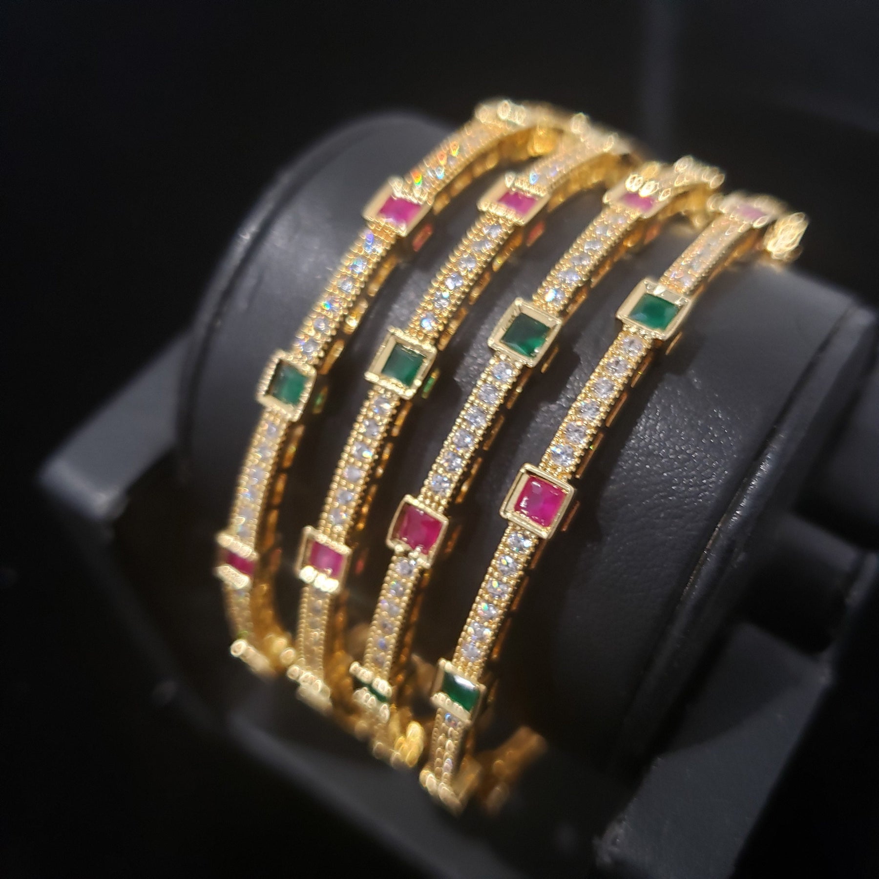* High Quality 22 K Gold Plated 4 pc ; semi-precious Ruby bangle set;