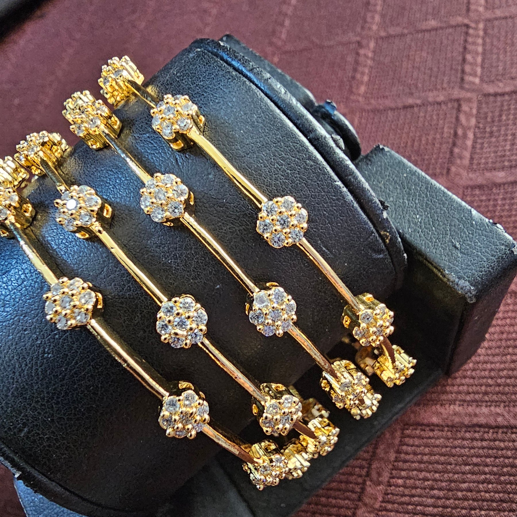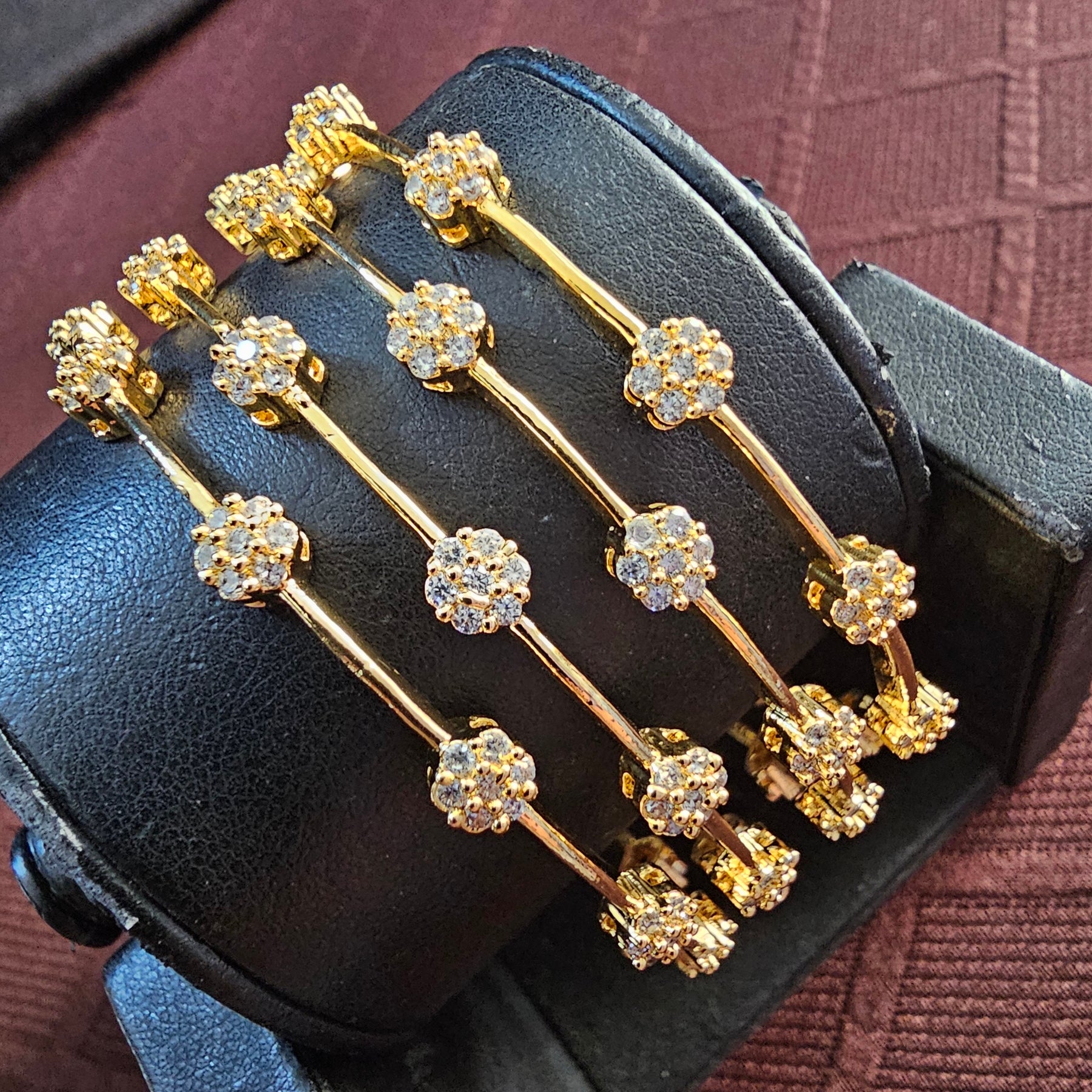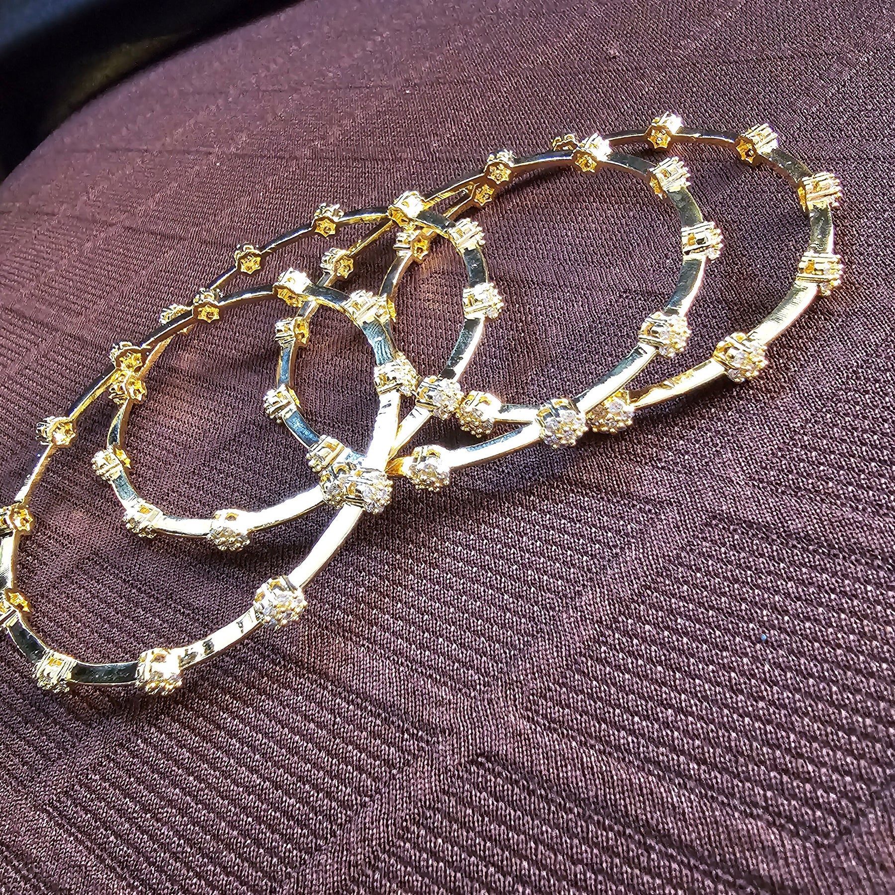The gorgeous gold-plated bangles set best exemplifies the careful craftsmanship done on it - specially picked for you by Nemali Jewelry. It has a special tone of elegance attached to it. The intricate handmade design of the bangle/bracelet set gives it a fresh and original look.