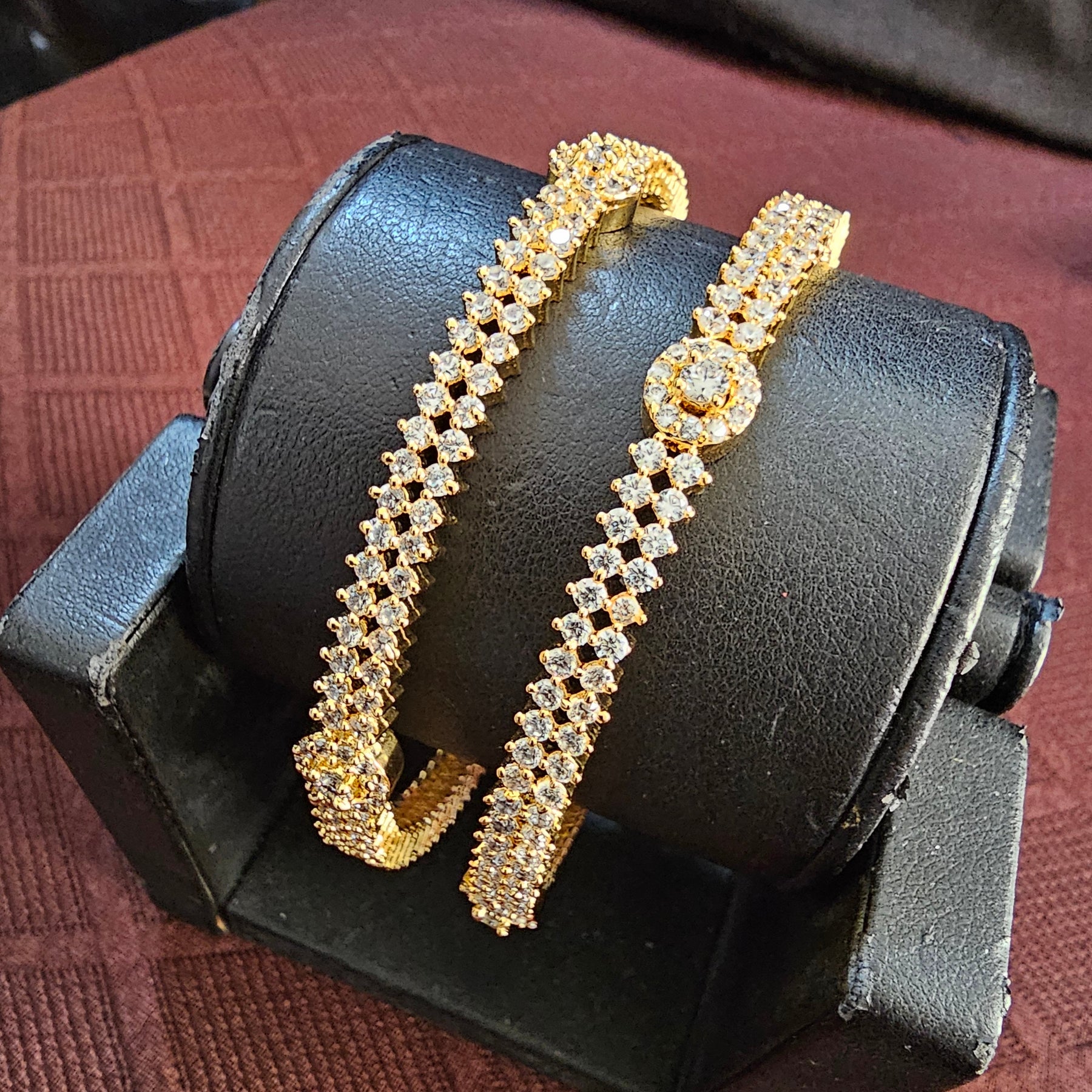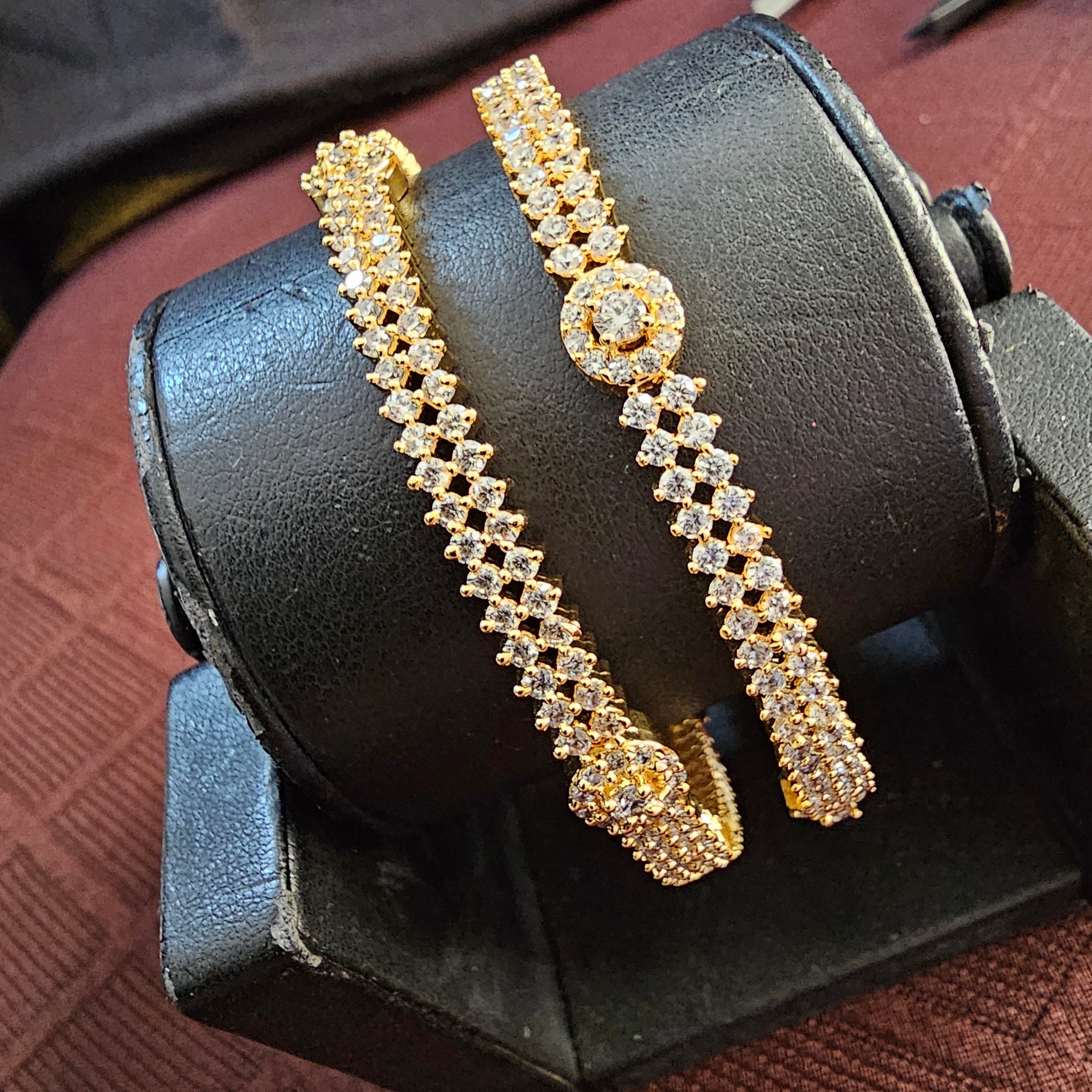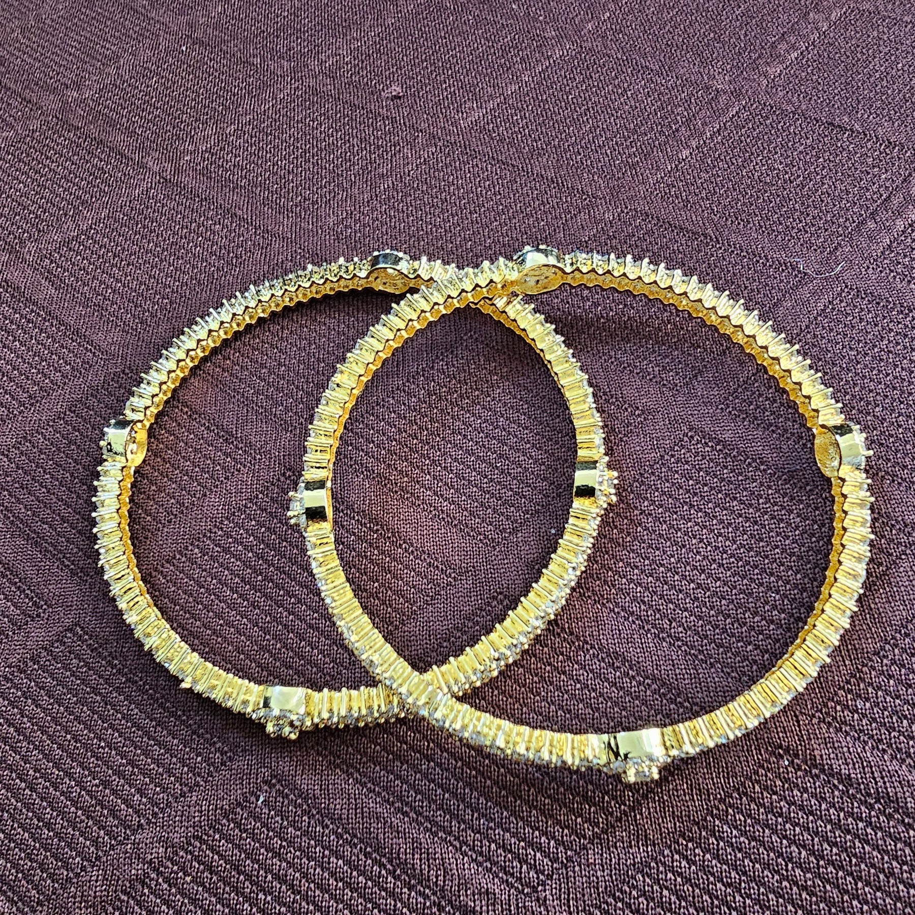 Gorgeous gold-plated bangle/ bracelet best exemplifies the careful craftsmanship done on it - a specialty at Nemali Jewelry. It has a special tone of elegance attached to it. The intricate handmade design of the bangle/bracelet set gives it a fresh and original look.