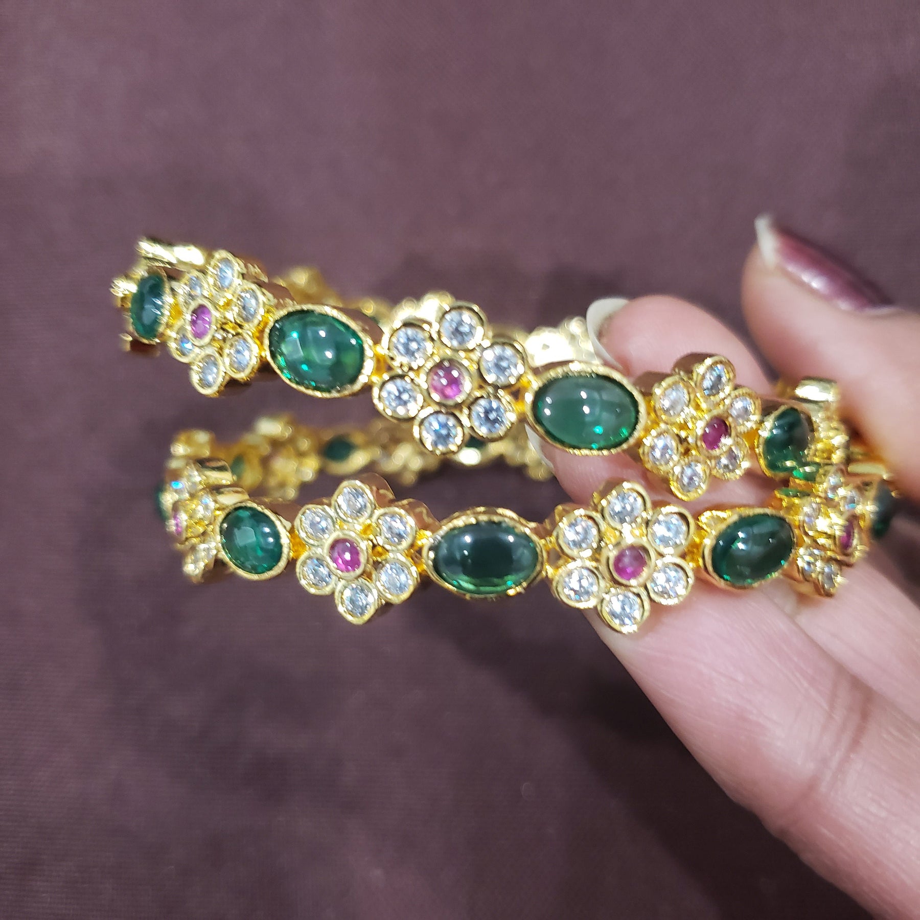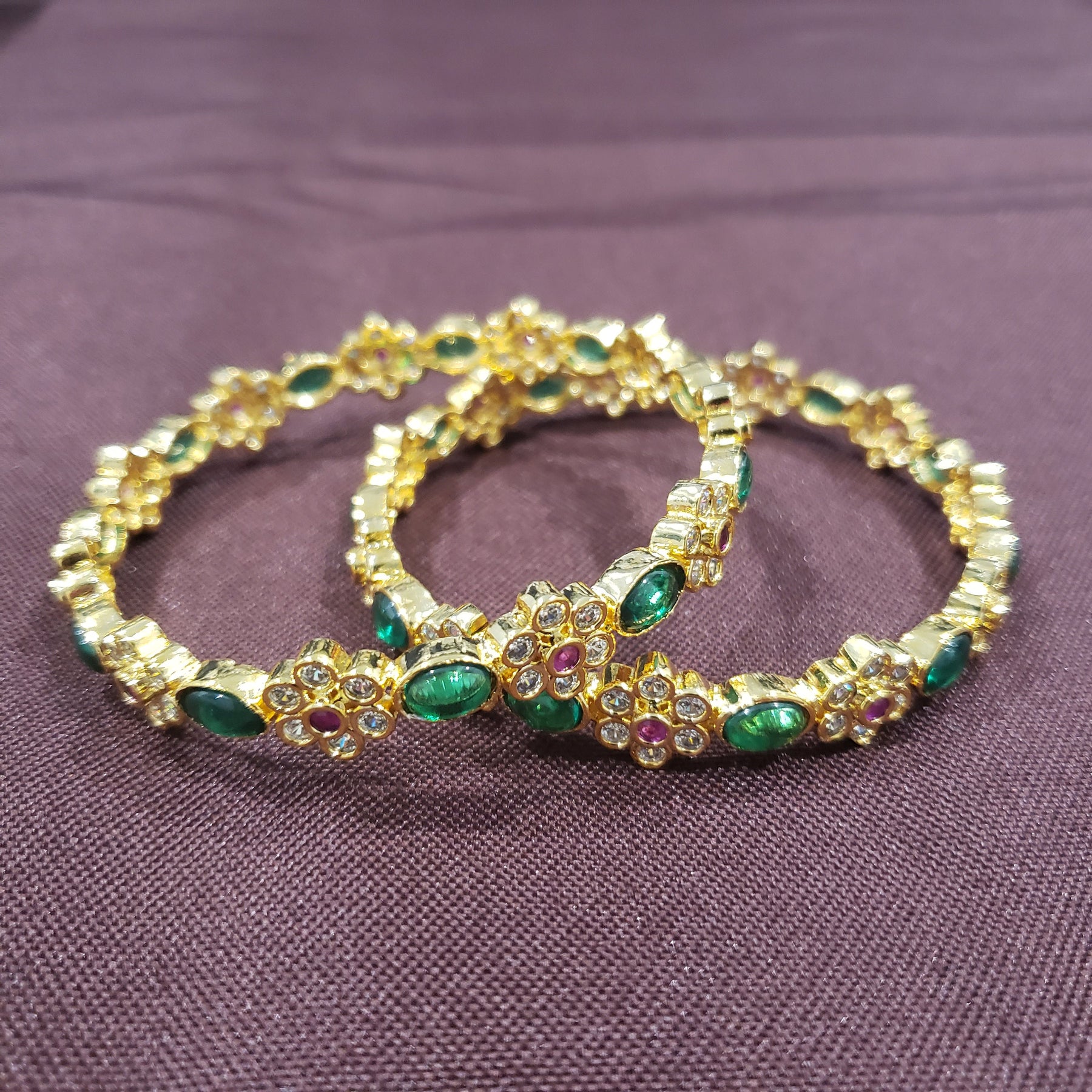 * Bangles with pretty Semi-Precious Emerald and Ruby Red CZ stones