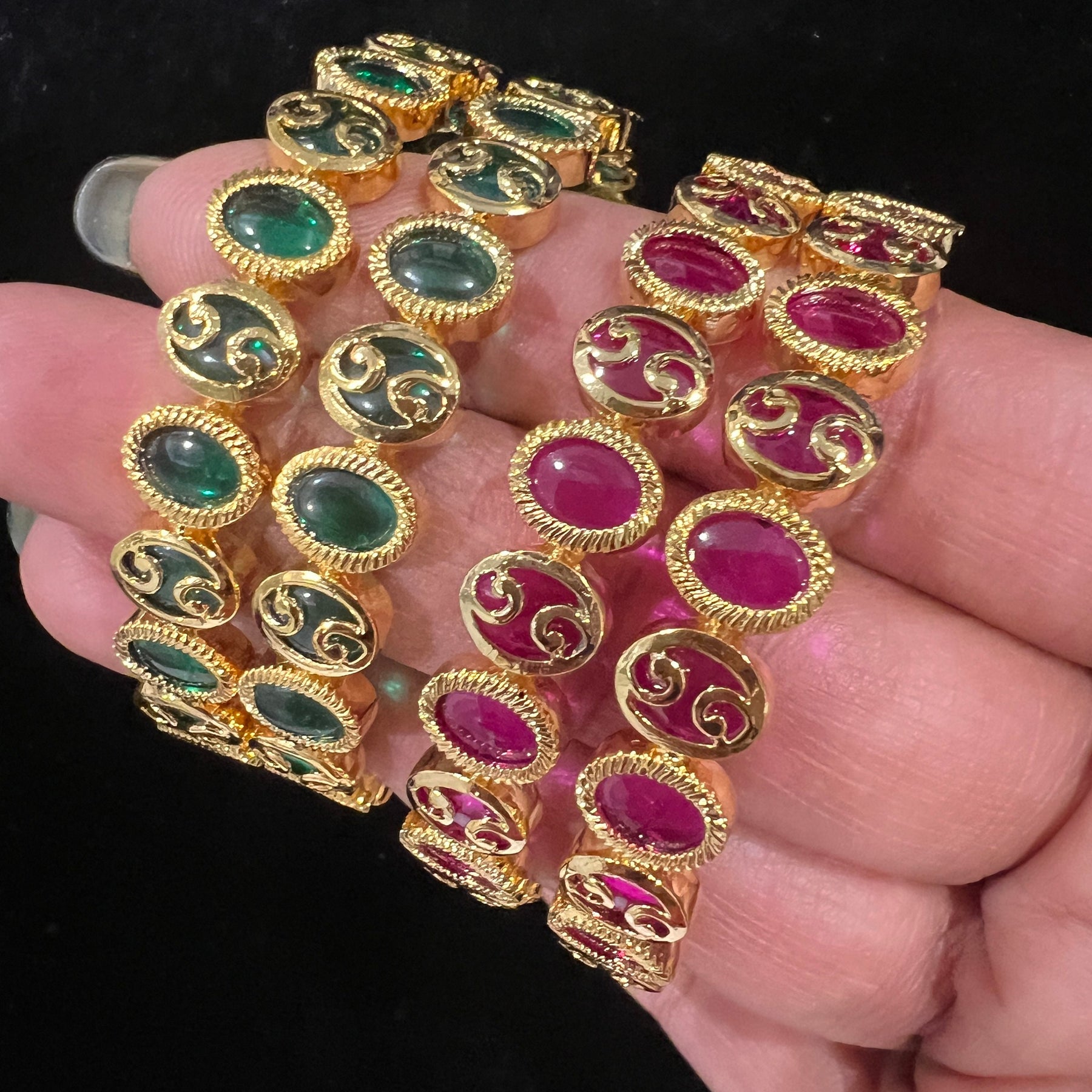 The gorgeous gold-plated bangle/ bracelet best exemplifies the careful craftsmanship done on it - a specialty at Nemali Jewelry. It has a special tone of elegance attached to it. The intricate handmade design of the bangle/bracelet set gives it a fresh and original look.