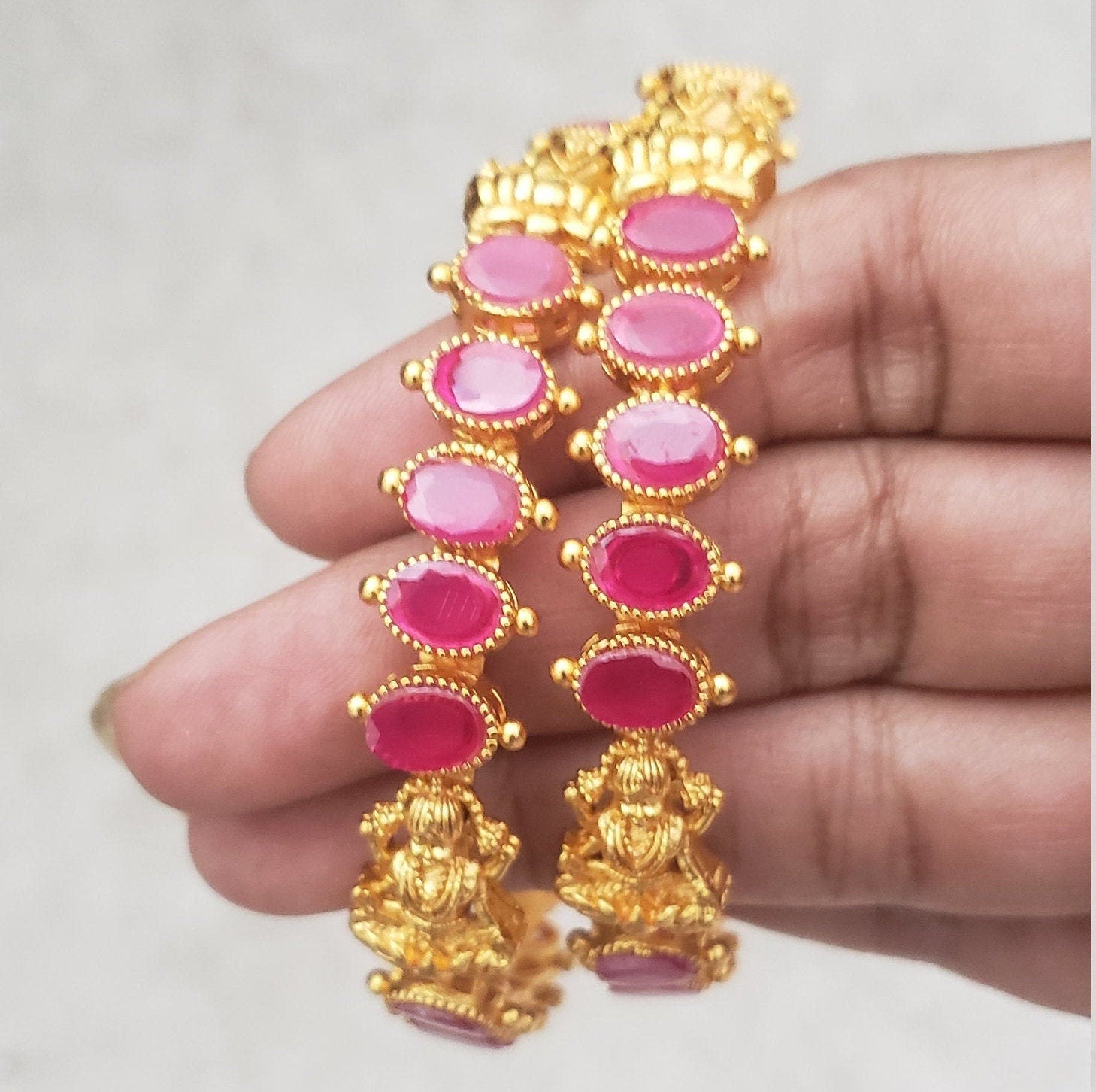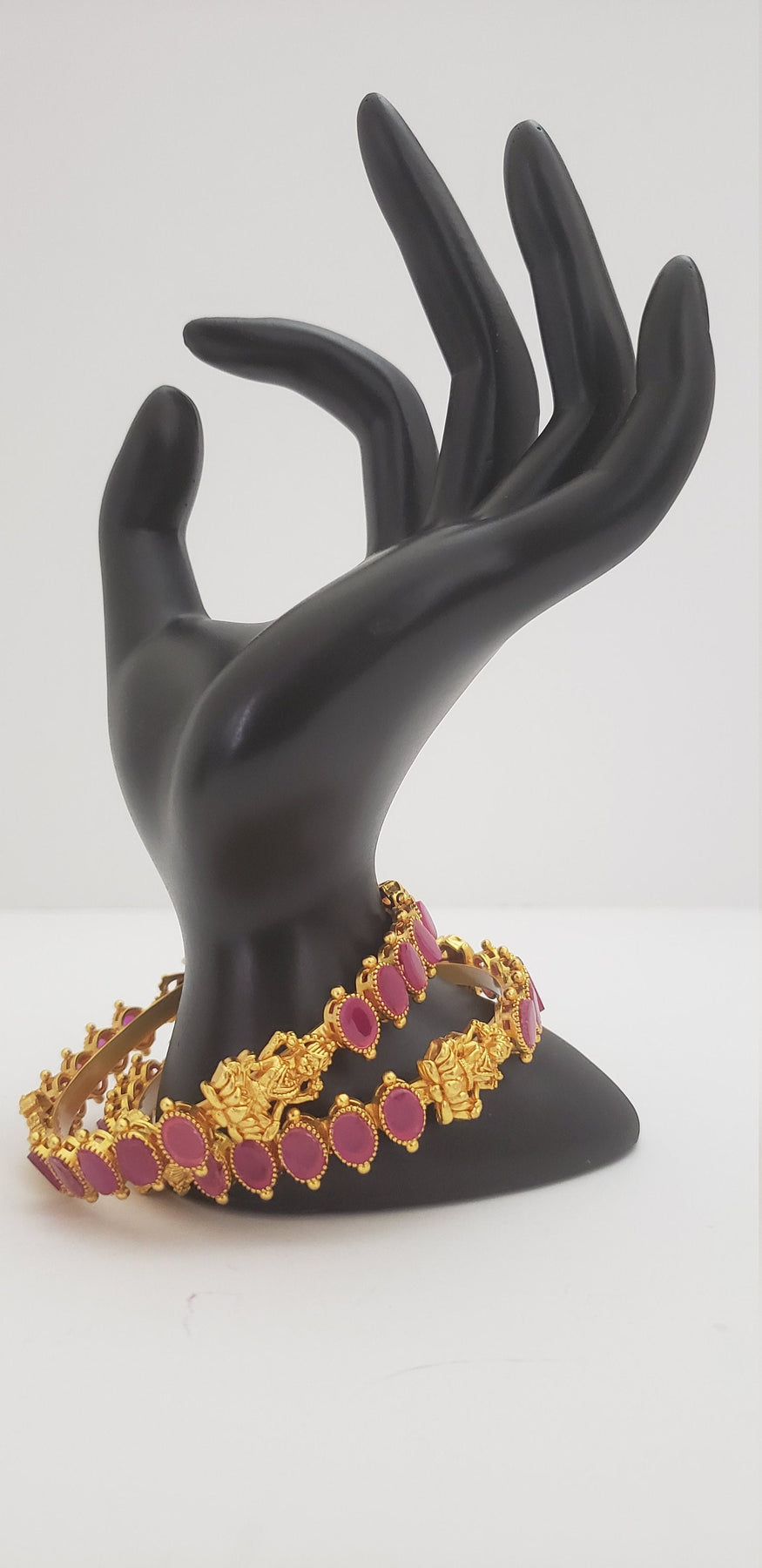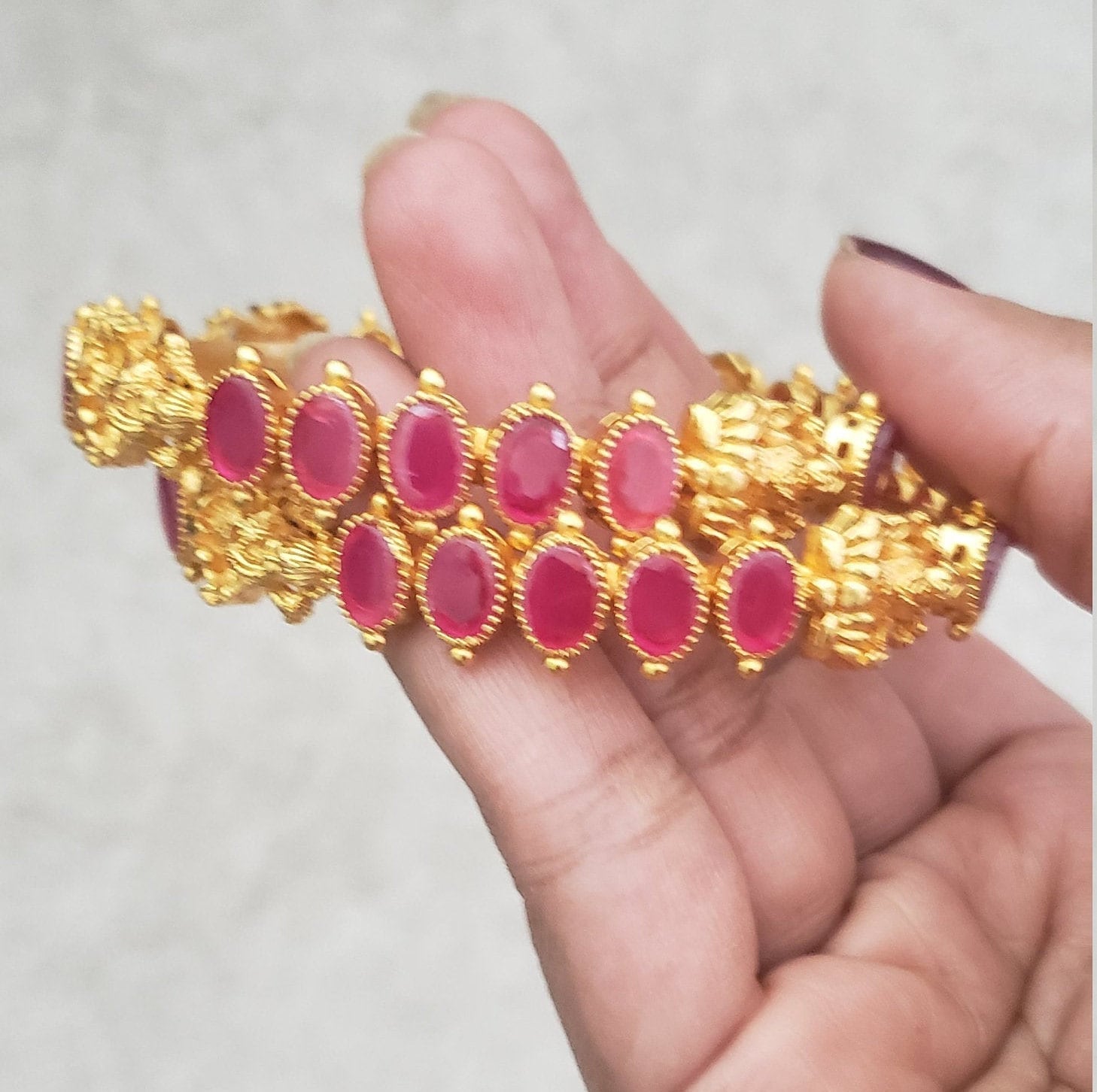 Look your best with this elegant-looking bangle / bracelet set from the house of Nemali Jewelry. This set looks elegant at first glance. You can Mix and match or easily pair it up with Glass bangles, Thread work bangles, Stone or Kundan bangles. Due to the simple intricate design of this jewelry piece, it Ideally goes well with Sarees, Dresses, and Kurtis.