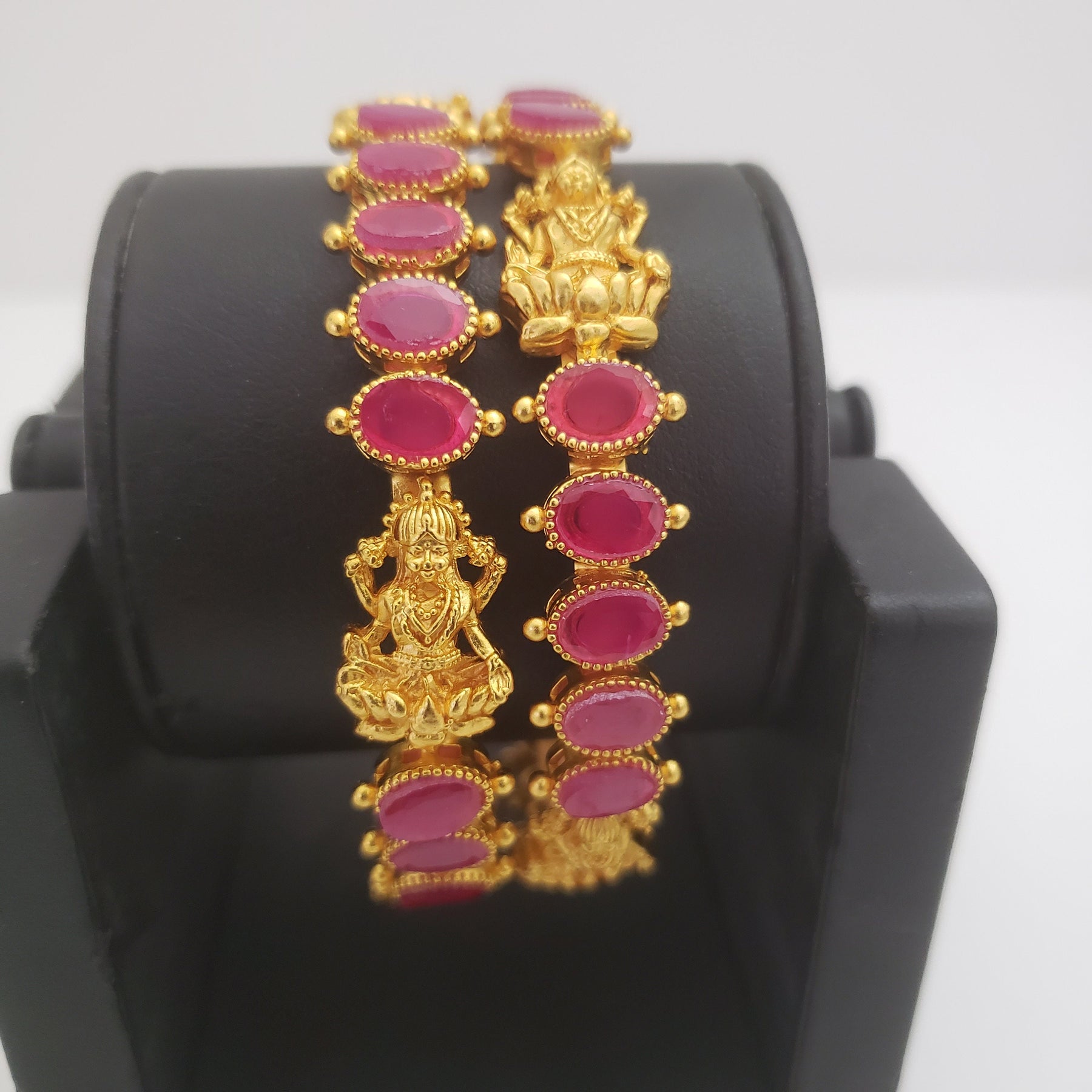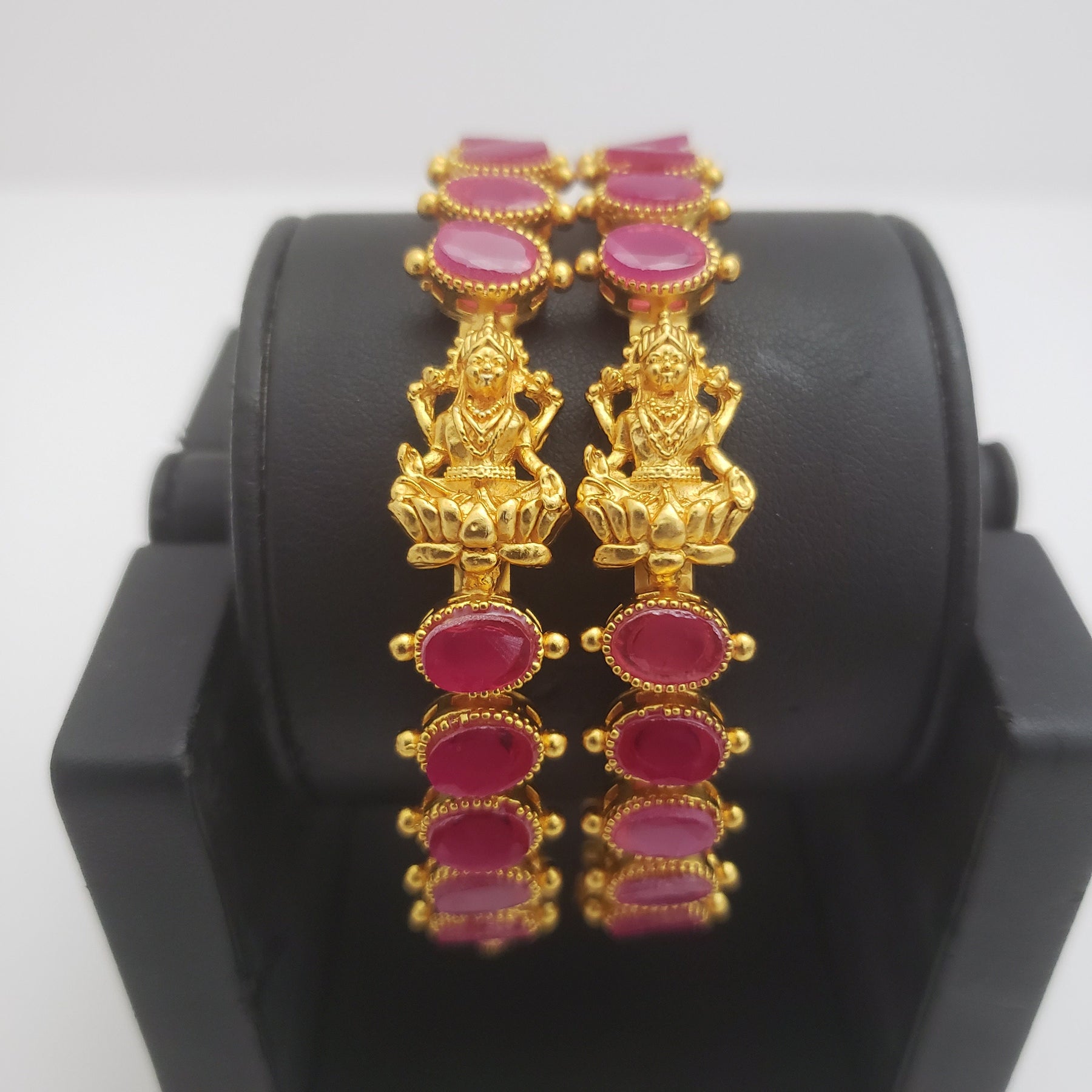 The gorgeous gold-plated bangle/ bracelet best exemplifies the careful craftsmanship done on it - a specialty at Nemali Jewelry. It has a special tone of elegance attached to it. The intricate handmade design of the bangle/bracelet set gives it a fresh and original look.