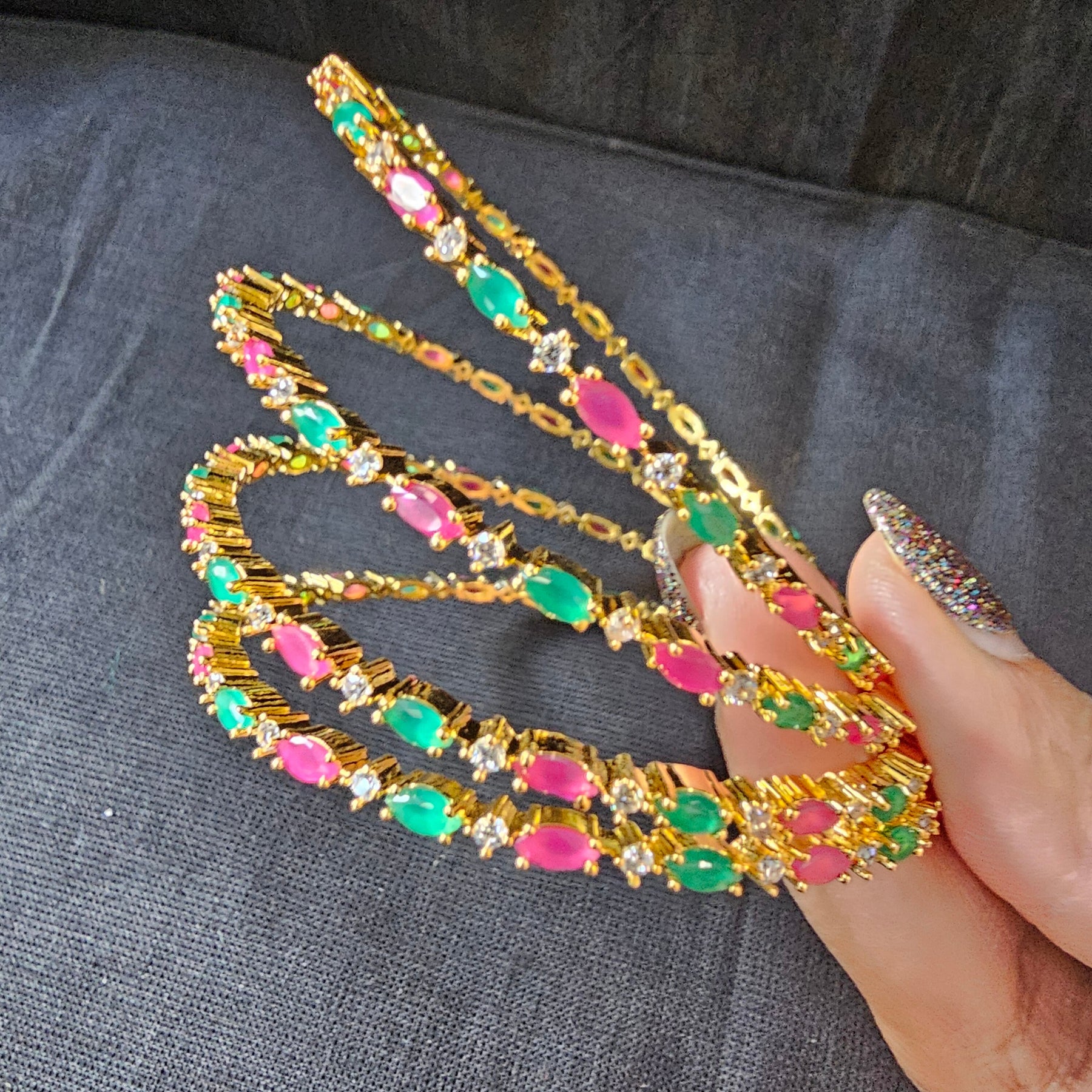 * Bangles with pretty Semi precious Ruby and emerald stones on 4 sides. Simple and elegant!!
