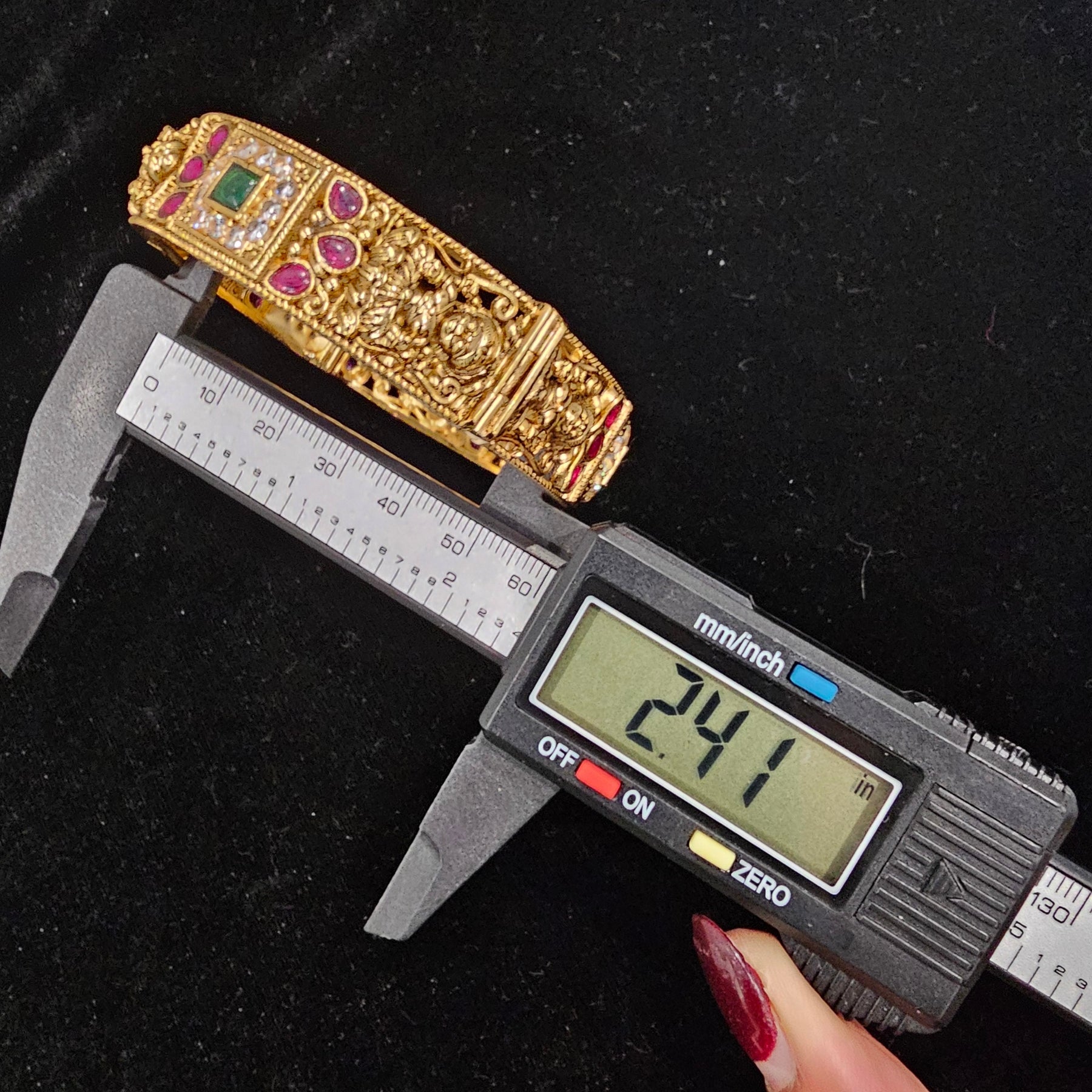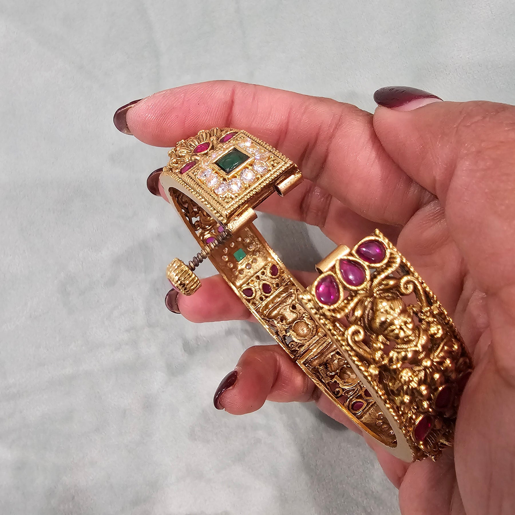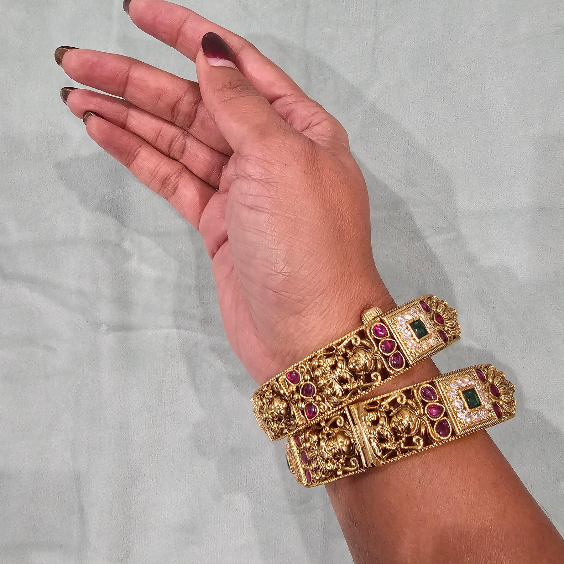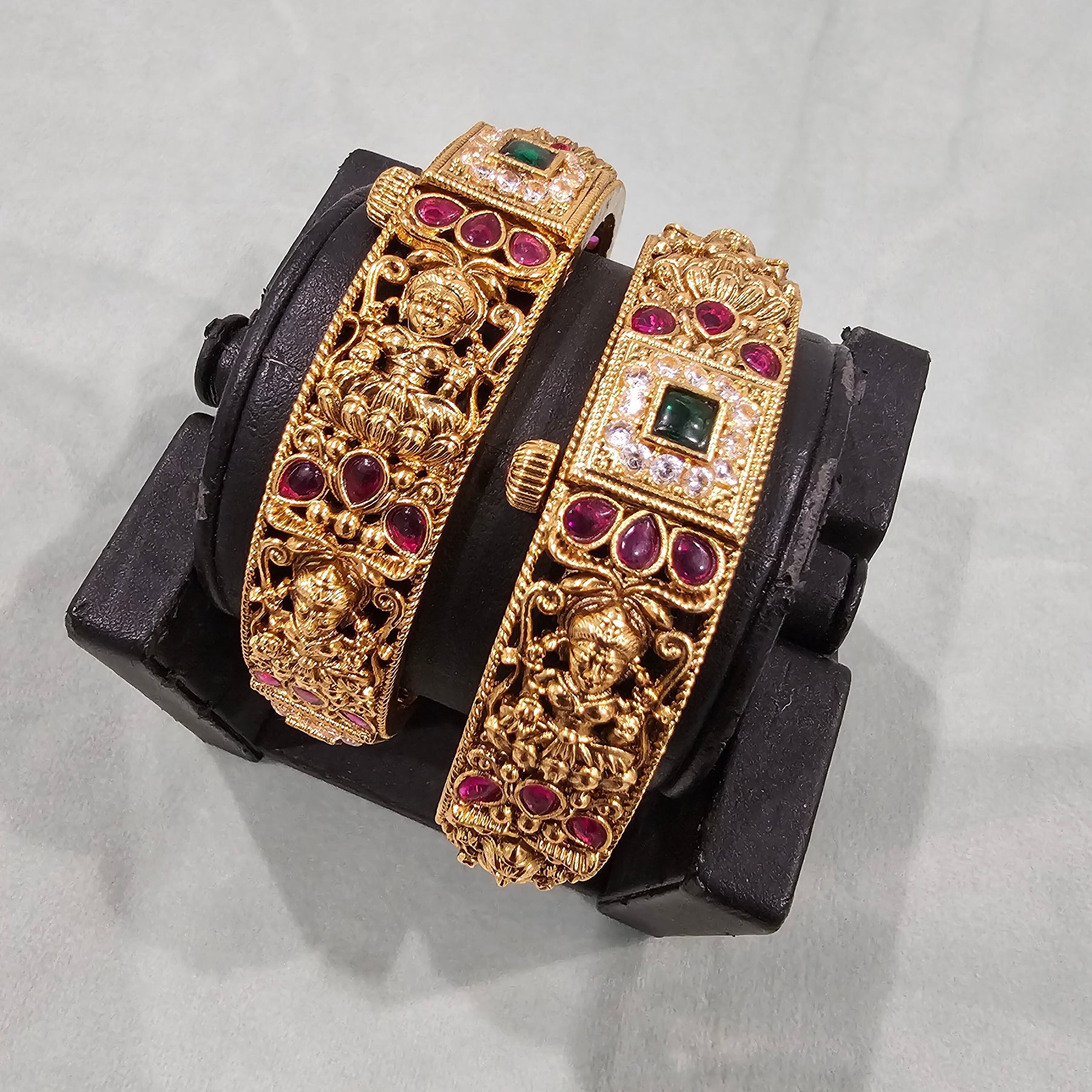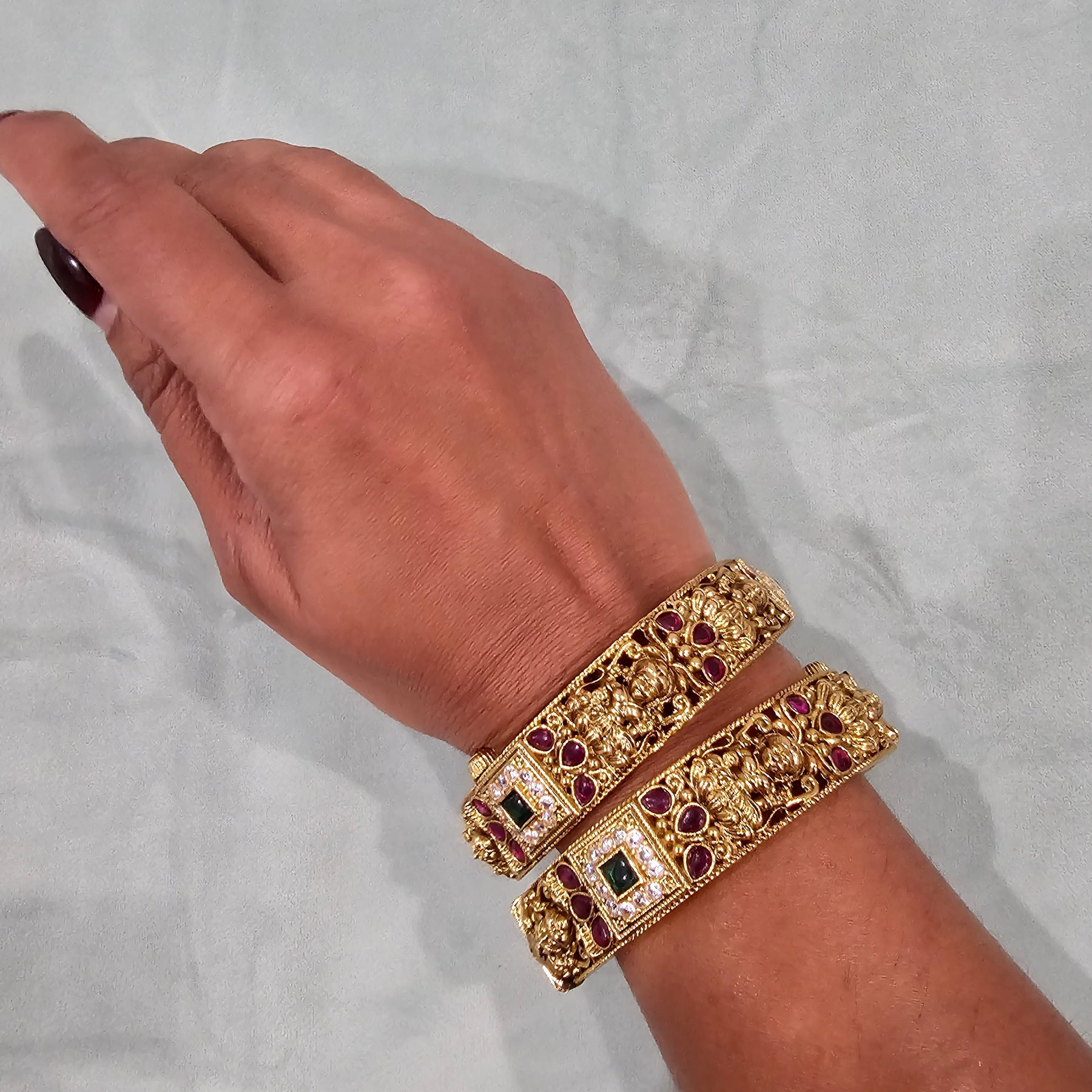 Gorgeous gold-plated bangle/ bracelet best exemplifies the careful craftsmanship done on it - a specialty at Nemali Jewelry. It has a special tone of elegance attached to it. The intricate handmade design of the bangle/bracelet set gives it a fresh and original look.