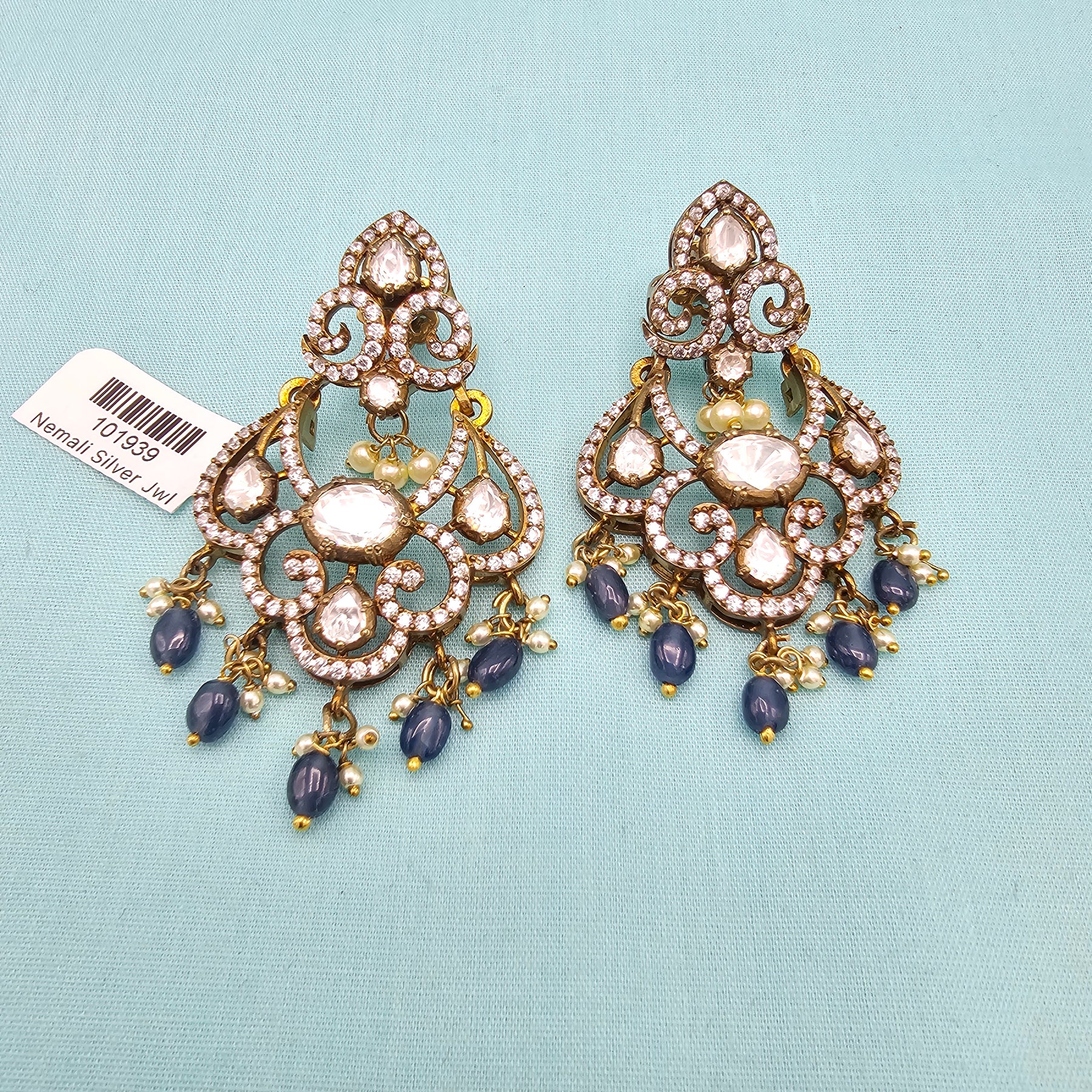 92.5 victorian Jhumka, Moissanite Jhumka, green beads Jhumka, Indian traditional jhumka, Silver earrings