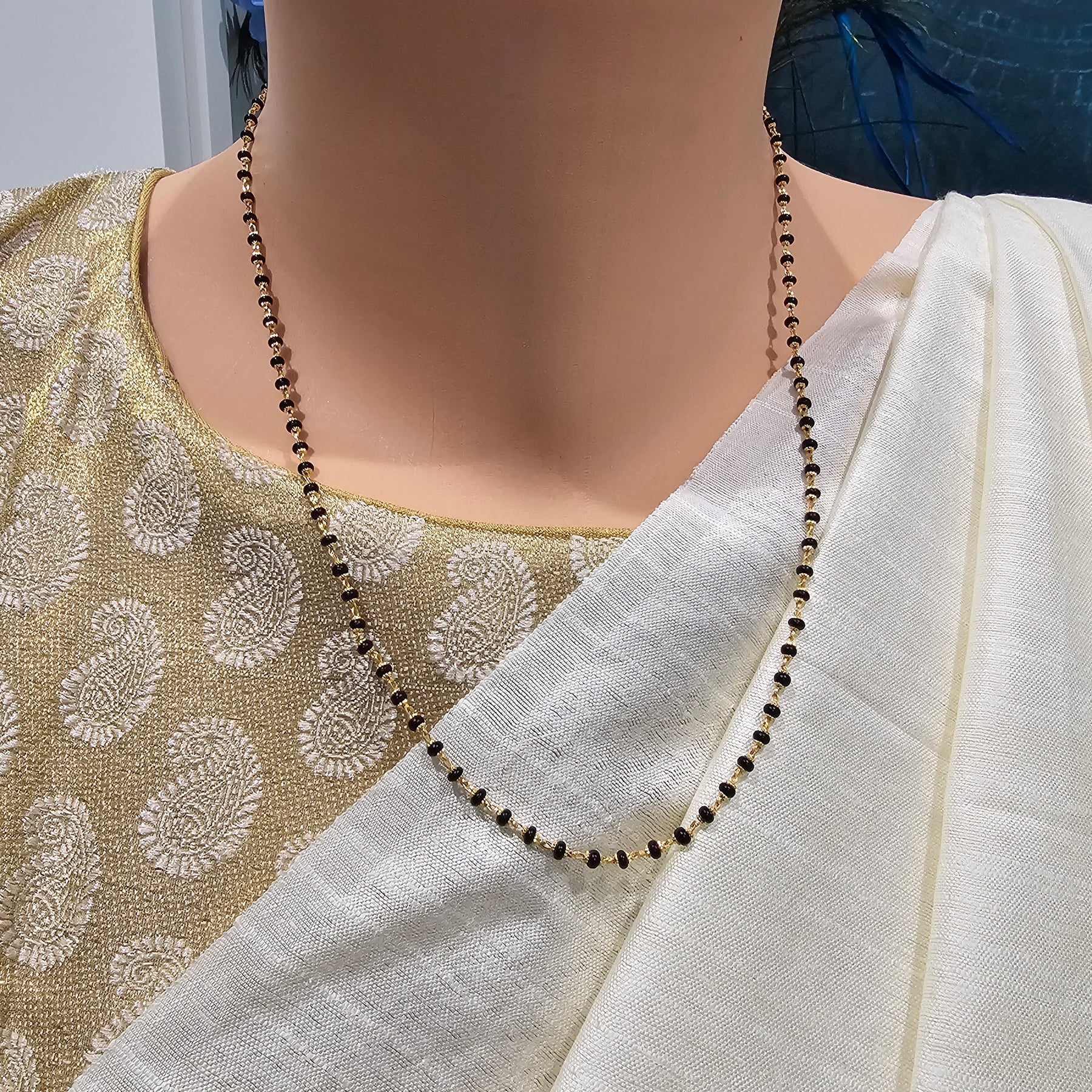 Mangalsutra is very auspicious in Hindu culture. It is an ornament (more specifically a necklace) worn by women to signify their marital status. Therefore, the groom tying the Mangalsutra around the bride's neck during the wedding rituals is considered a sacred Hindu custom.