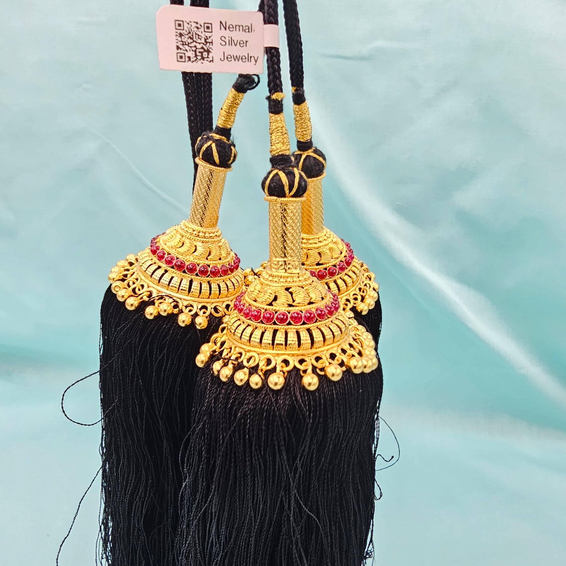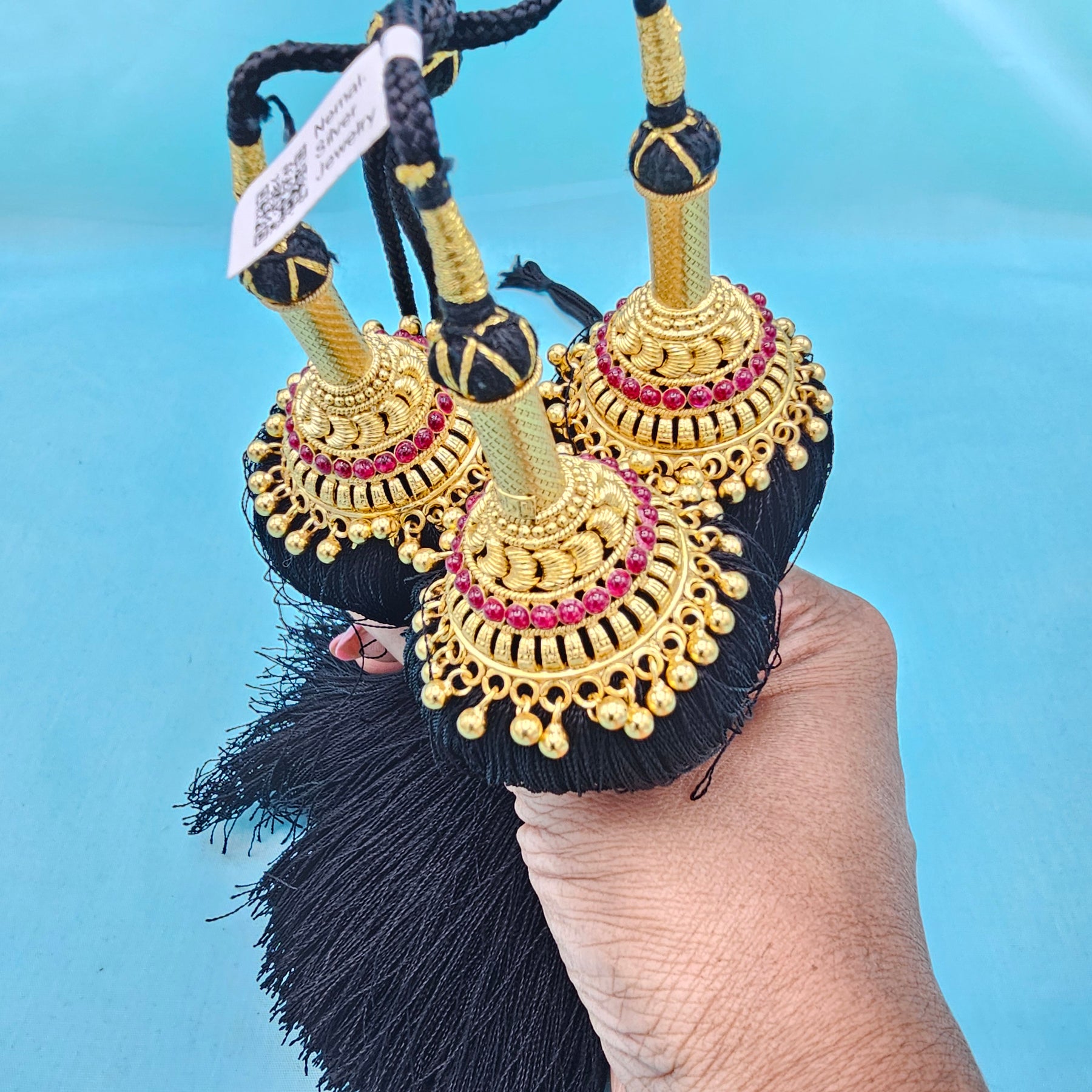 Wearing this Hair Kuppulu completes the look of hair decor and is a traditional way of brides. After using all other jada billa or hair Choti, Jada gantalu gives a complete look for your traditional outfits. This is used by people performing classical Bharatanatyam dance or for bridal hair decoration.