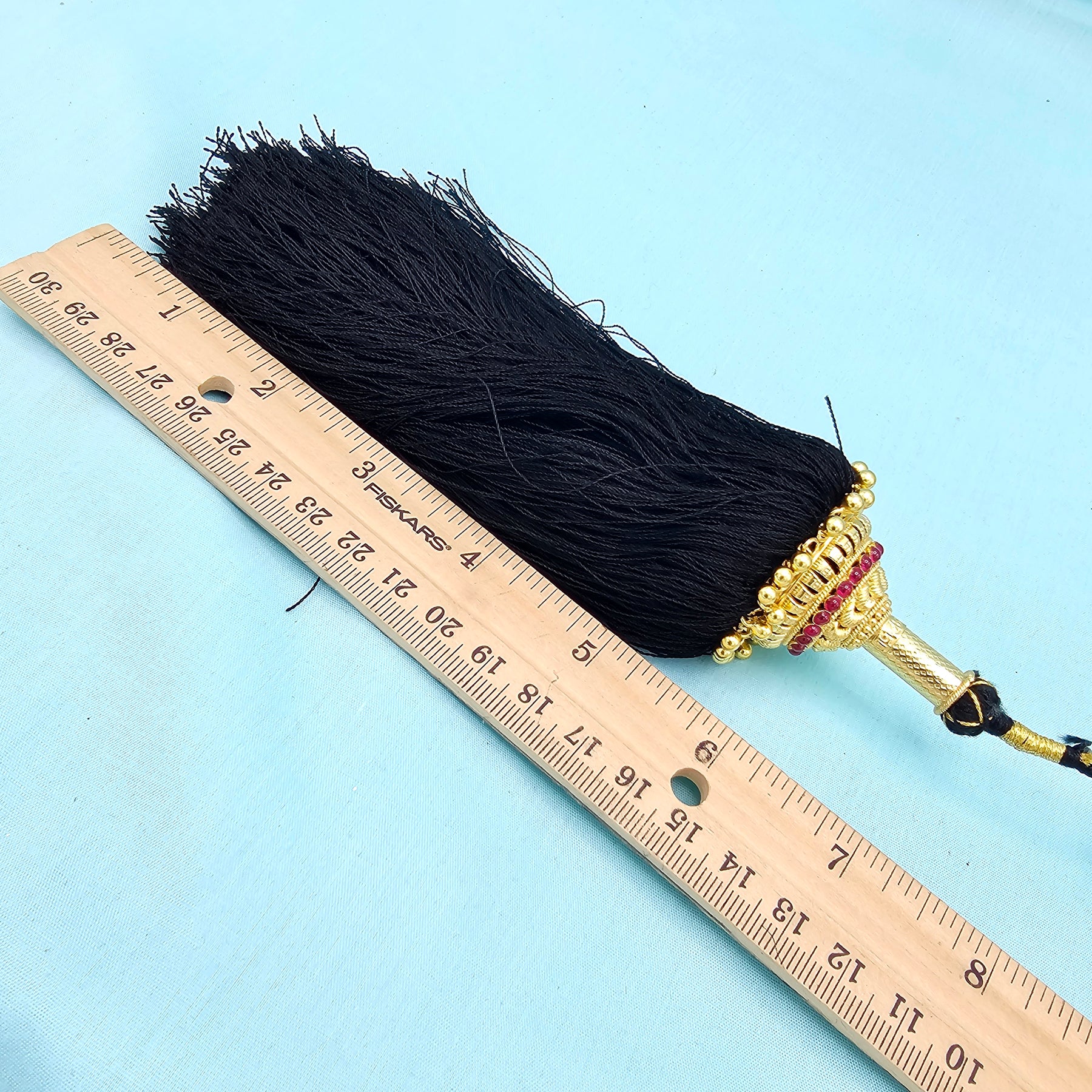 The hanging portion of the jada kunjalam would be straight while the knot is removed. This is the way the Hair Kuppulu is made.