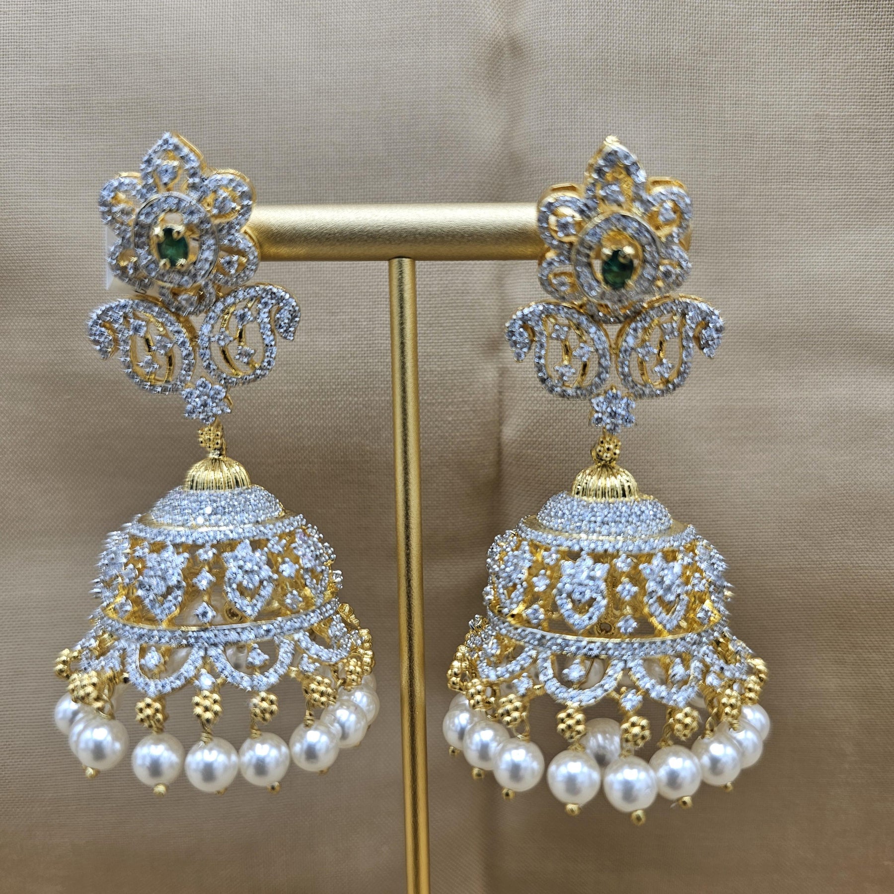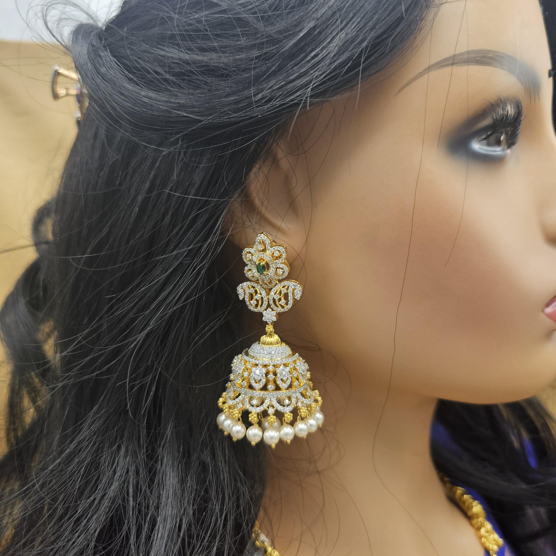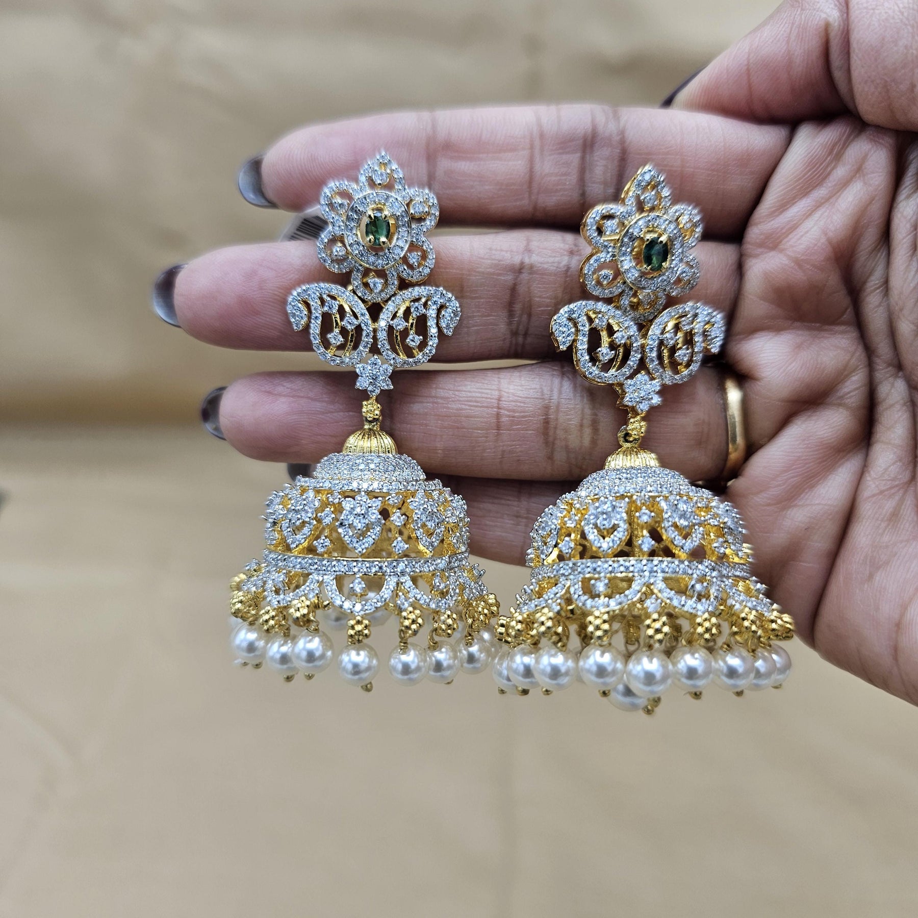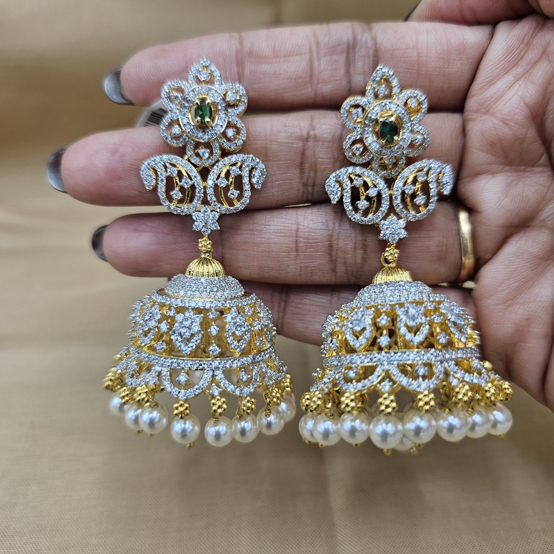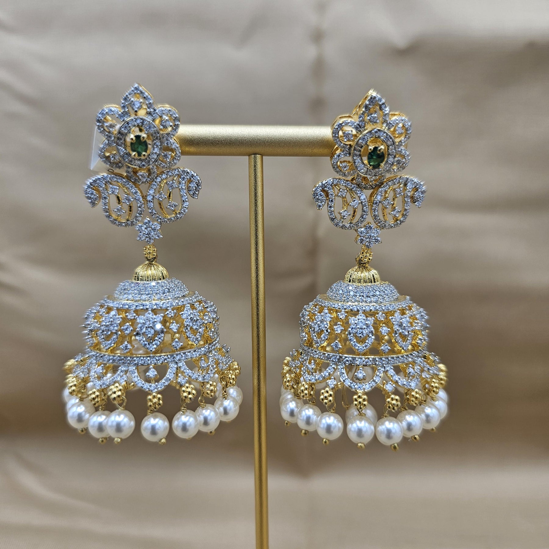 92.5 Silver Diamond Rep earrings, Party-wear Silver earring, Silver Jhumka, Premium Cz Bali, 92.5 Hallmark, Indian wedding jewelry.