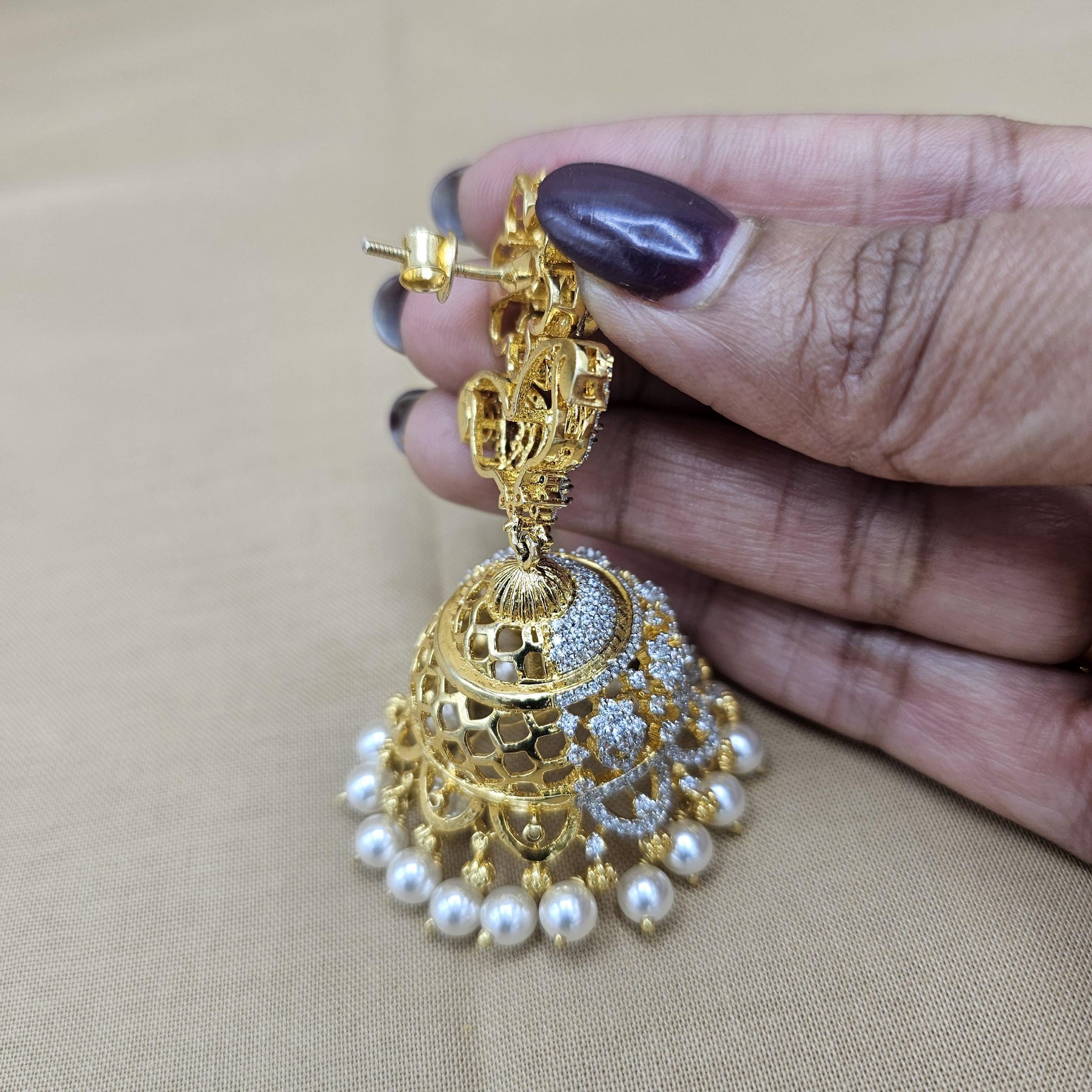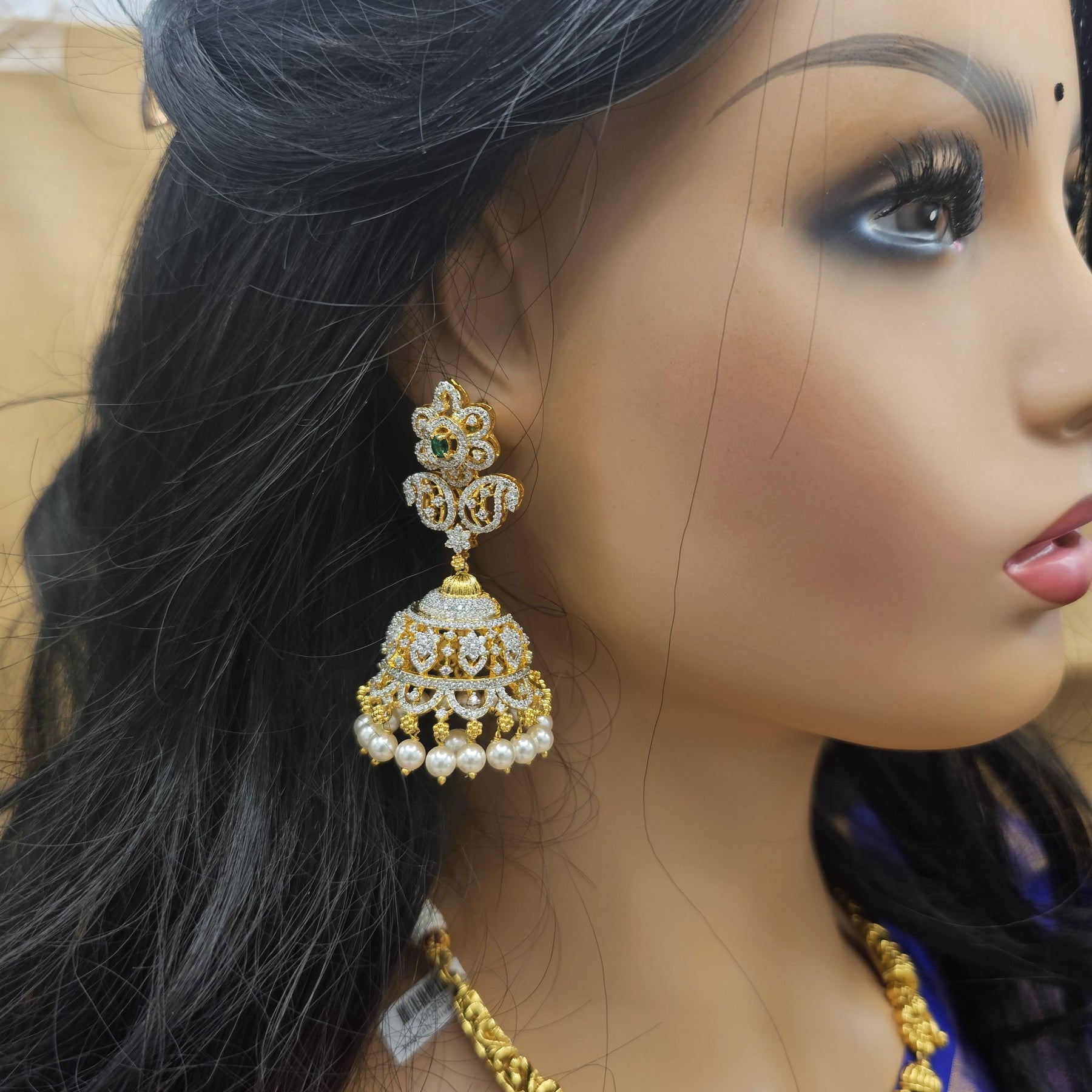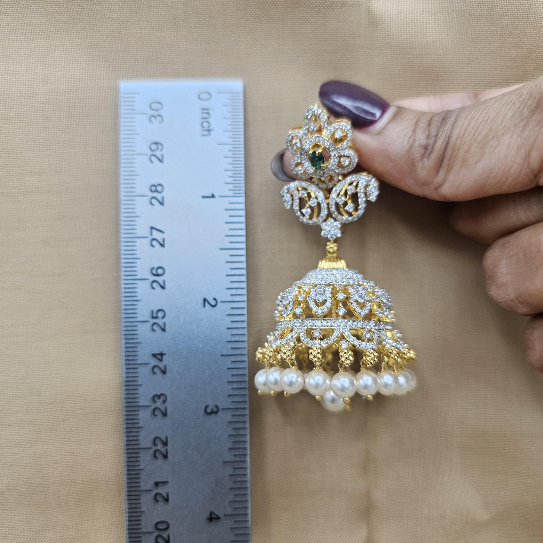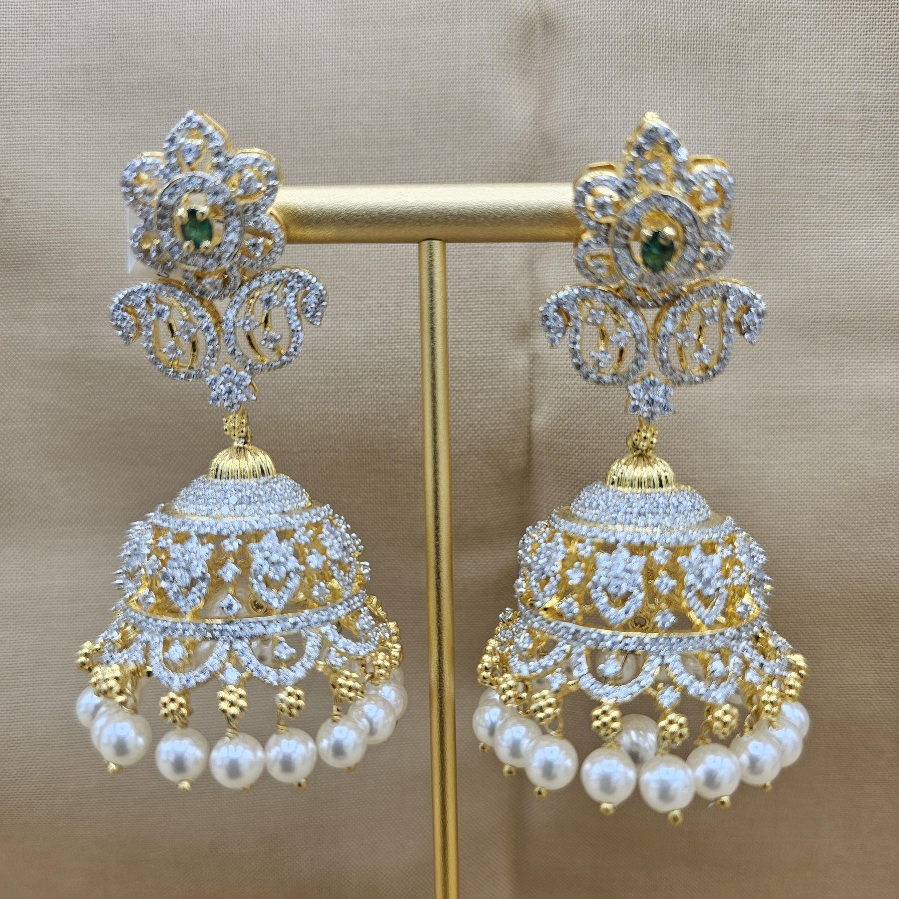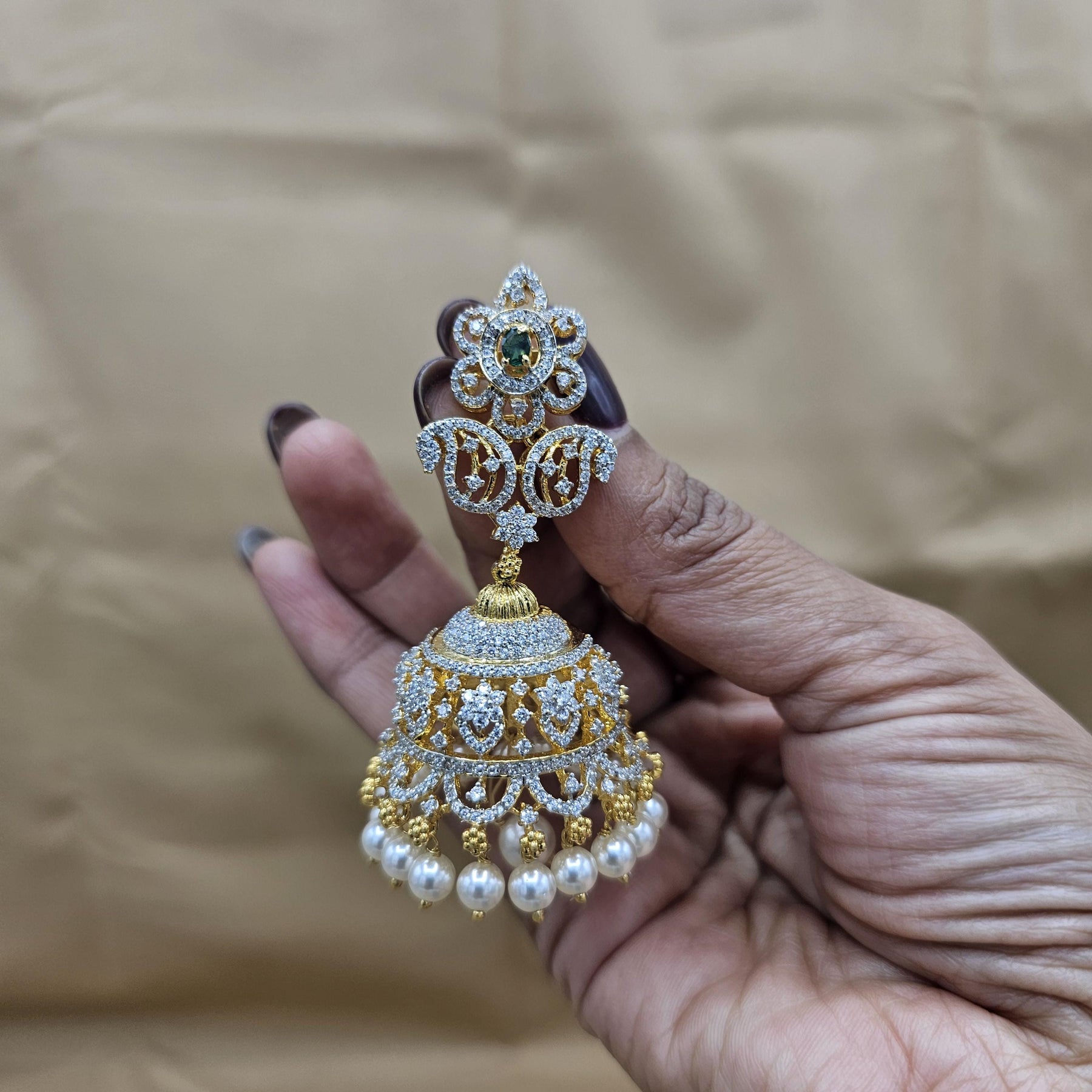92.5 Silver Diamond Rep earrings, Party-wear Silver earring, Silver Jhumka, Premium Cz Bali, 92.5 Hallmark, Indian wedding jewelry.