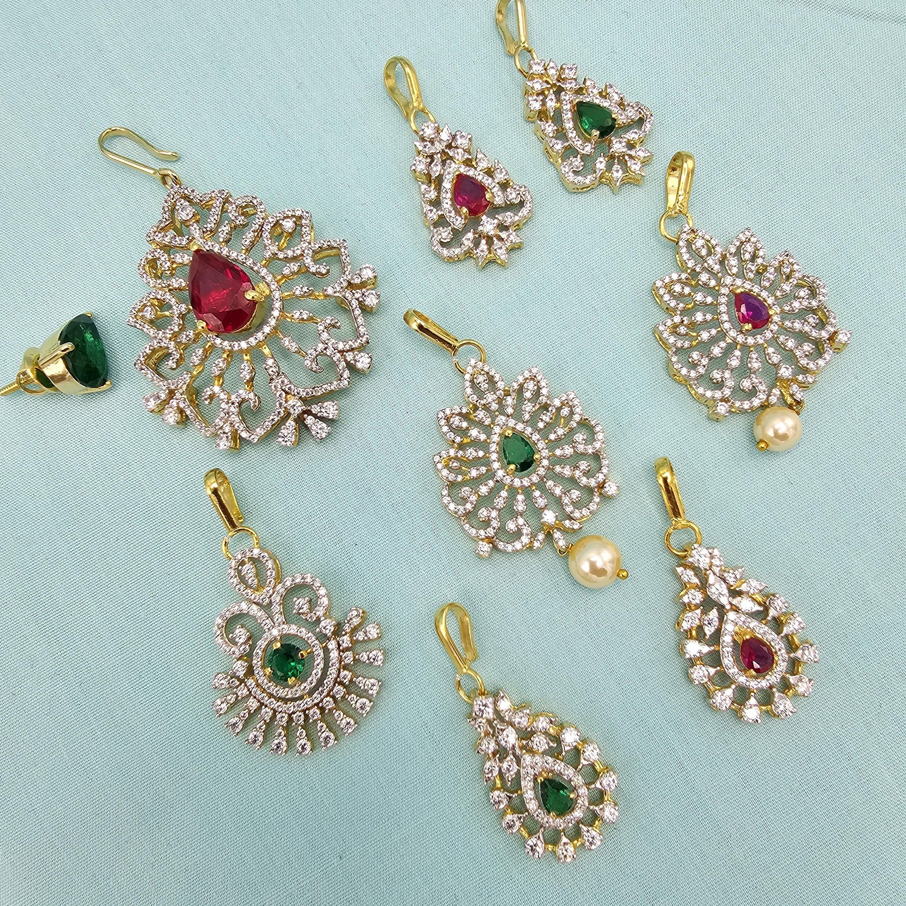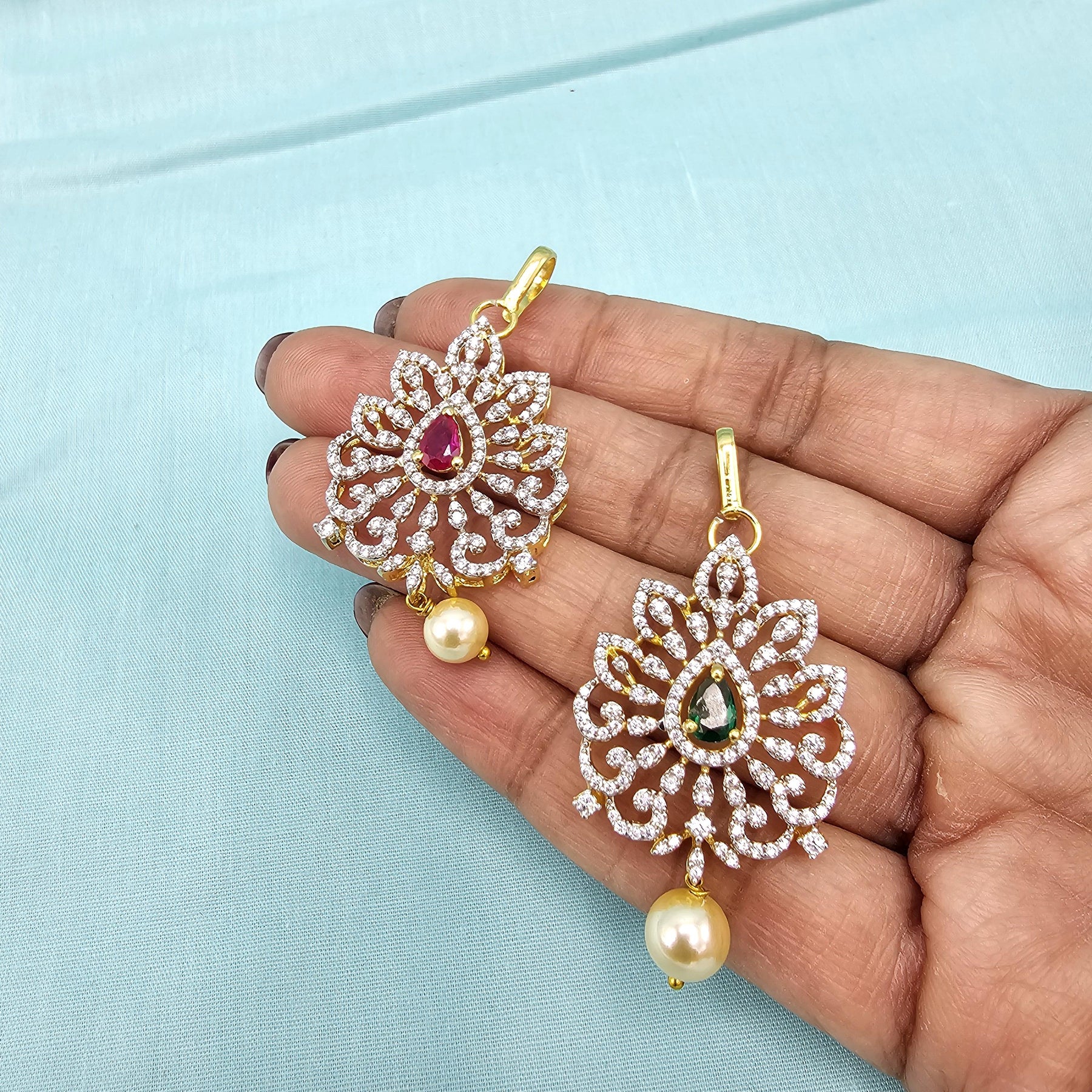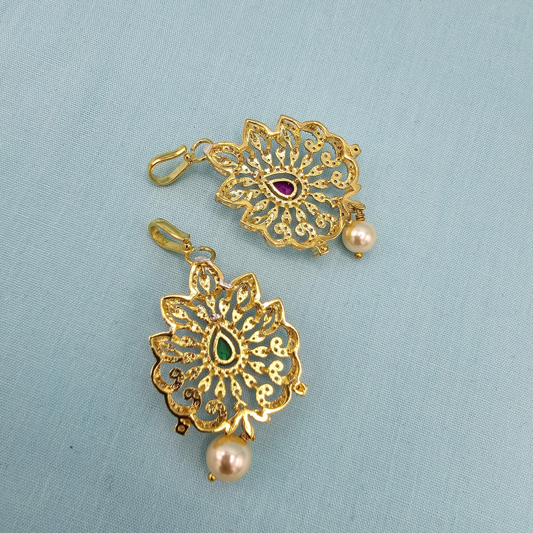 When you adorn maang tikka on your forehead and it will steel the show. This silver Mang Tikka has pink, green and white kundans. This intricately designed " tikka" would surely glamorize any occasion. They give a glamorous outlook to the traditional outfits.