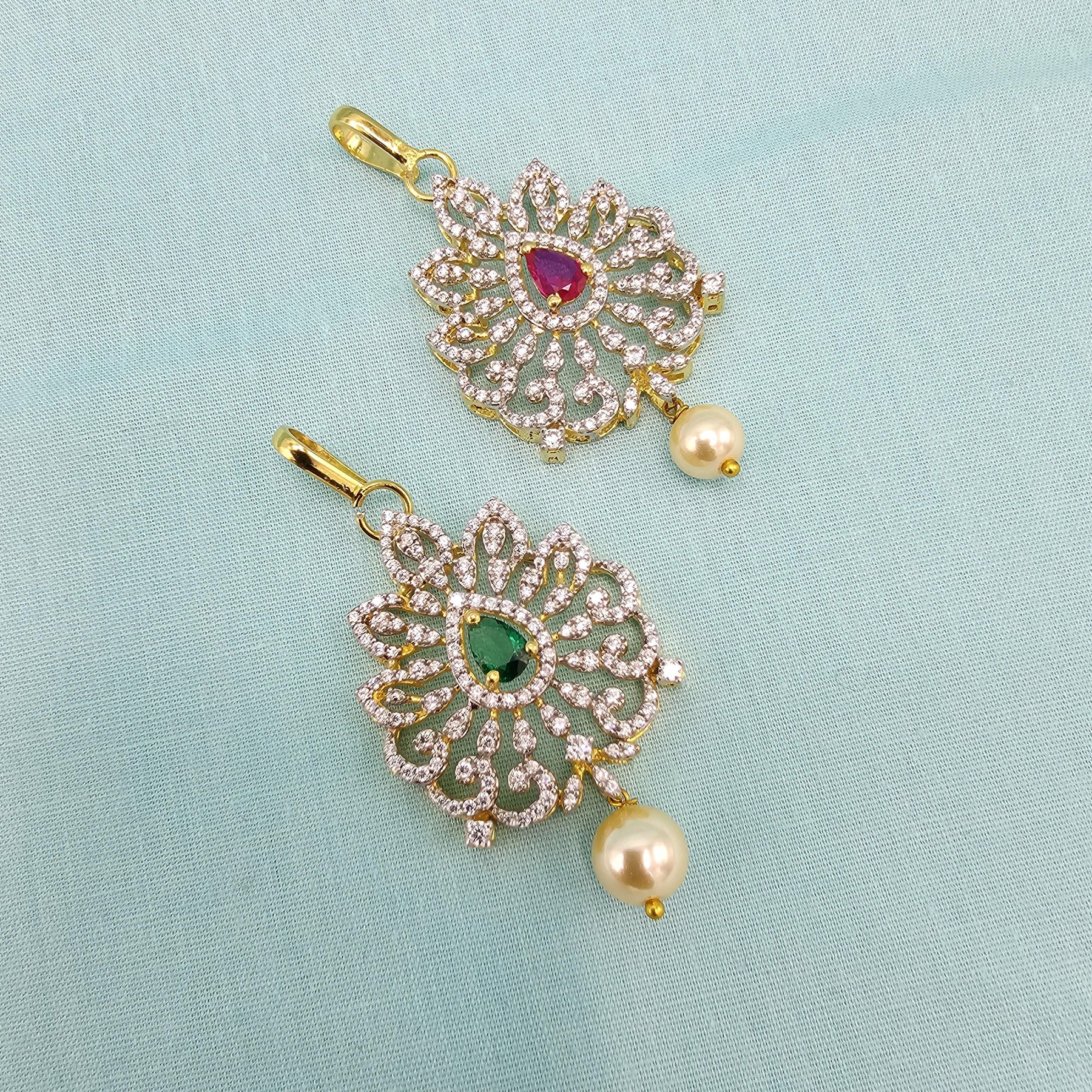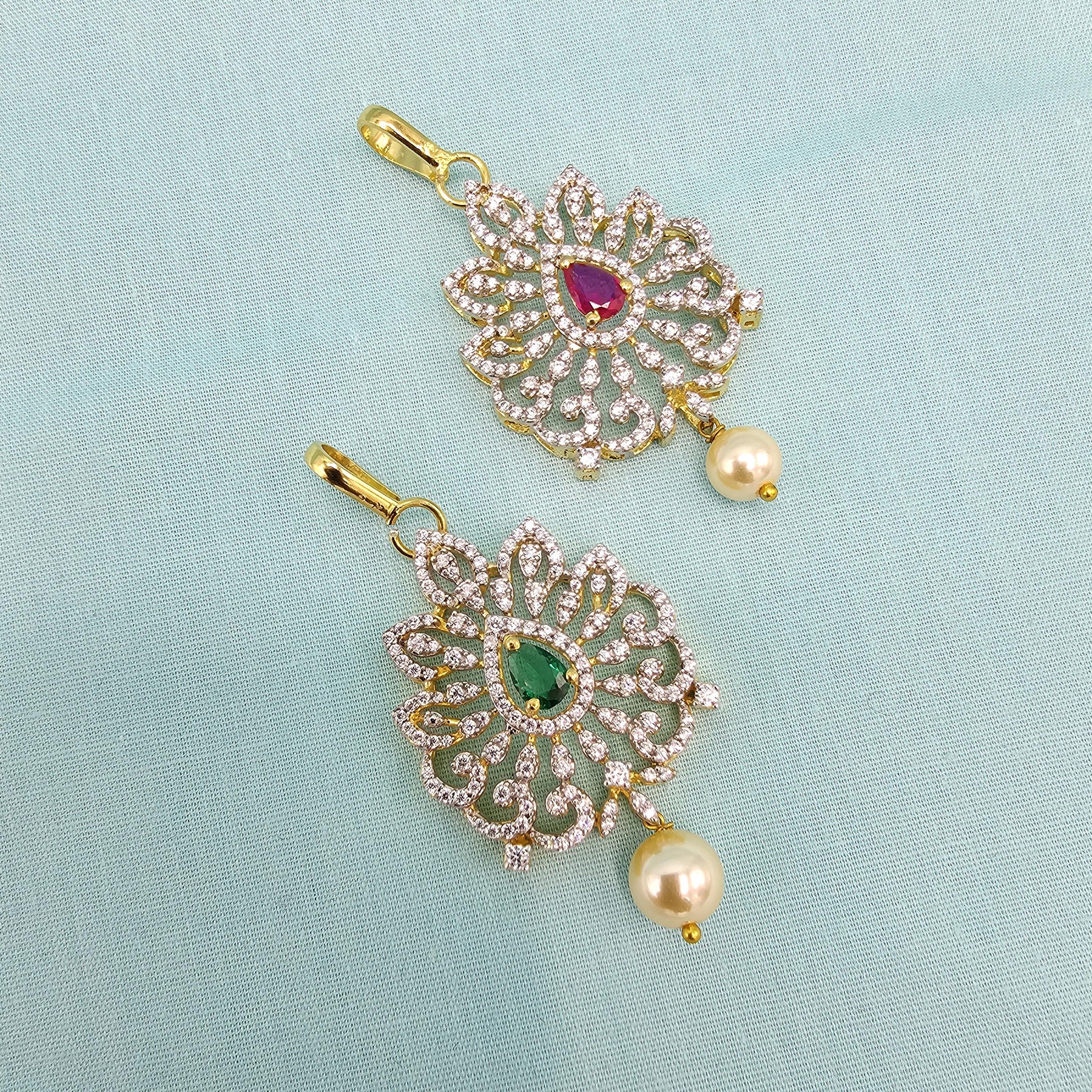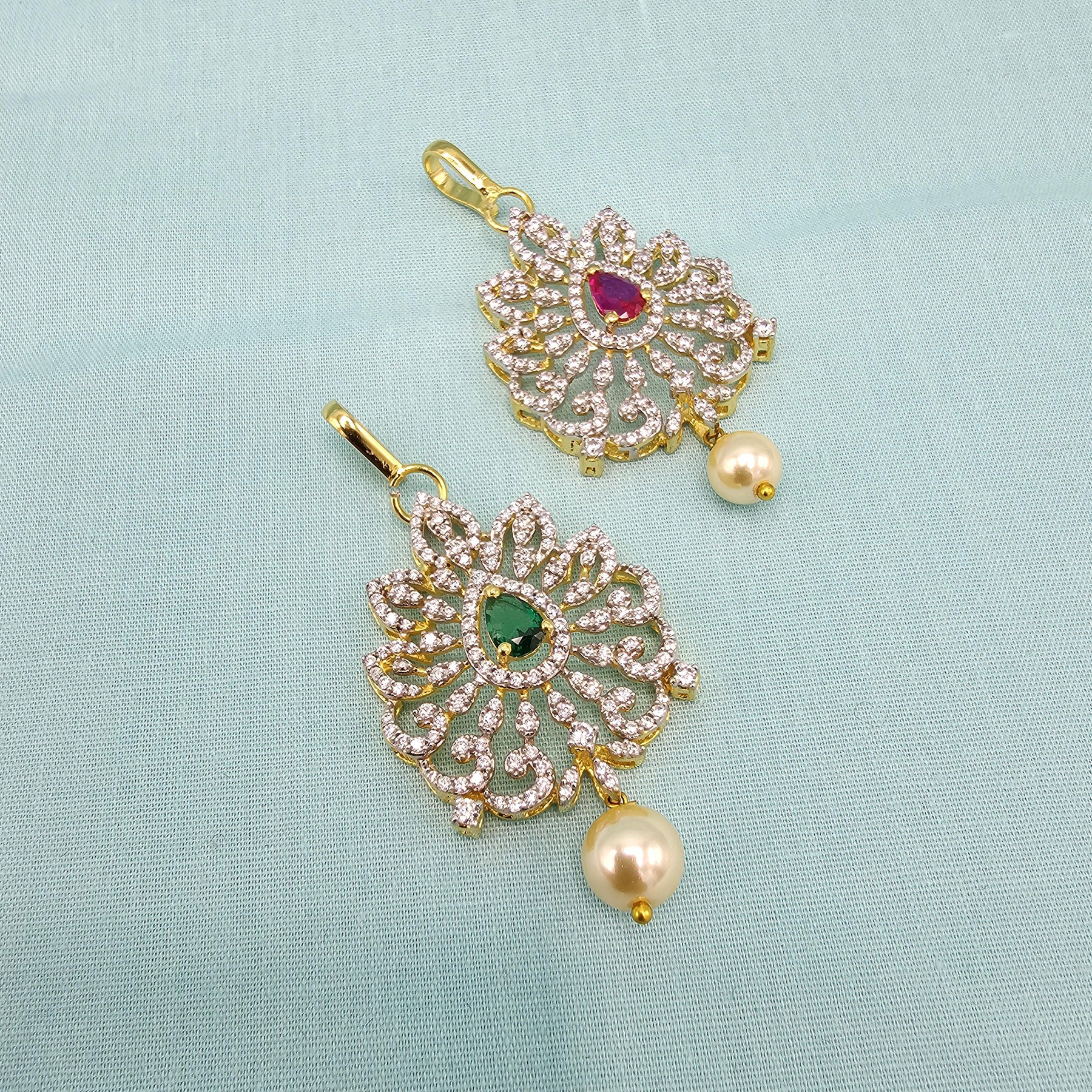 When you adorn maang tikka on your forehead and it will steel the show. This silver Mang Tikka has pink, green and white kundans. This intricately designed " tikka" would surely glamorize any occasion. They give a glamorous outlook to the traditional outfits.