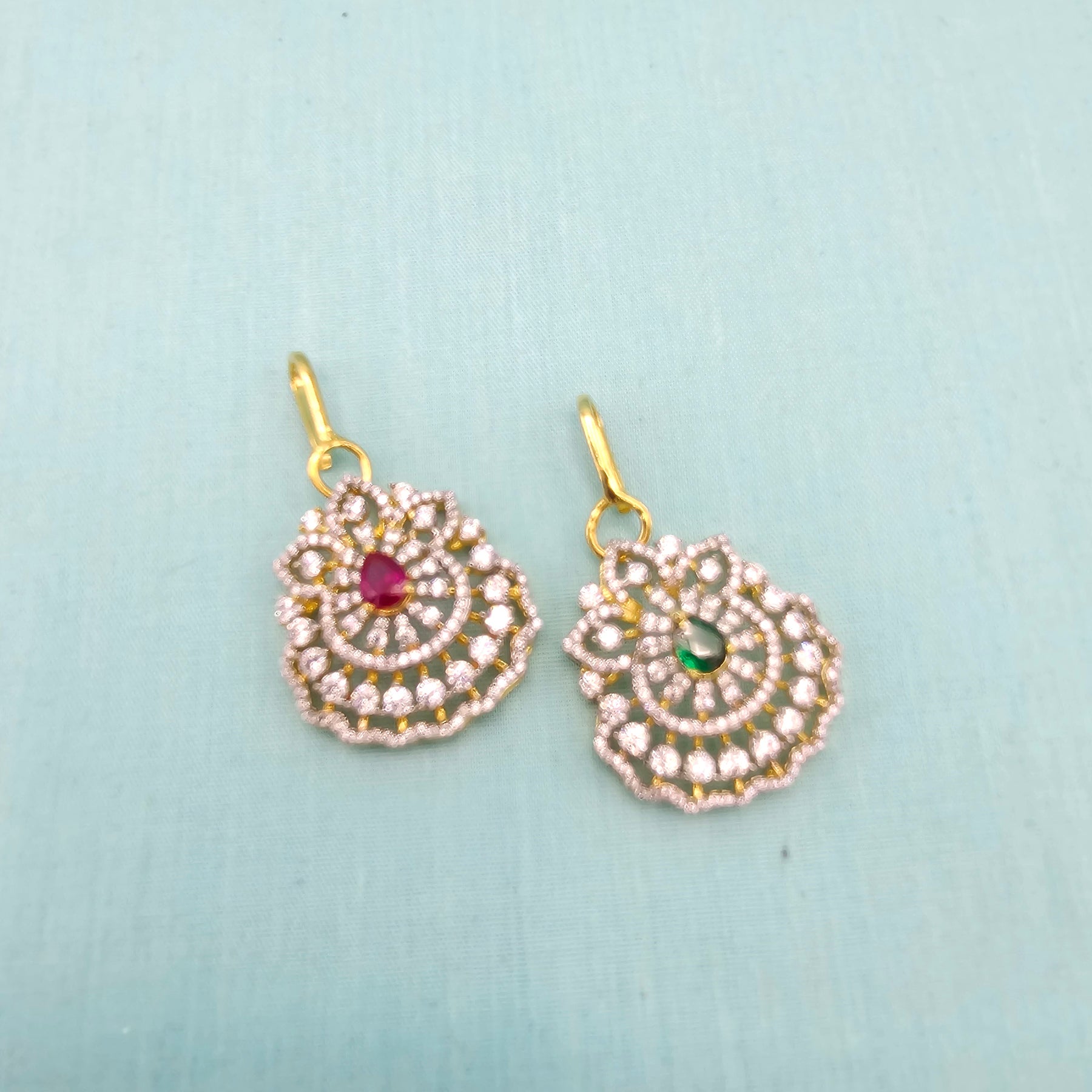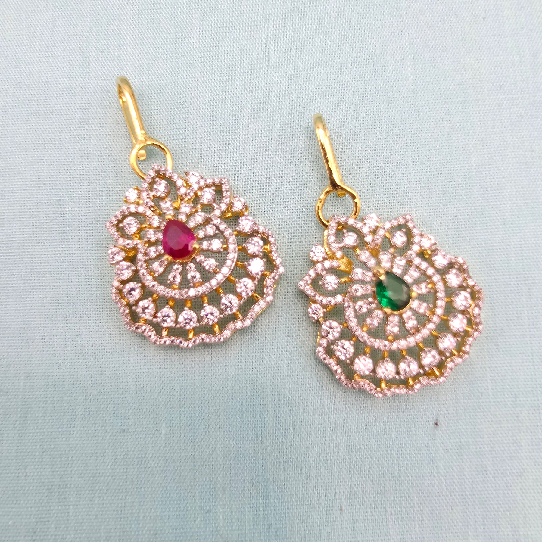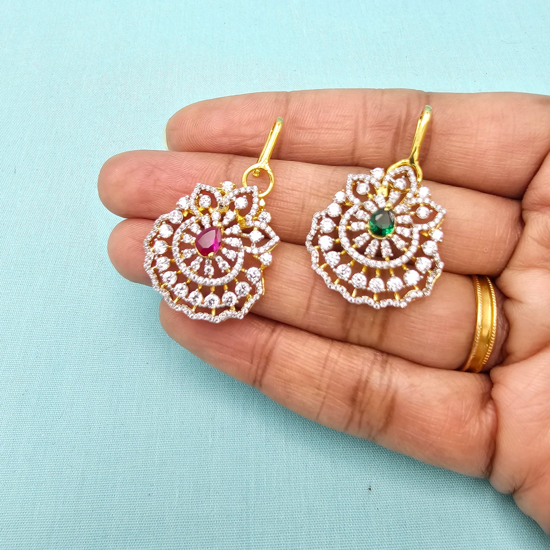 When you adorn maang tikka on your forehead and it will steel the show. This silver Mang Tikka has pink, green and white kundans. This intricately designed " tikka" would surely glamorize any occasion. They give a glamorous outlook to the traditional outfits.
