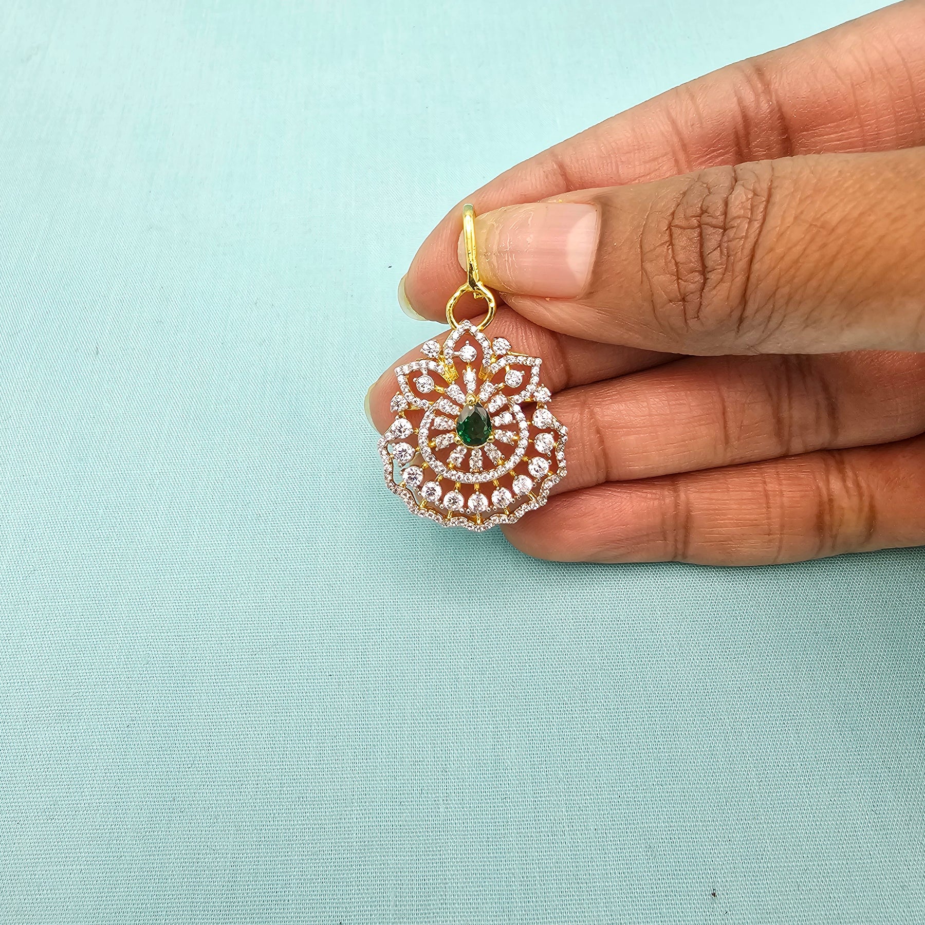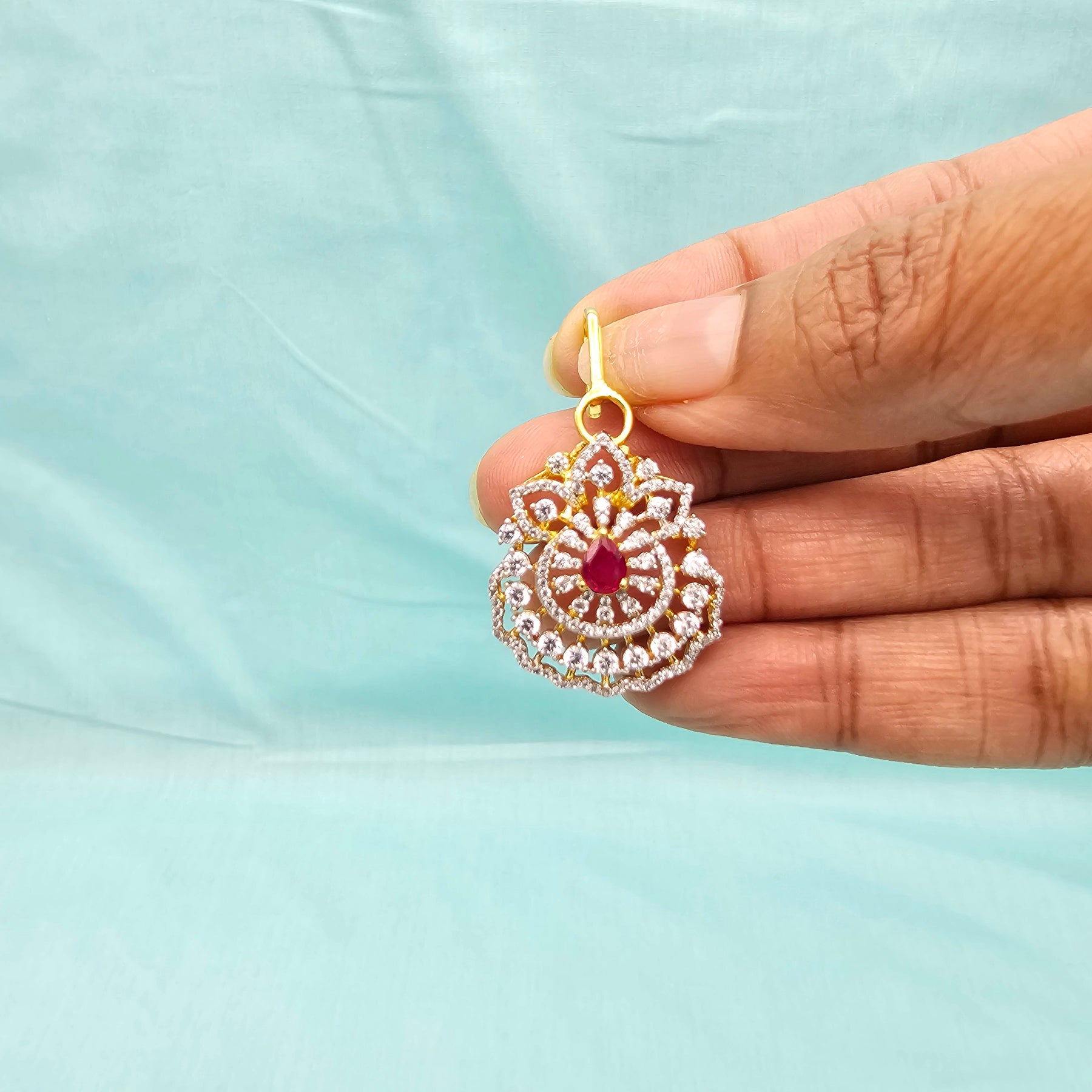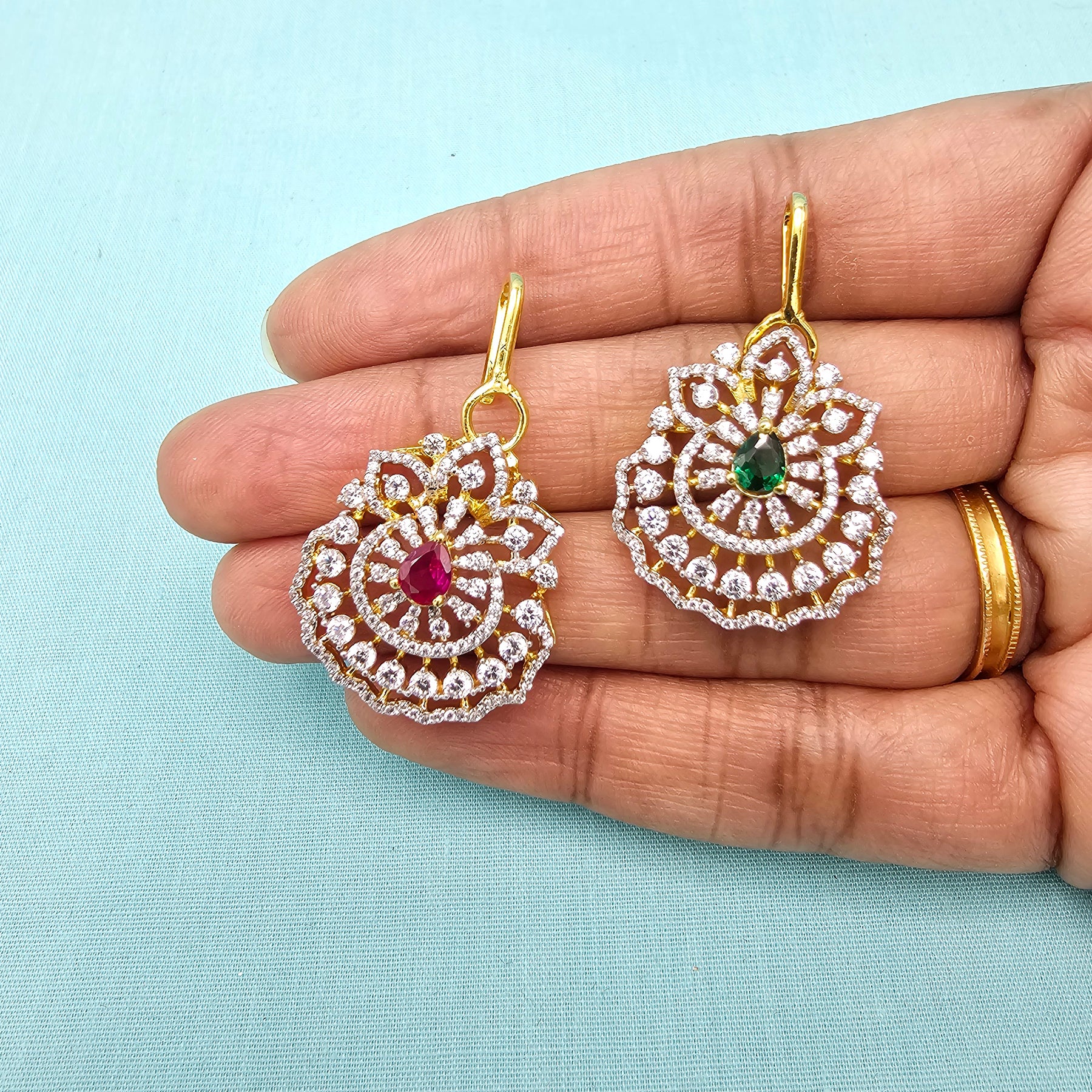 When you adorn maang tikka on your forehead and it will steel the show. This silver Mang Tikka has pink, green and white kundans. This intricately designed " tikka" would surely glamorize any occasion. They give a glamorous outlook to the traditional outfits.