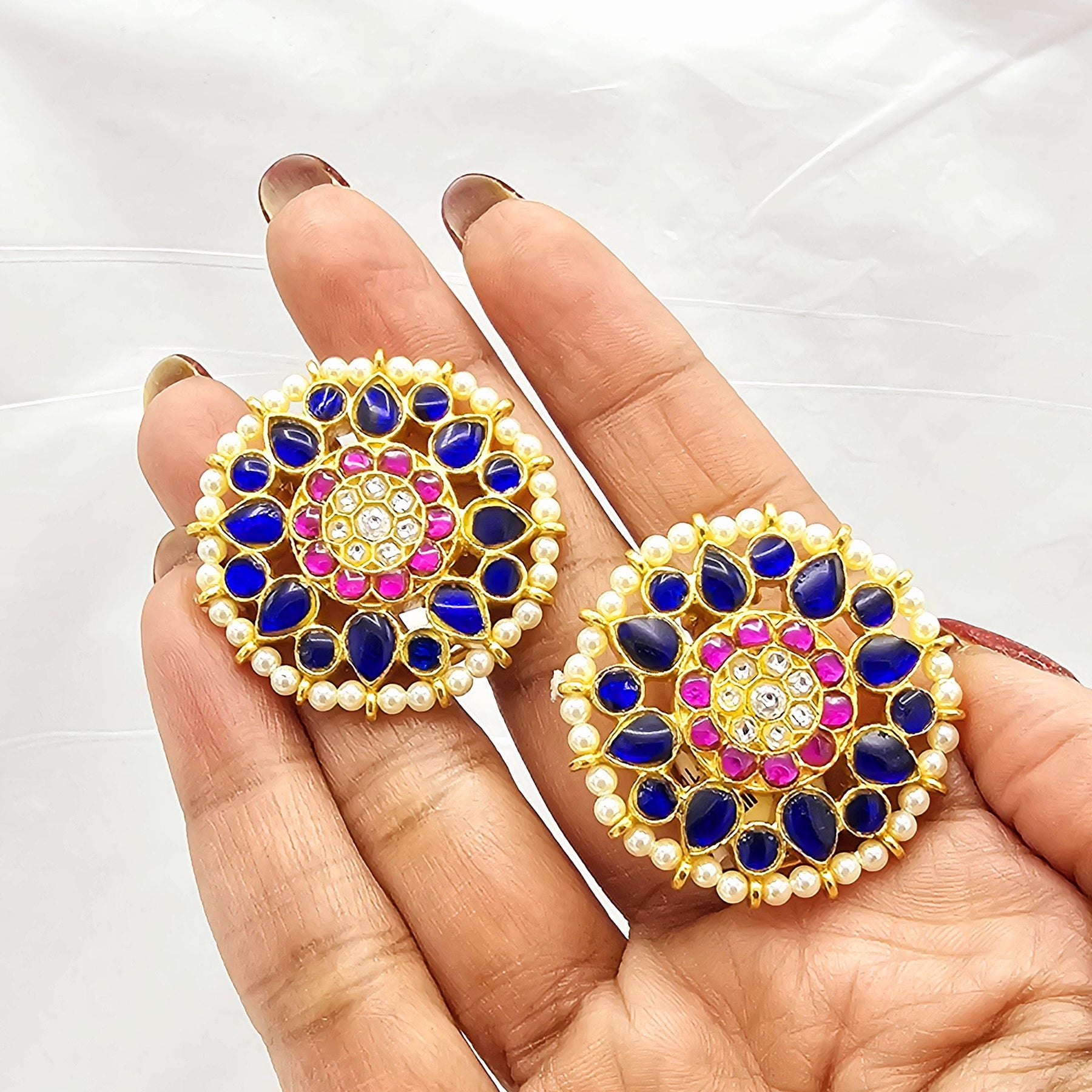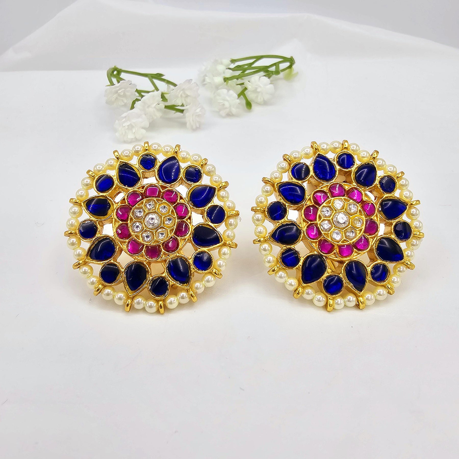 Blue Jadau Kundan studs