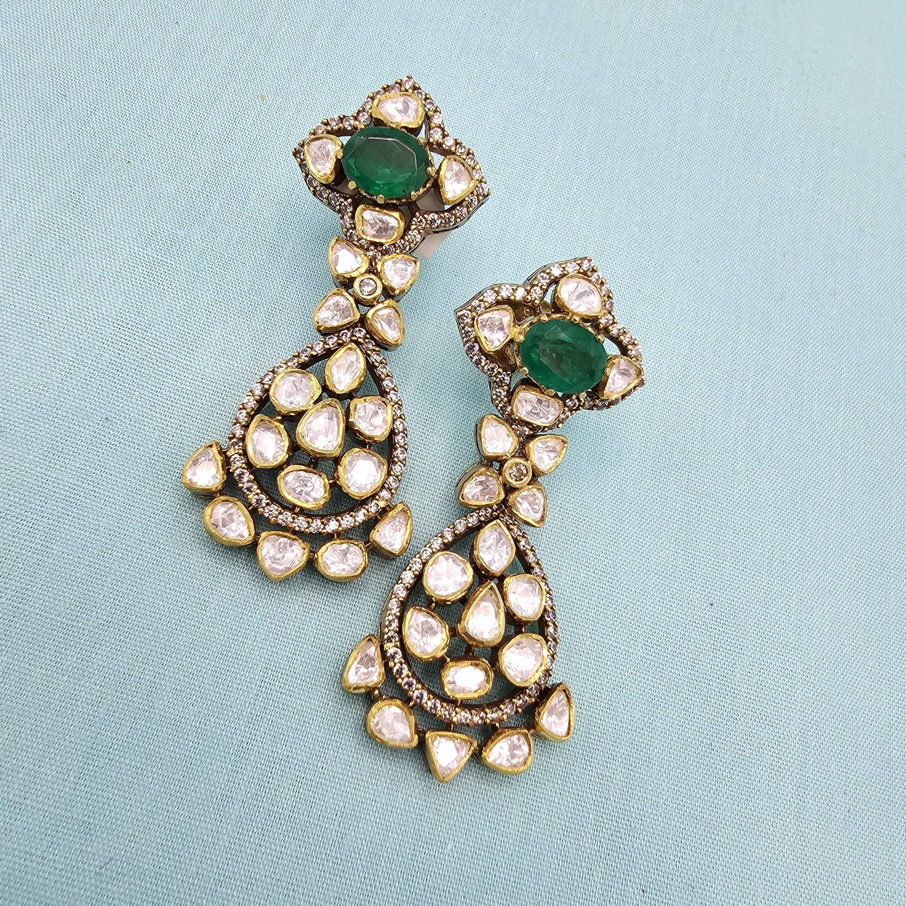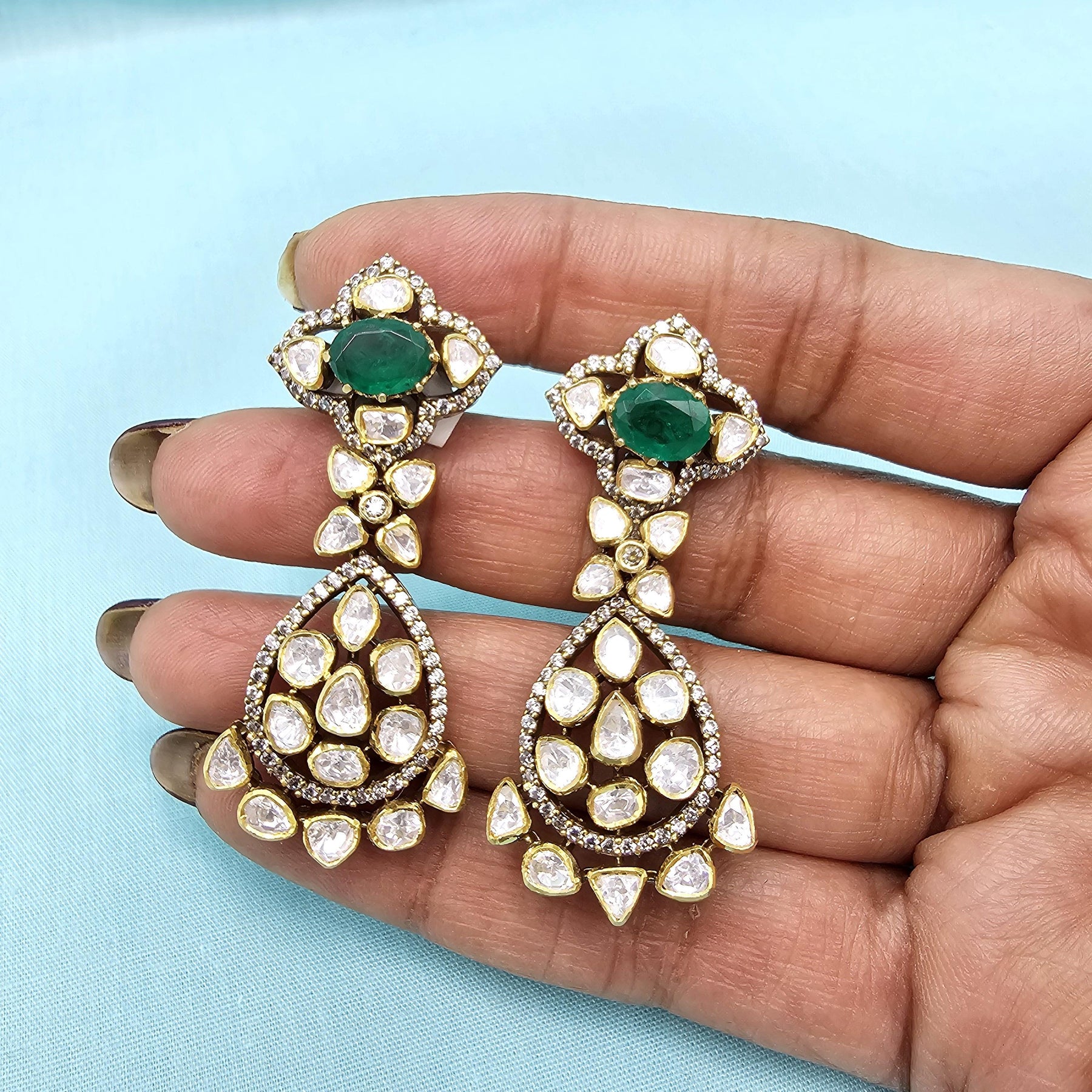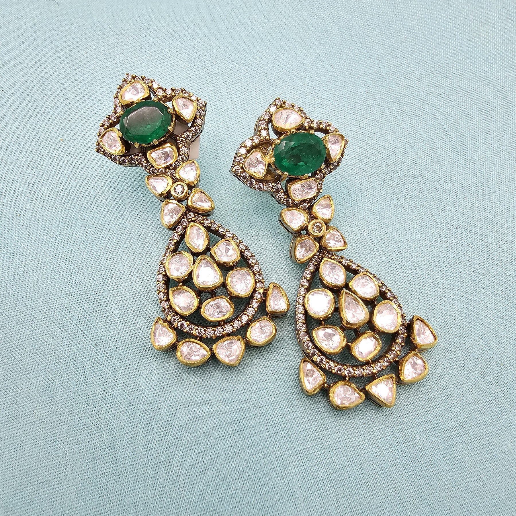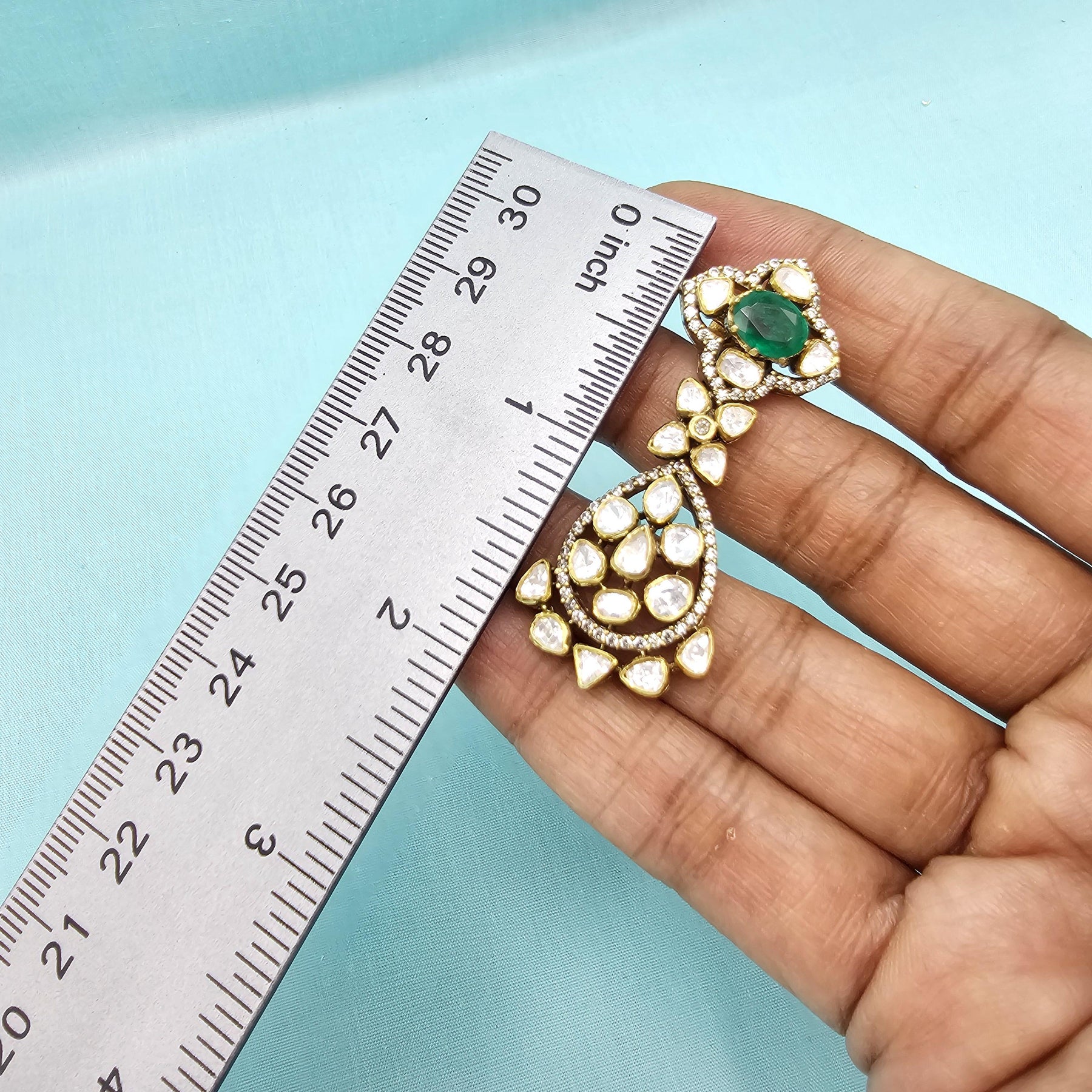 Elegant Silver Polki Jhumka Earrings - Traditional Indian Design 92.5 silver Victorian chandbali, silver medium size earrings, 2" Silver bali, Simple traditional earrings, Victorian small earrings