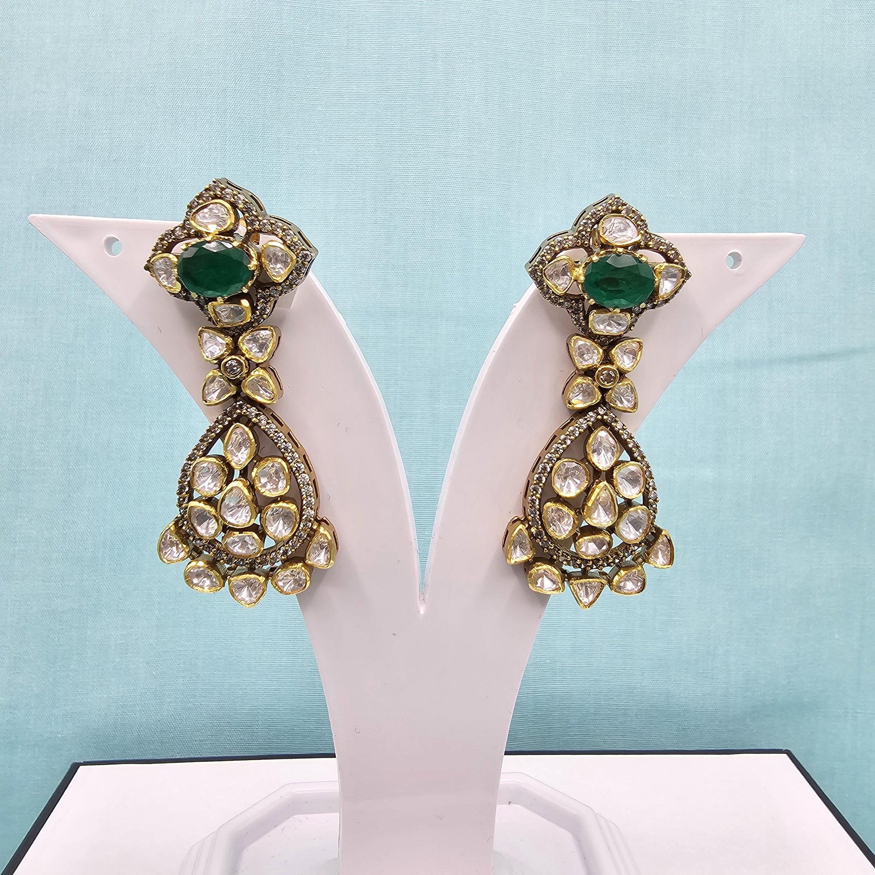 Perfect for gifting or enhancing your own jewelry collection, these Silver Polki Jhumkas are a must-have for lovers of traditional Indian jewelry.