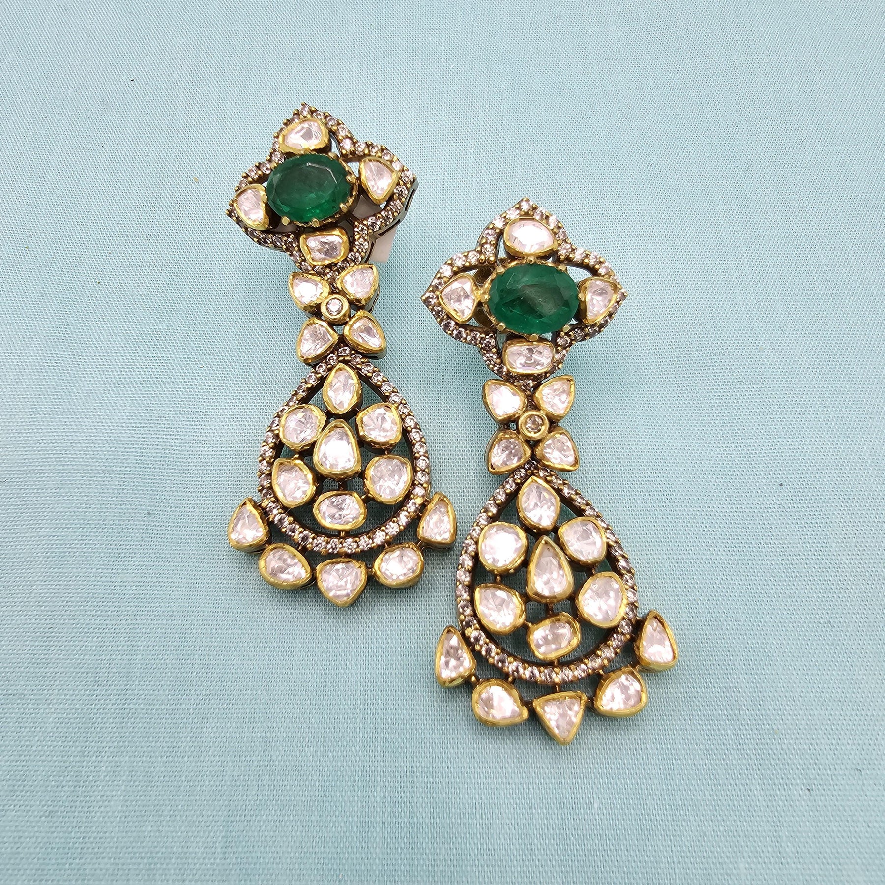Add a touch of timeless elegance to your look with these handcrafted Silver Polki Jhumka earrings. Made from high-quality 925 sterling silver, these earrings feature intricate detailing and stunning Polki stones that reflect the richness of traditional Indian craftsmanship. The classic jhumka bell design paired with uncut Polki stones makes them a perfect accessory for festive occasions, weddings, and cultural celebrations. Lightweight and comfortable, these jhumkas bring heritage and glamour together in one exquisite piece.