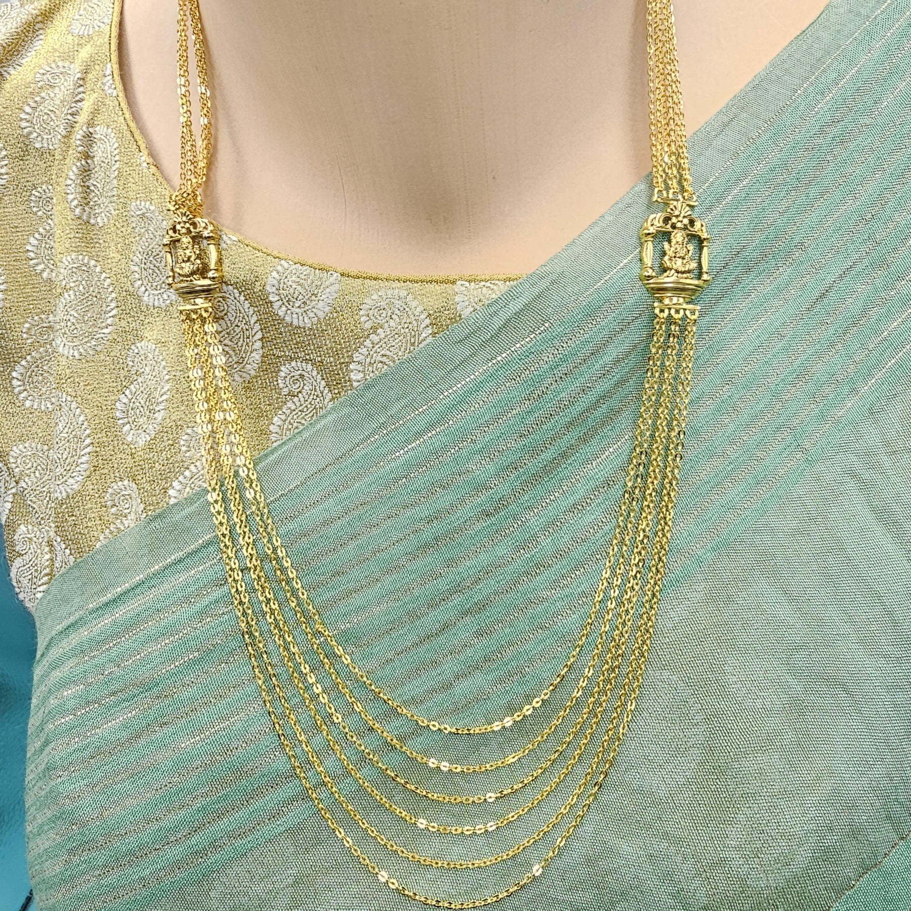 It comes with a dori (FREE) or you can purchase pure silver with gold covering BACK CHAINS. Here is the link for back chains.
