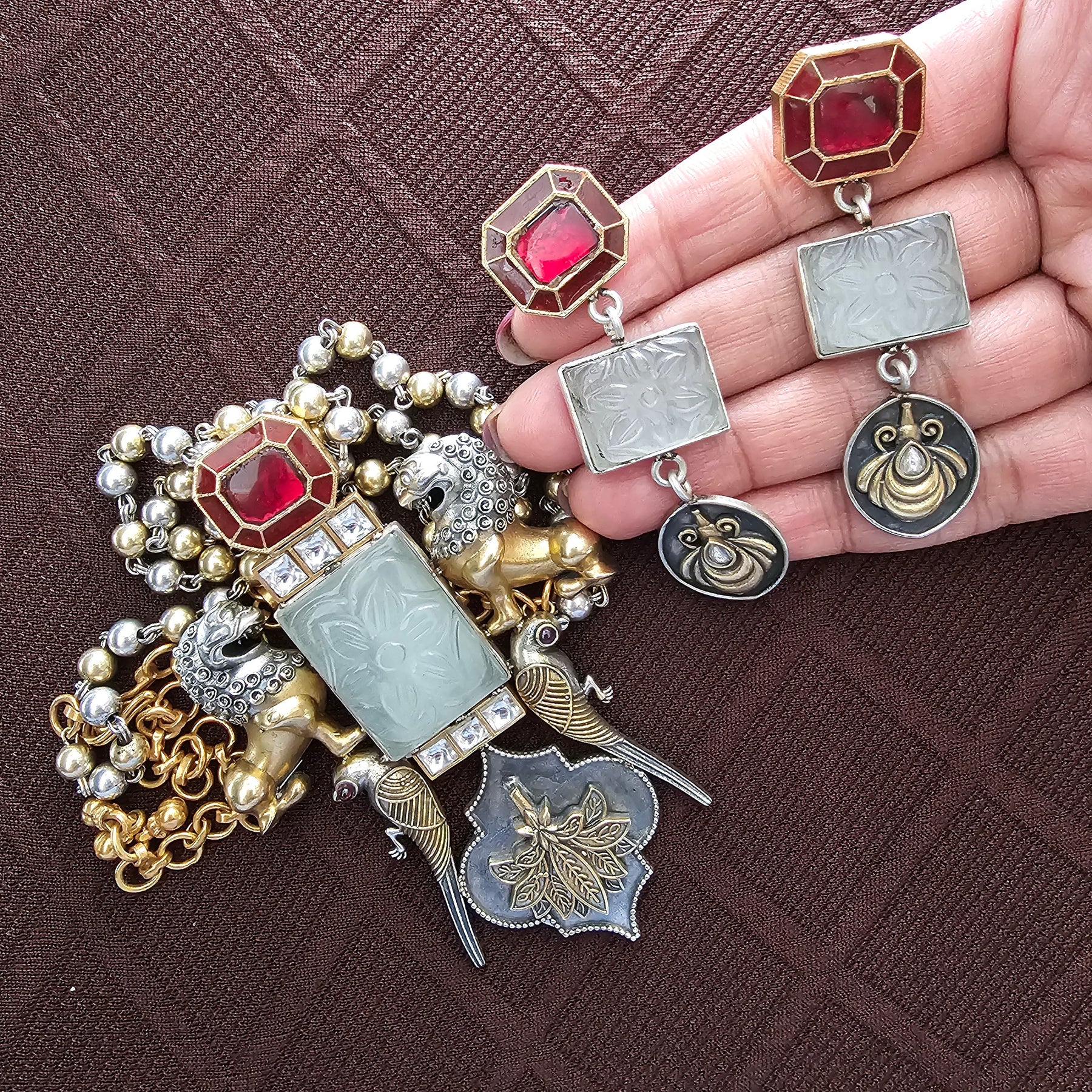 We have a huge Silver Jewelry collection with us, Necklace sets, Bangles and Bracelets Earrings, Fushion Jewelry, Hasli, Tikka, Vaddanam, Vanki , Rings, Anklets,Toe Rings and Precious beads collection made with Kundans, Mossonites, Cz diamonds, Swarovski , Victorian , Corals. Pls contact us for more designs, we will be happy to ship from Atlanta.