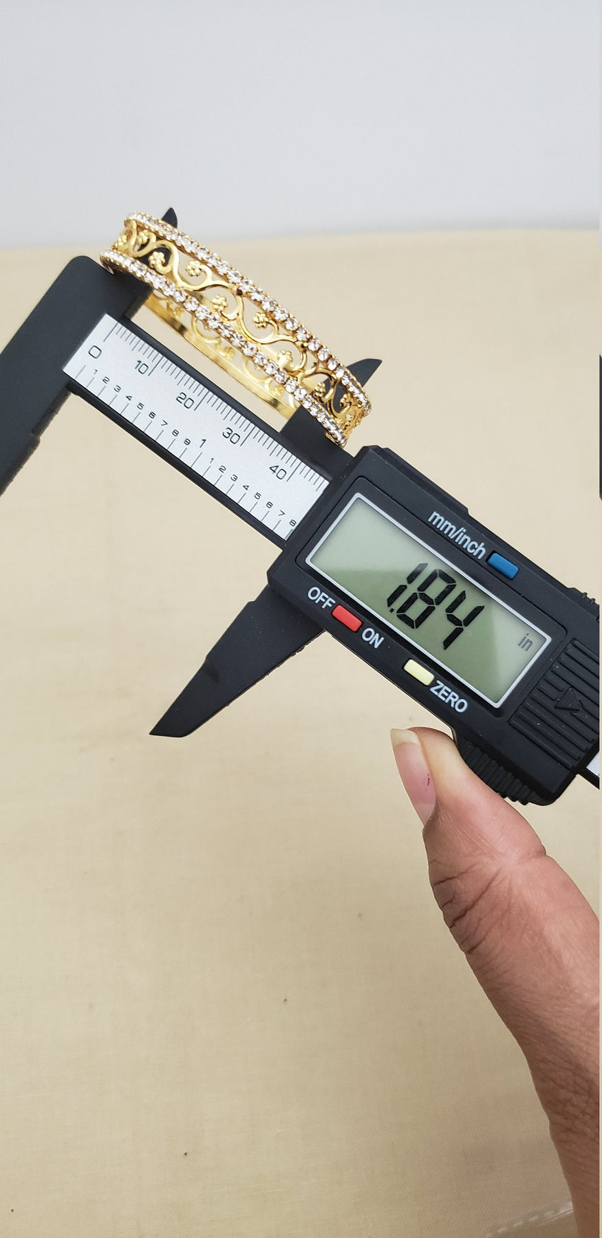 Gorgeous gold-plated bangle/ bracelet best exemplifies the careful craftsmanship done on it - a specialty at Nemali Jewelry. It has a special tone of elegance attached to it. The intricate handmade design of the bangle/bracelet set gives it a fresh and original look.