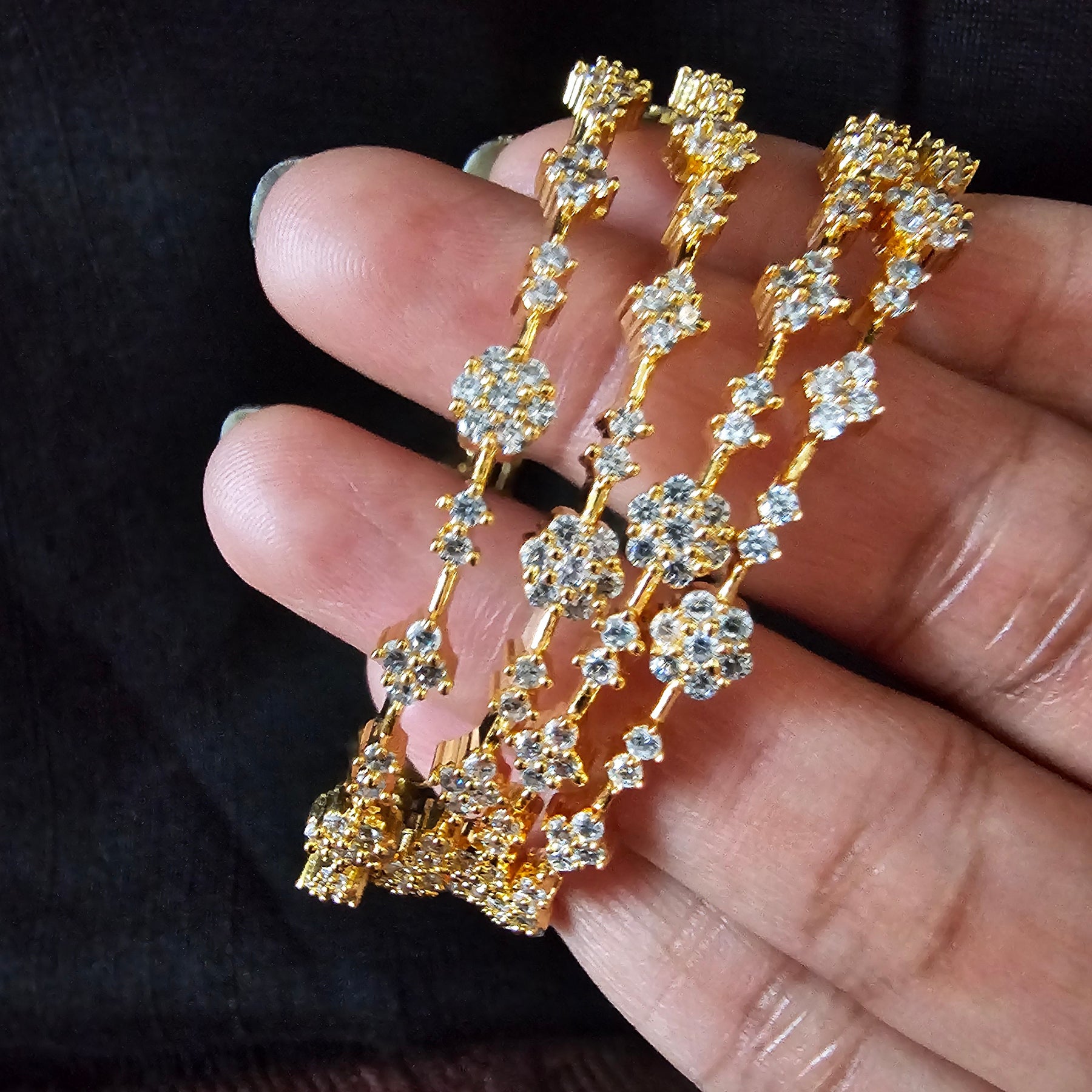 Look your best with this elegant-looking bangle/bracelet set from the house of Nemali Jewelry. This set looks elegant at first glance. You can Mix and match or easily pair it up with Glass bangles, Thread work bangles, Stone, or Kundan bangles.