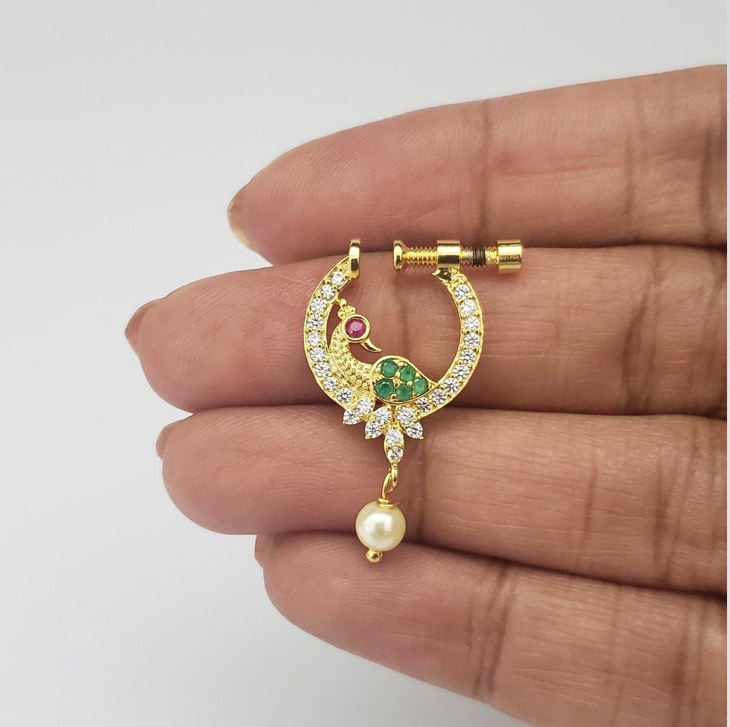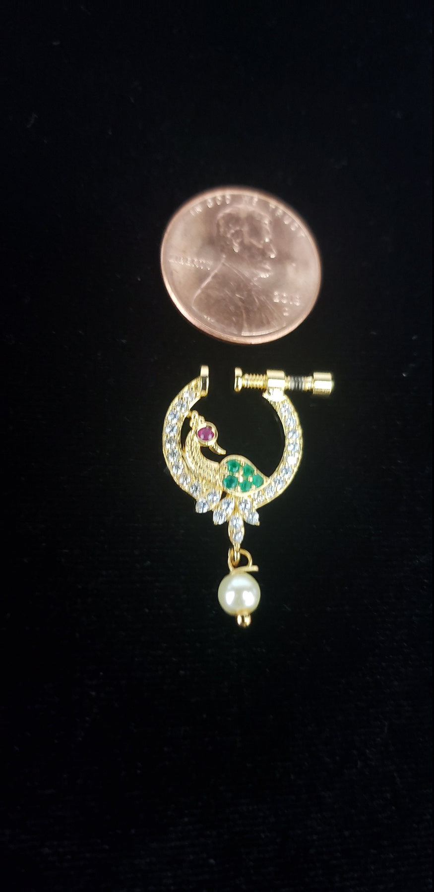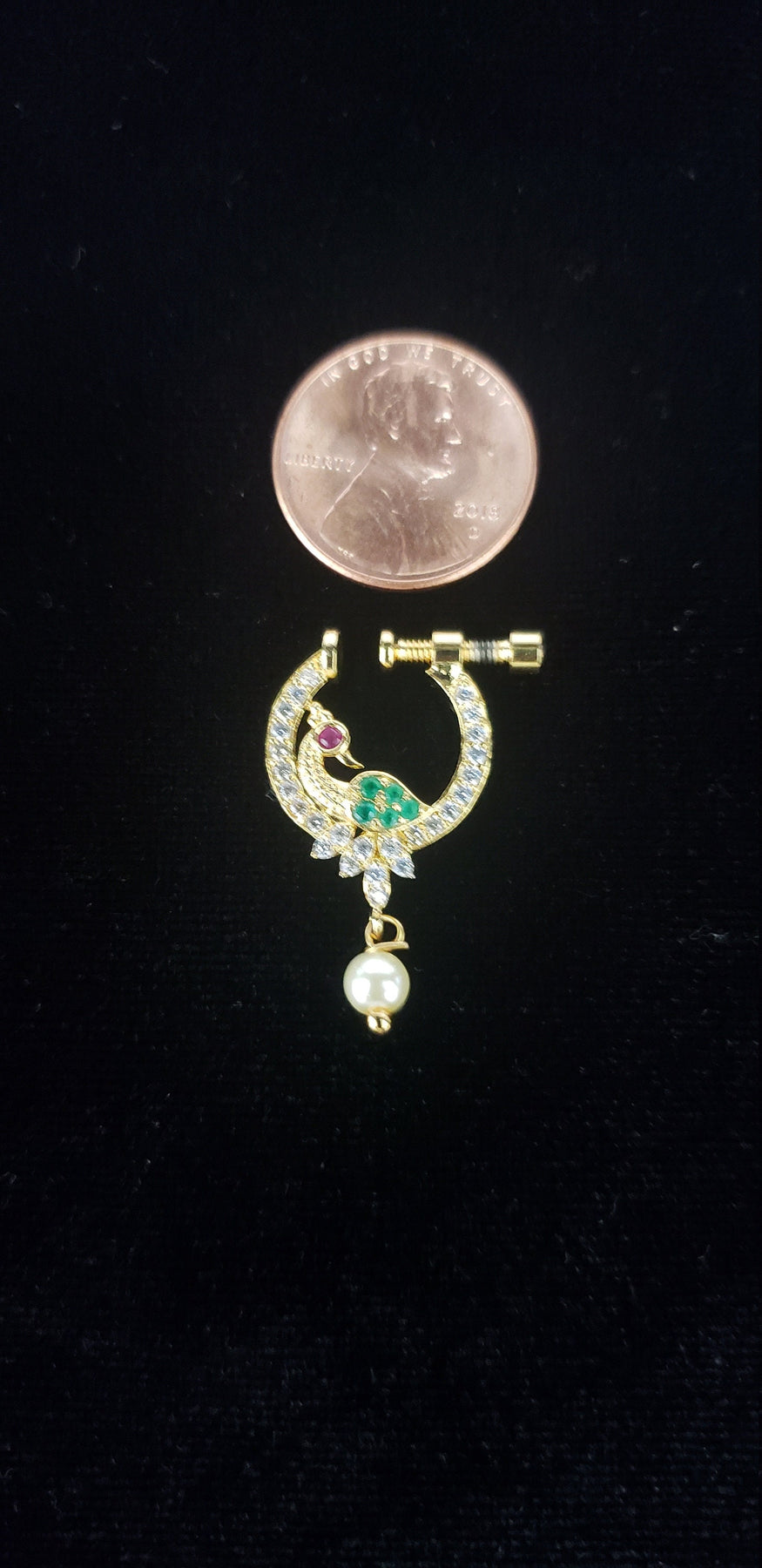 This Nose ring is designed for all special occasions. it requires NO piercing, just press it, and you are done. the size of the nose ring is approximately the size of a Cent.