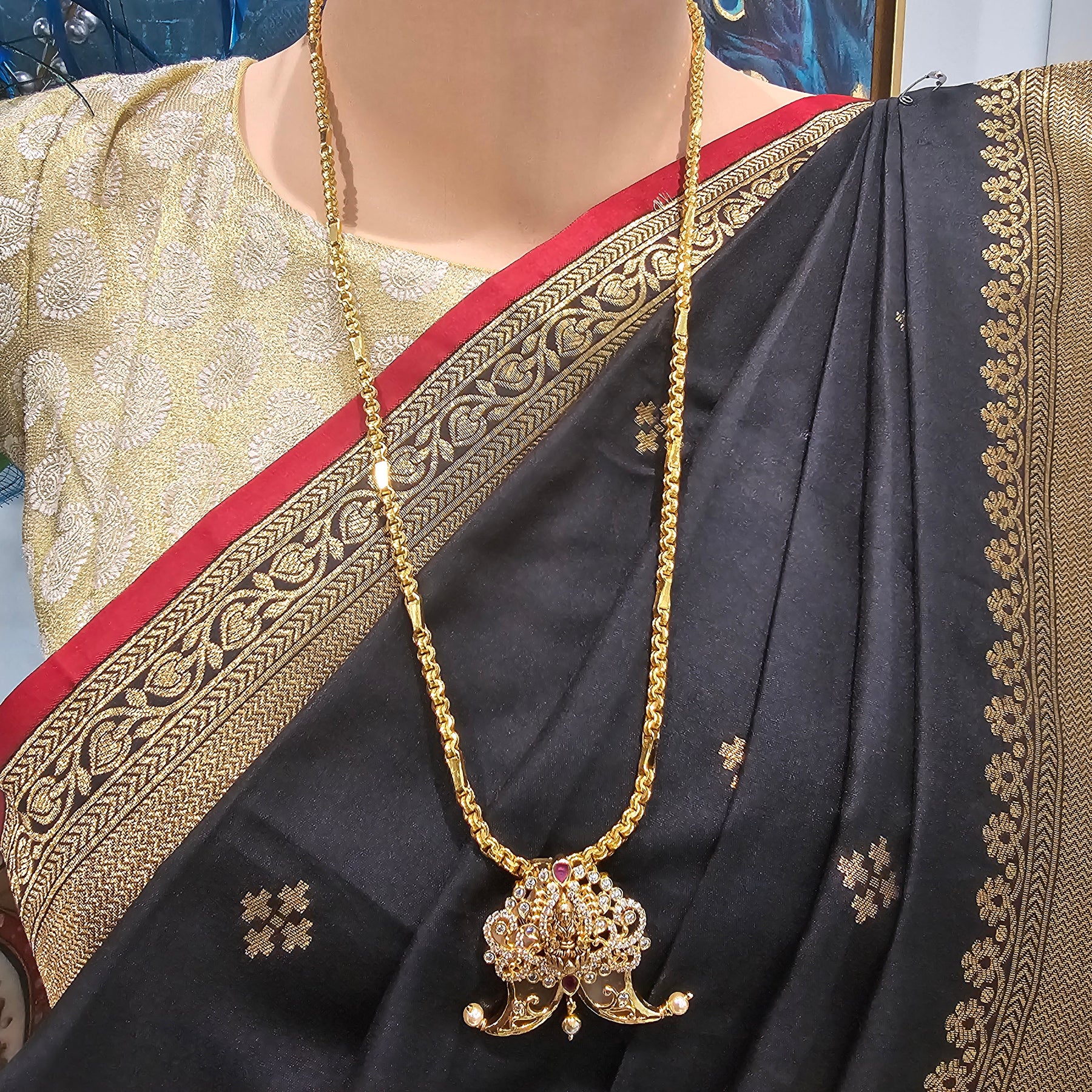 3. Jewelry like guttapusalu or any jewelry overloaded with pearls / stone jewelries need to be handled with utmost care and caution.