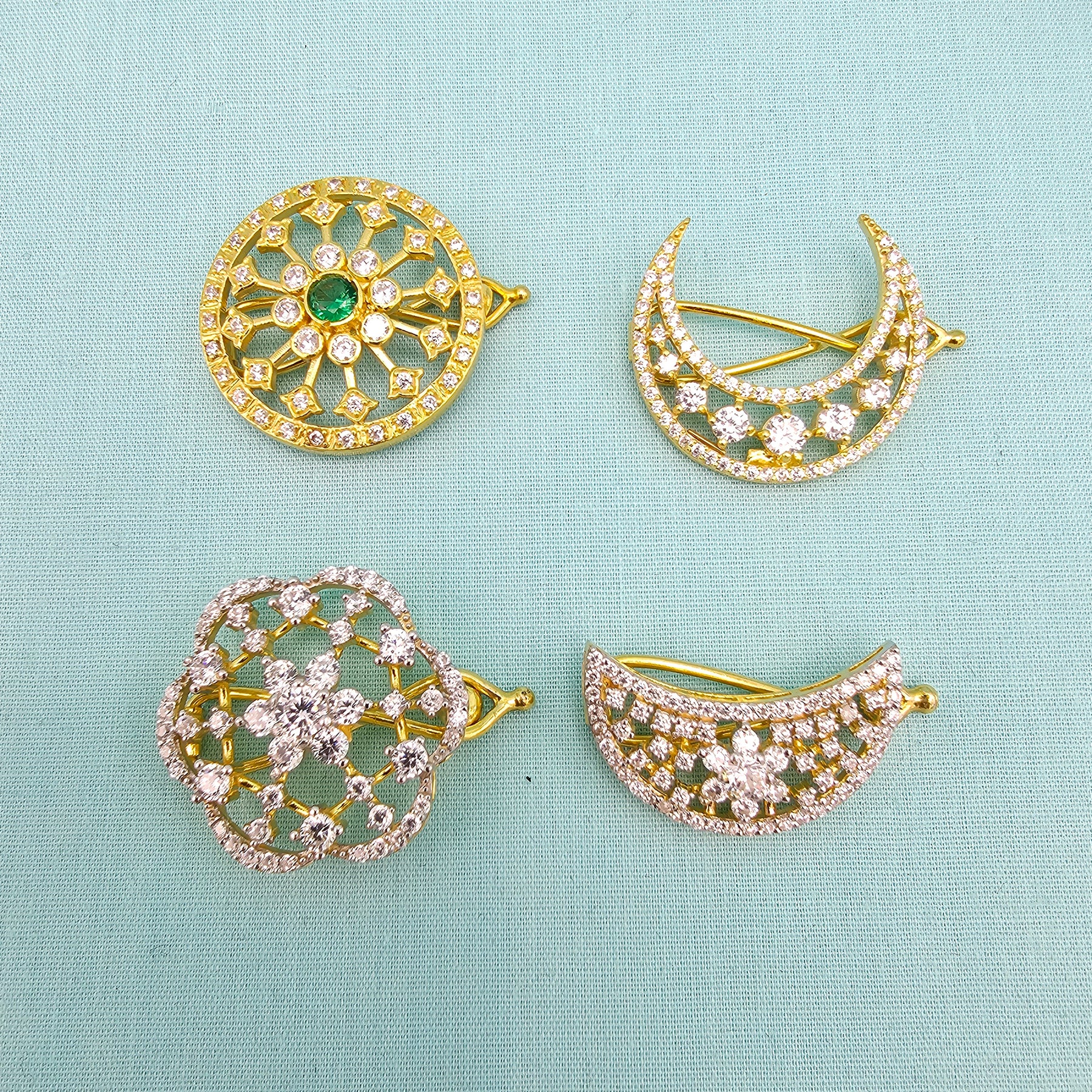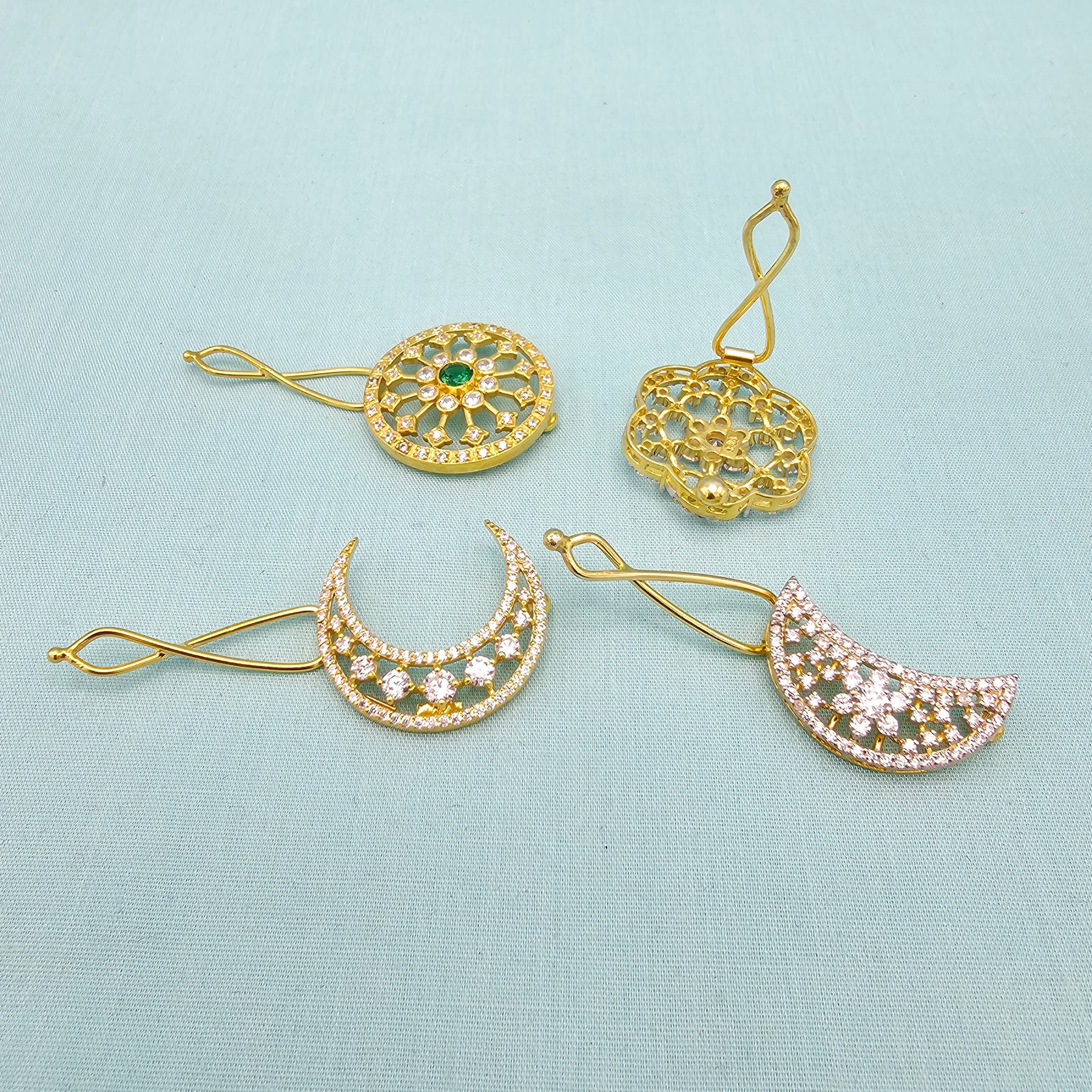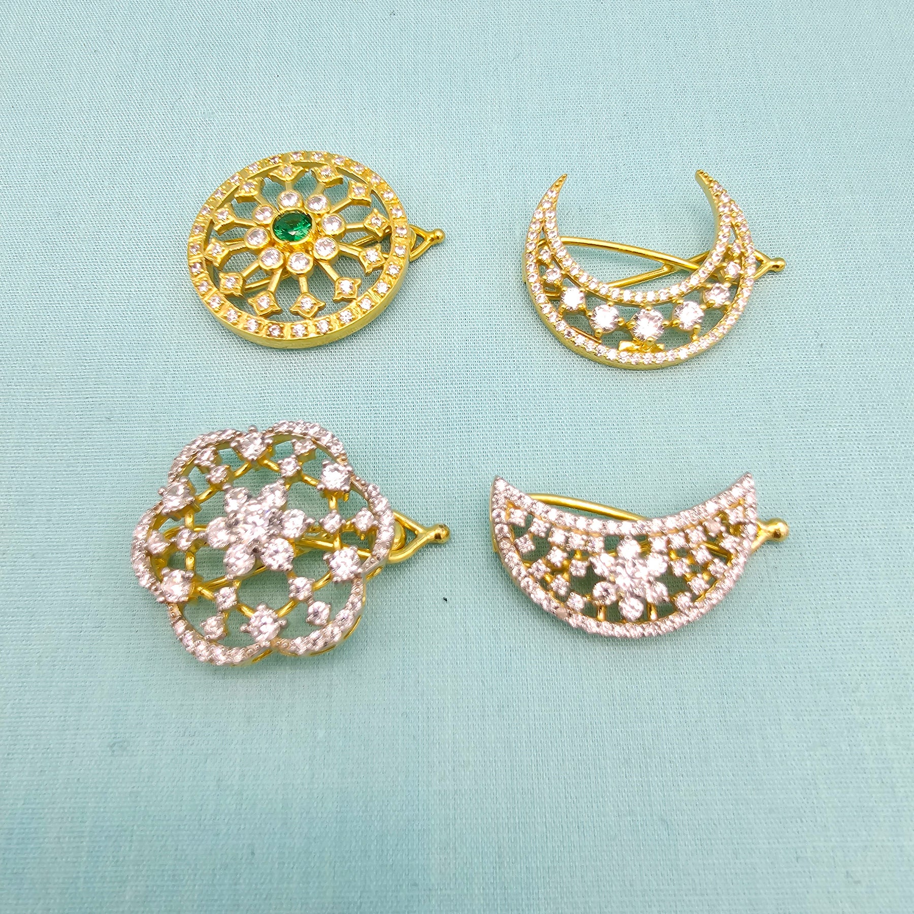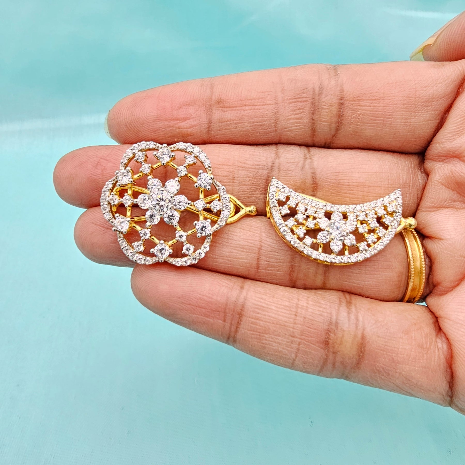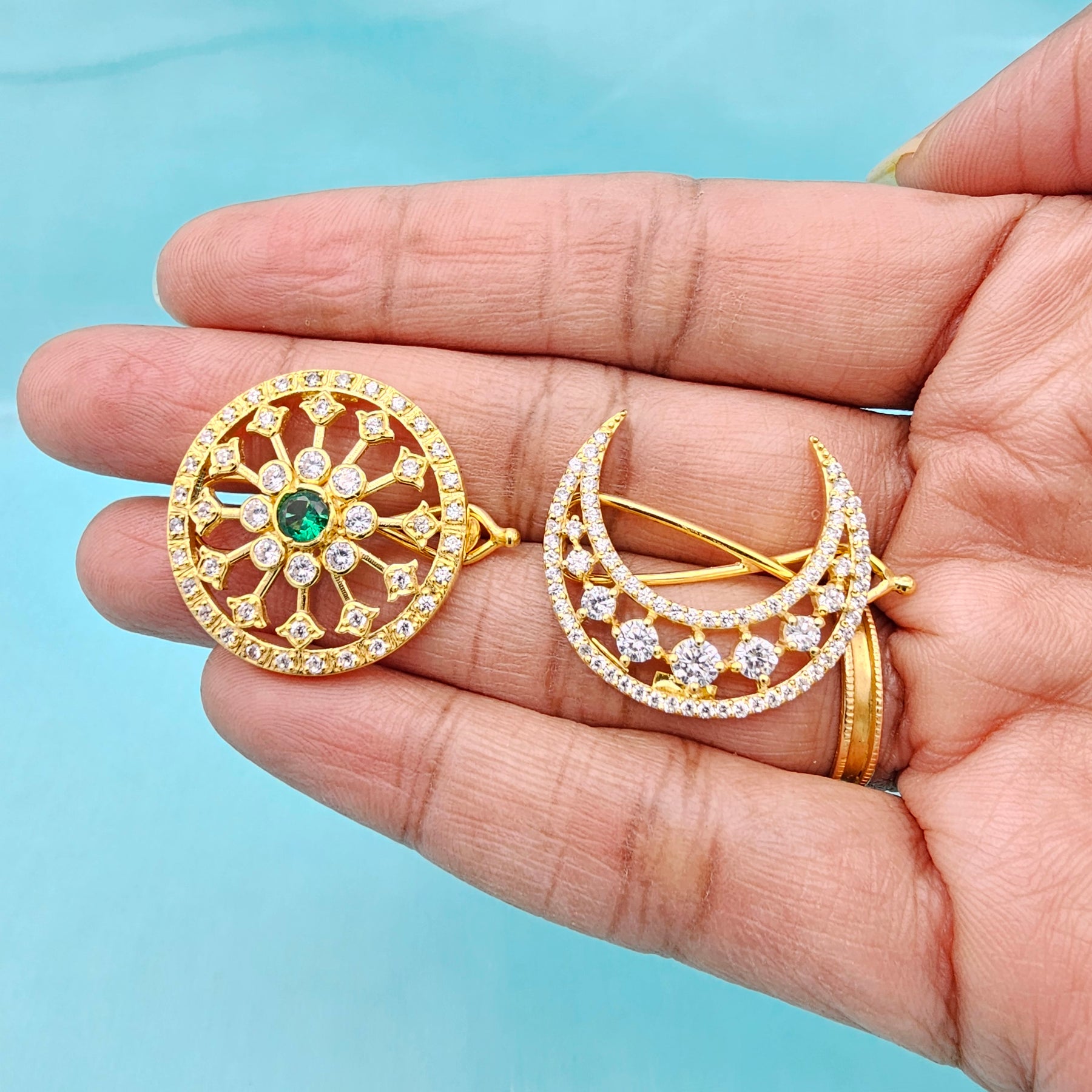 Handmade 92.5 Silver Surya Chandrulu in CZ and Dimond Replica. Bridal hair accessory with 92.5 Hallmark