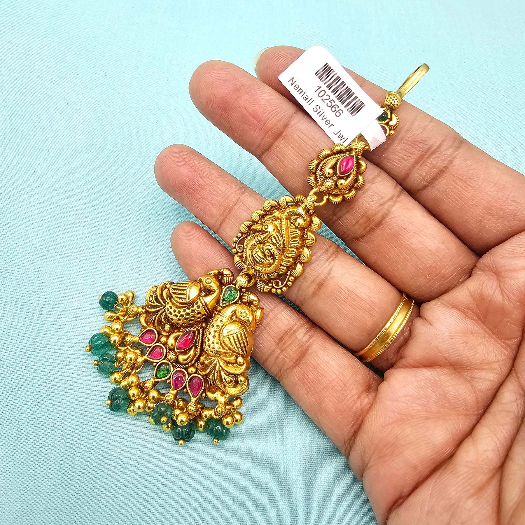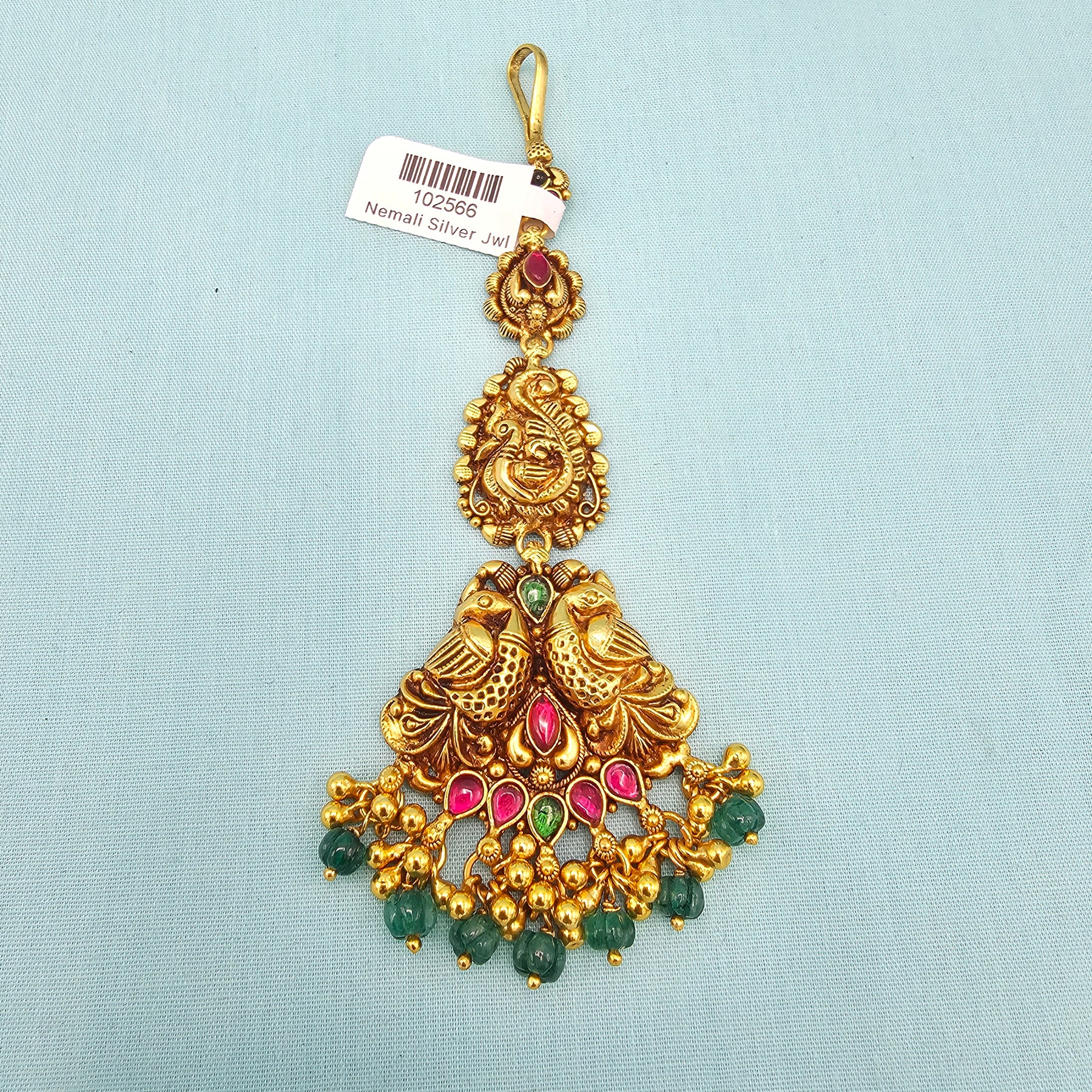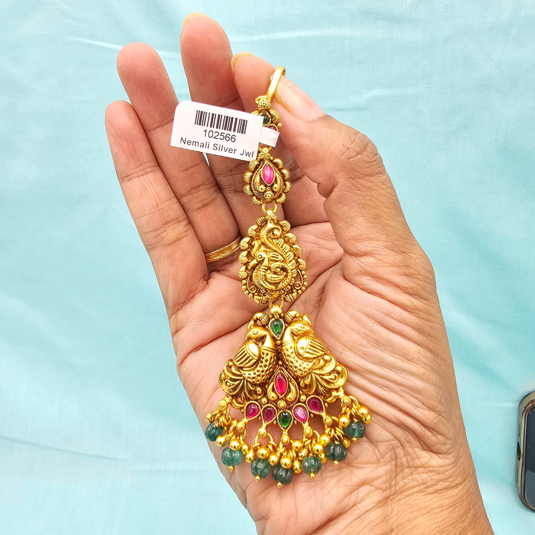 When you adorn maang tikka on your forehead and it will steel the show. This silver Mang Tikka has pink, green and white kundans. This intricately designed " tikka" would surely glamorize any occasion. They give a glamorous outlook to the traditional outfits.