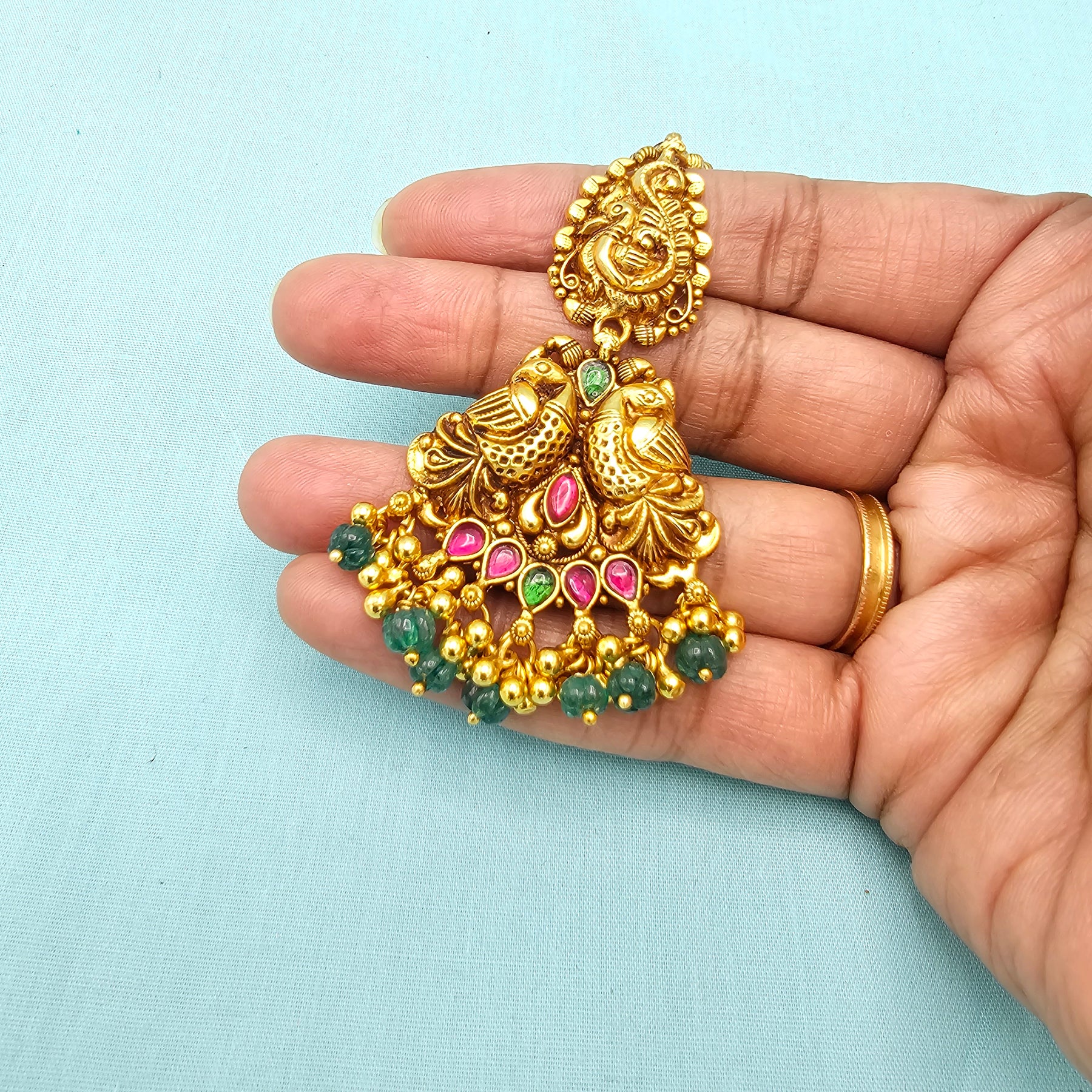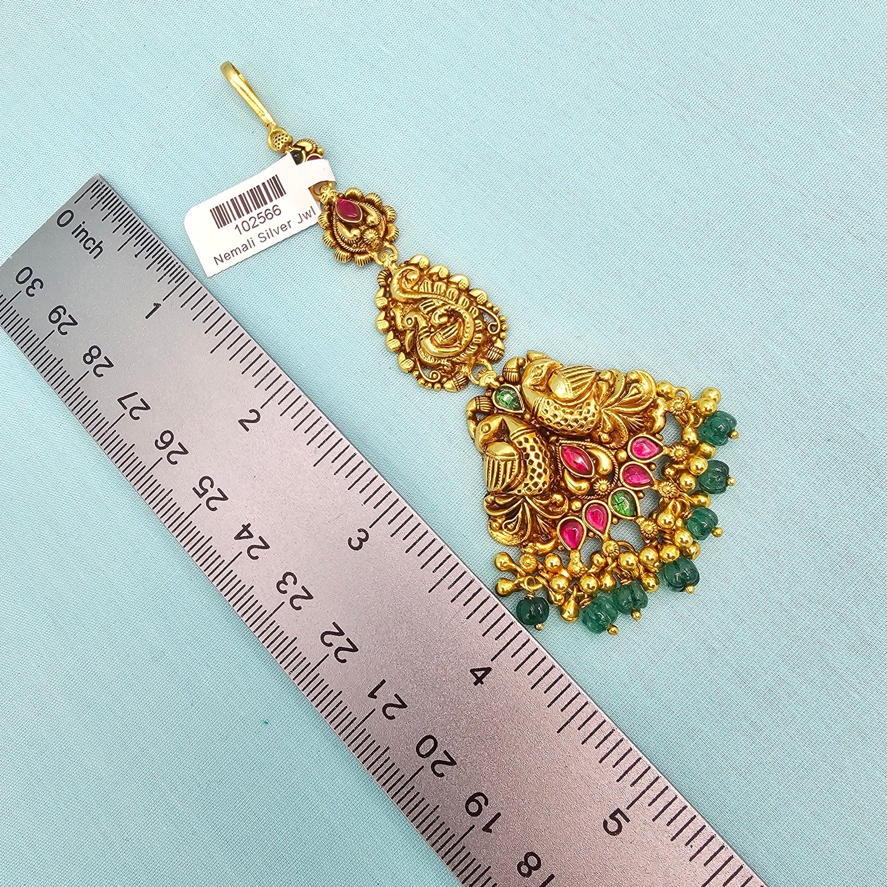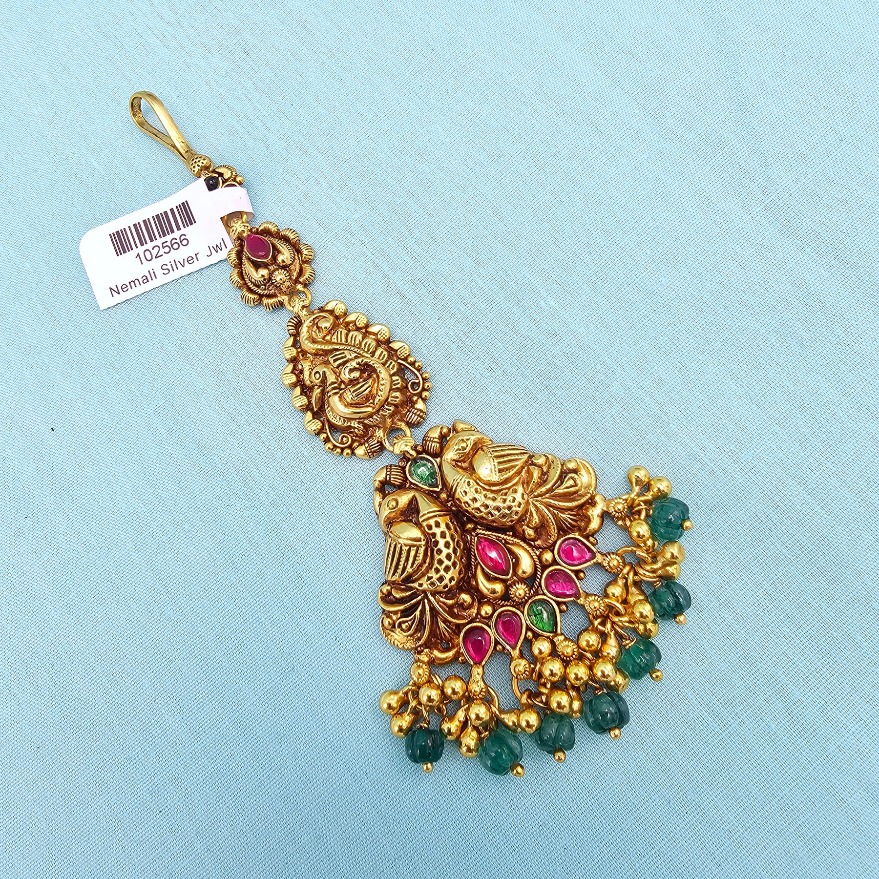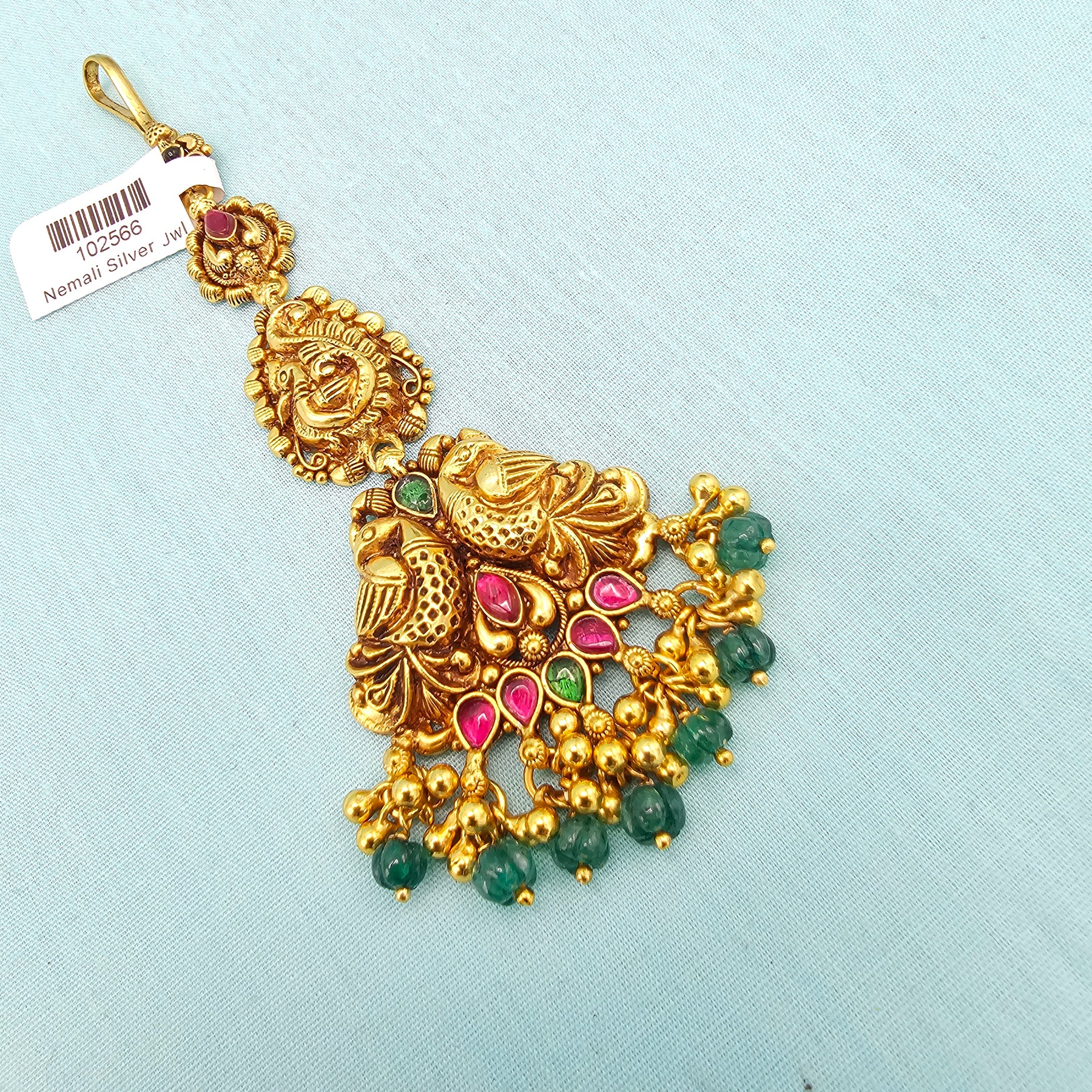 When you adorn maang tikka on your forehead and it will steel the show. This silver Mang Tikka has pink, green and white kundans. This intricately designed " tikka" would surely glamorize any occasion. They give a glamorous outlook to the traditional outfits.