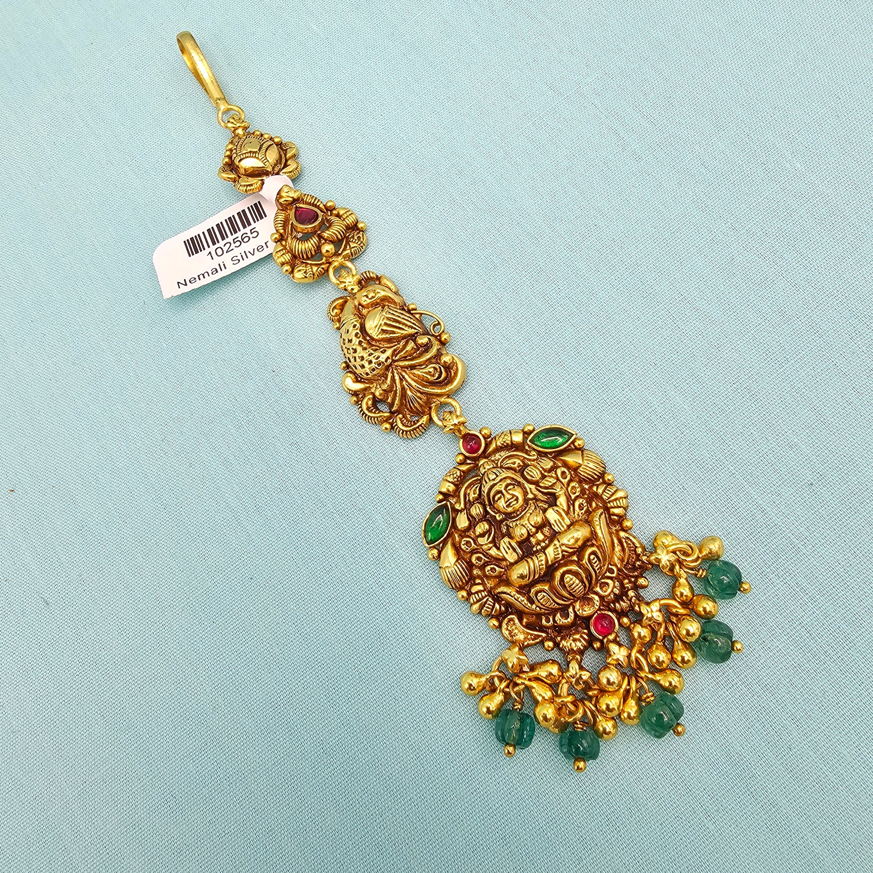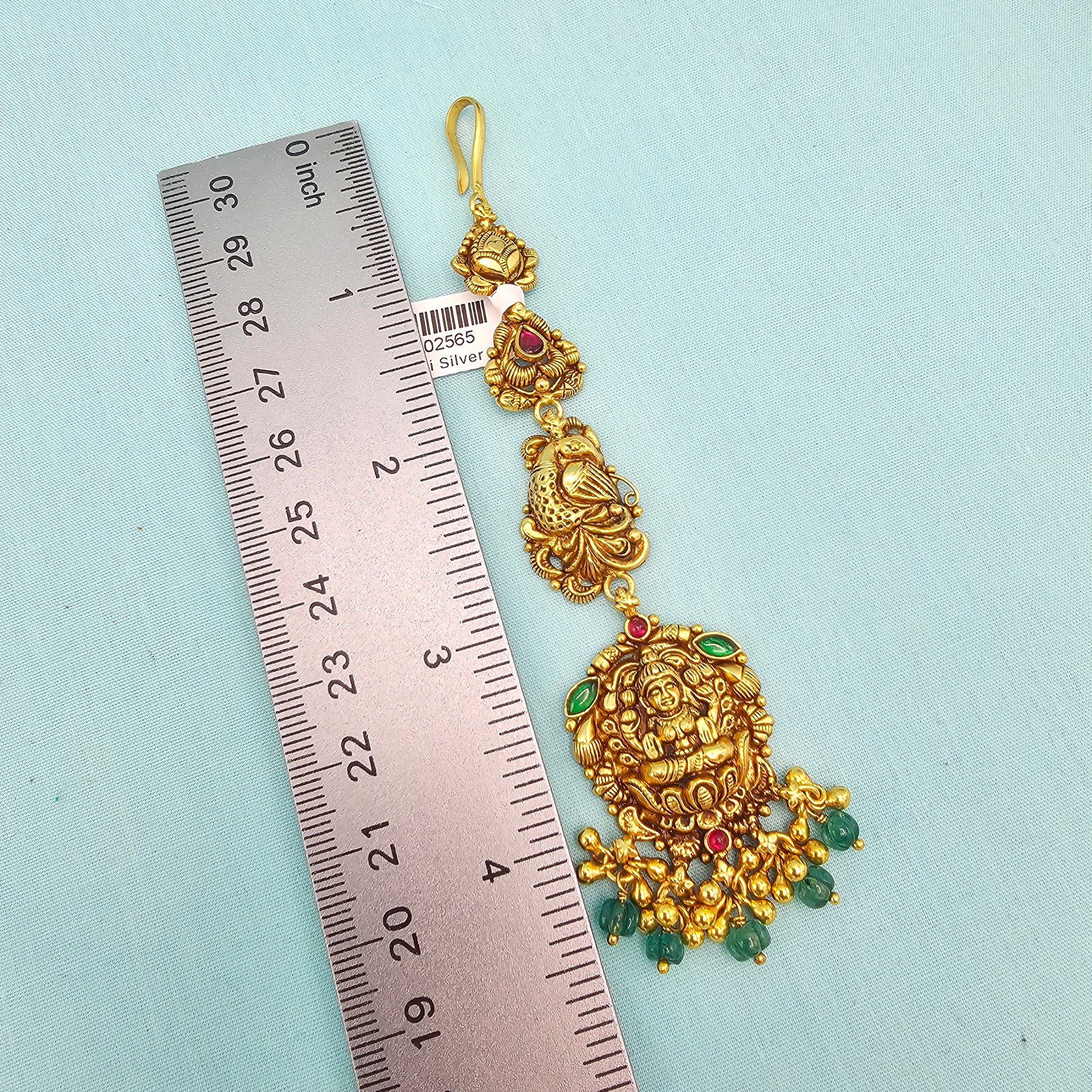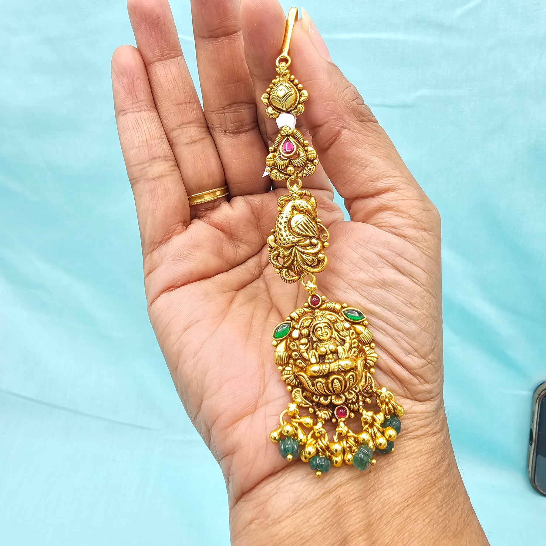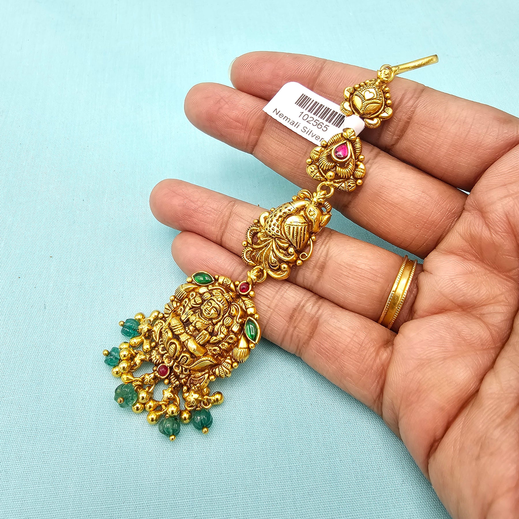 When you adorn maang tikka on your forehead and it will steel the show. This silver Mang Tikka has pink, green and white kundans. This intricately designed " tikka" would surely glamorize any occasion. They give a glamorous outlook to the traditional outfits.