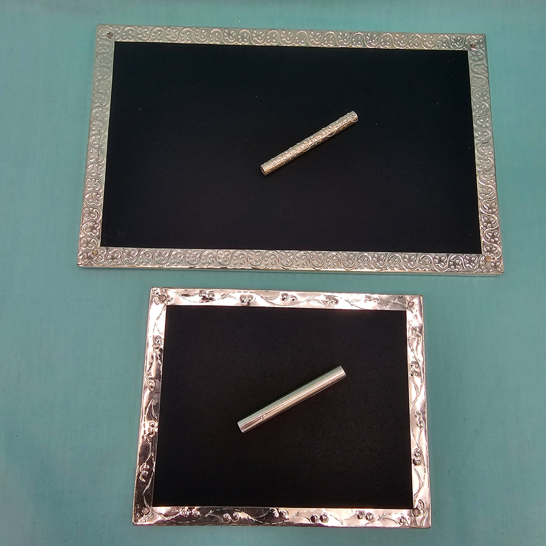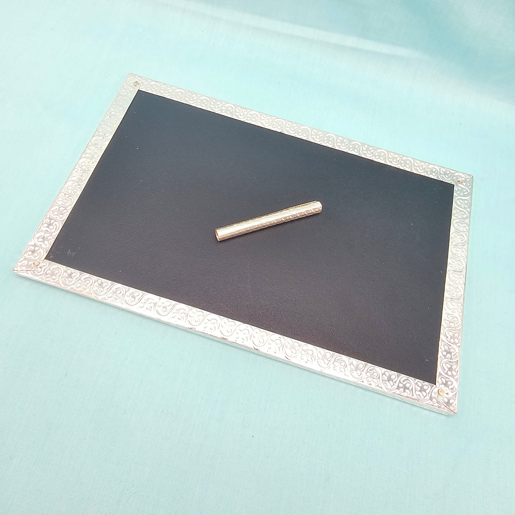 Aksharabhyasam, also known as Vidyarambham, is a traditional Hindu ceremony that marks a child's entry into formal education. The ritual is performed in temples or at home, with children writing their first letters on a plate filled with rice grains or on a slate. This Silver Slate marks a great beginning with found memories for your children's education.
