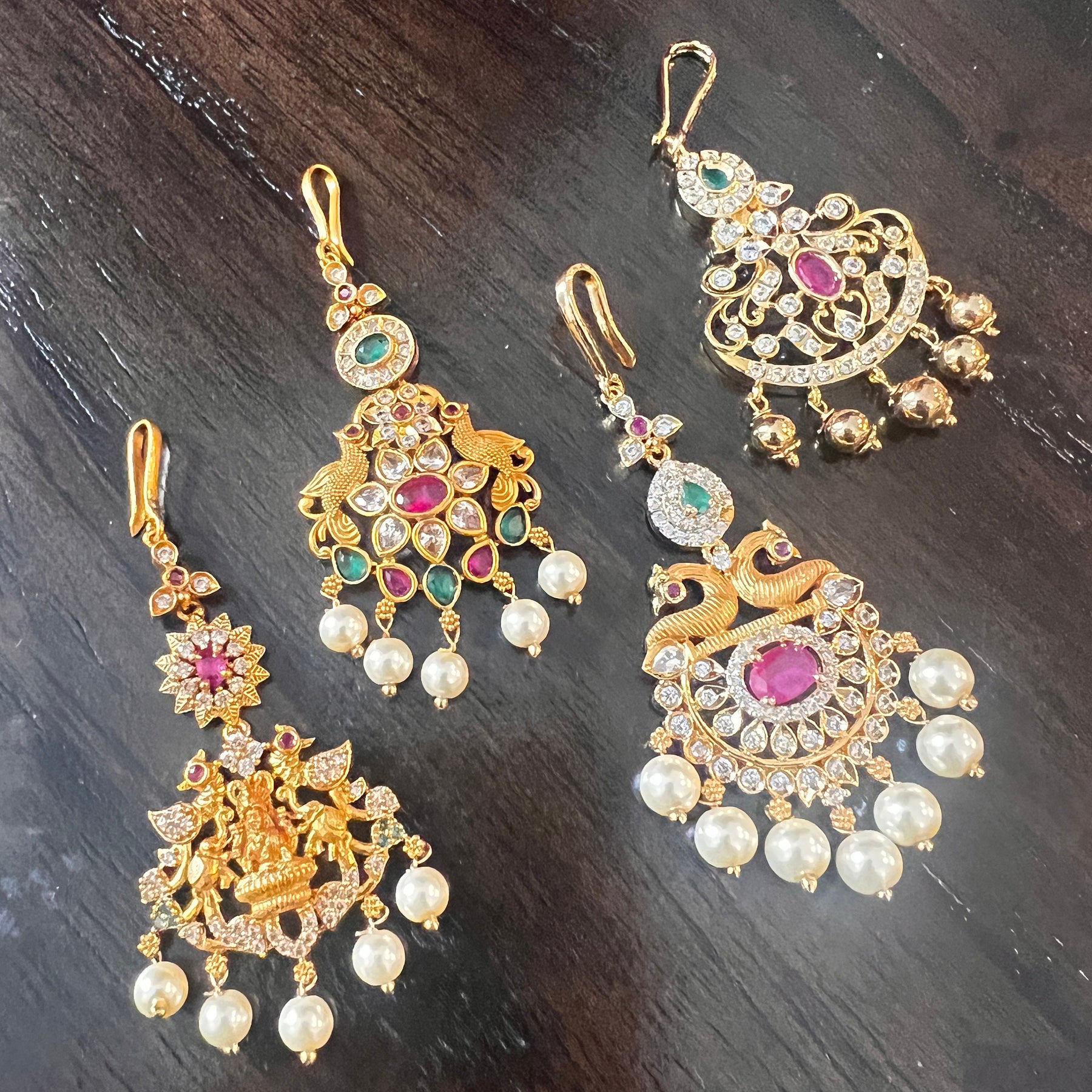 When you adorn mang tikka on your forehead, it will bring out the real beauty of an Indian lady. The Mang Tikka has semiprecious Emerald, Ruby, embedded in them. This intricately designed " Temple design Matt tikka" would surely glamorize any occasion.
