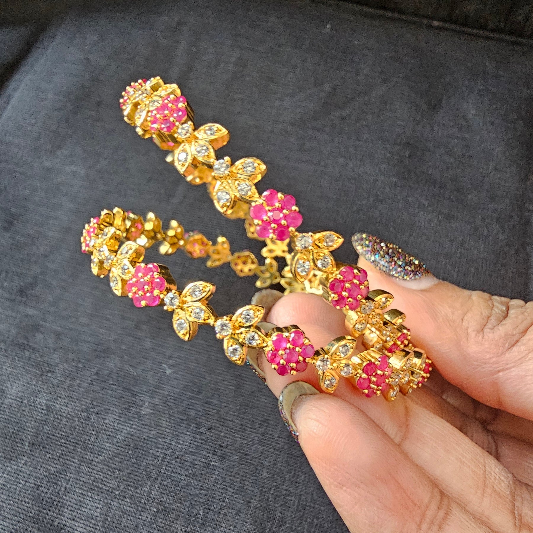 Gorgeous gold-plated bangle/ bracelet best exemplifies the careful craftsmanship done on it - a specialty at Nemali Jewelry. It has a special tone of elegance attached to it. The intricate handmade design of the bangle/bracelet set gives it a fresh and original look.