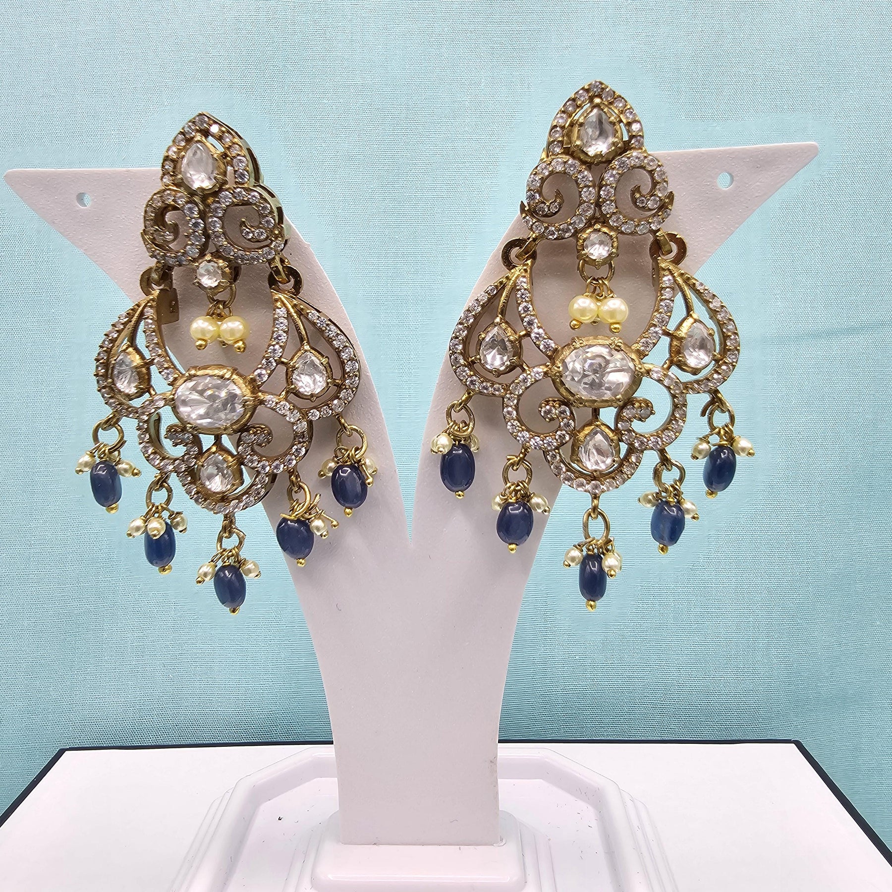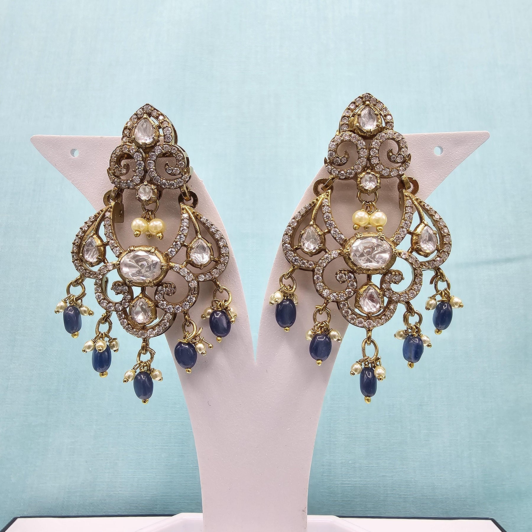 92.5 victorian Jhumka, Moissanite Jhumka, green beads Jhumka, Indian traditional jhumka, Silver earrings