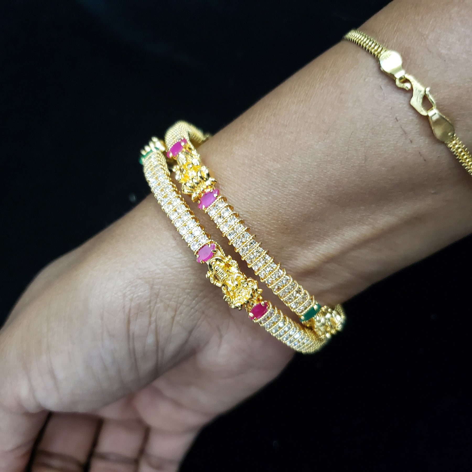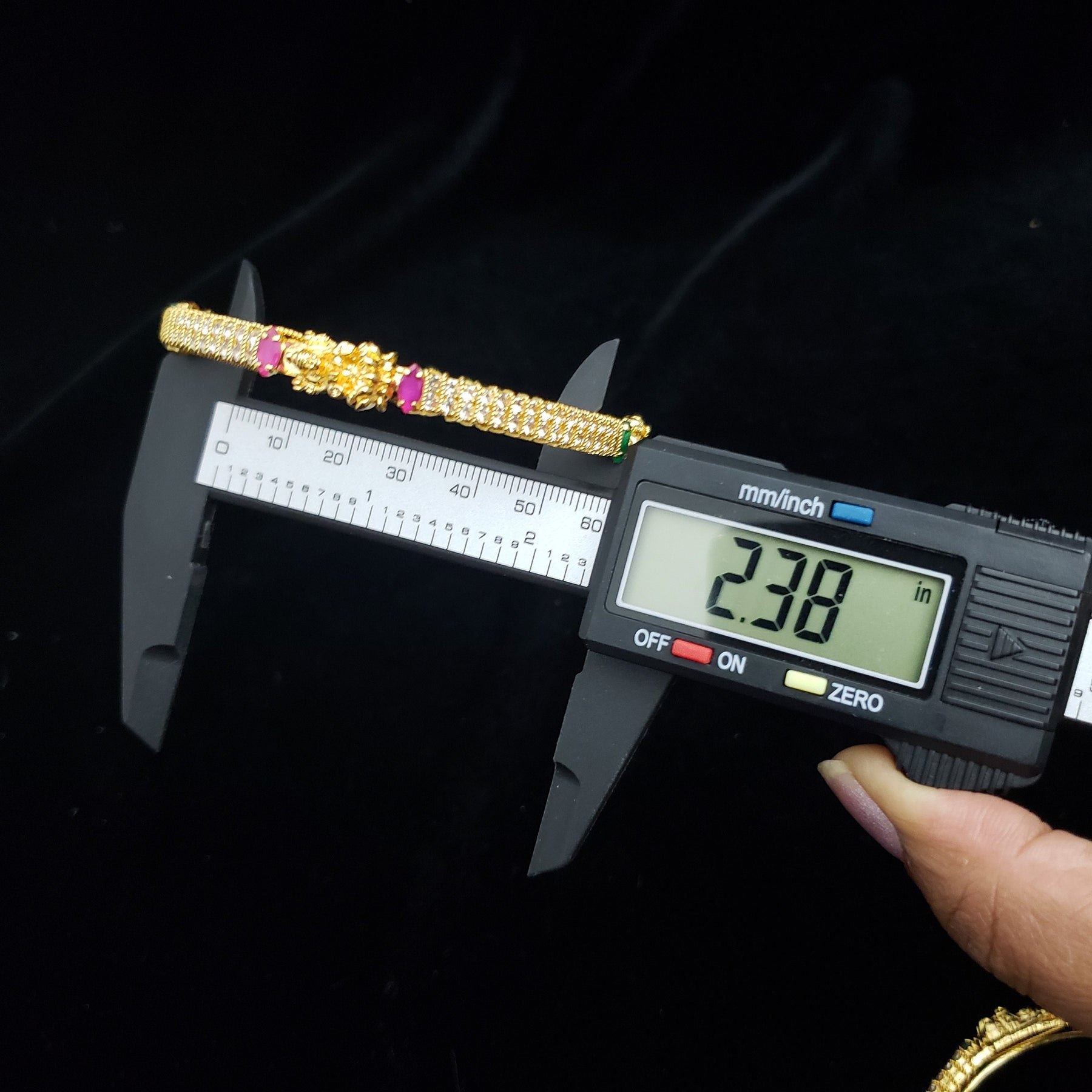 Gorgeous gold-plated bangle/ bracelet best exemplifies the careful craftsmanship done on it - a specialty at Nemali Jewelry. It has a special tone of elegance attached to it. The intricate handmade design of the bangle/bracelet set gives it a fresh and original look.