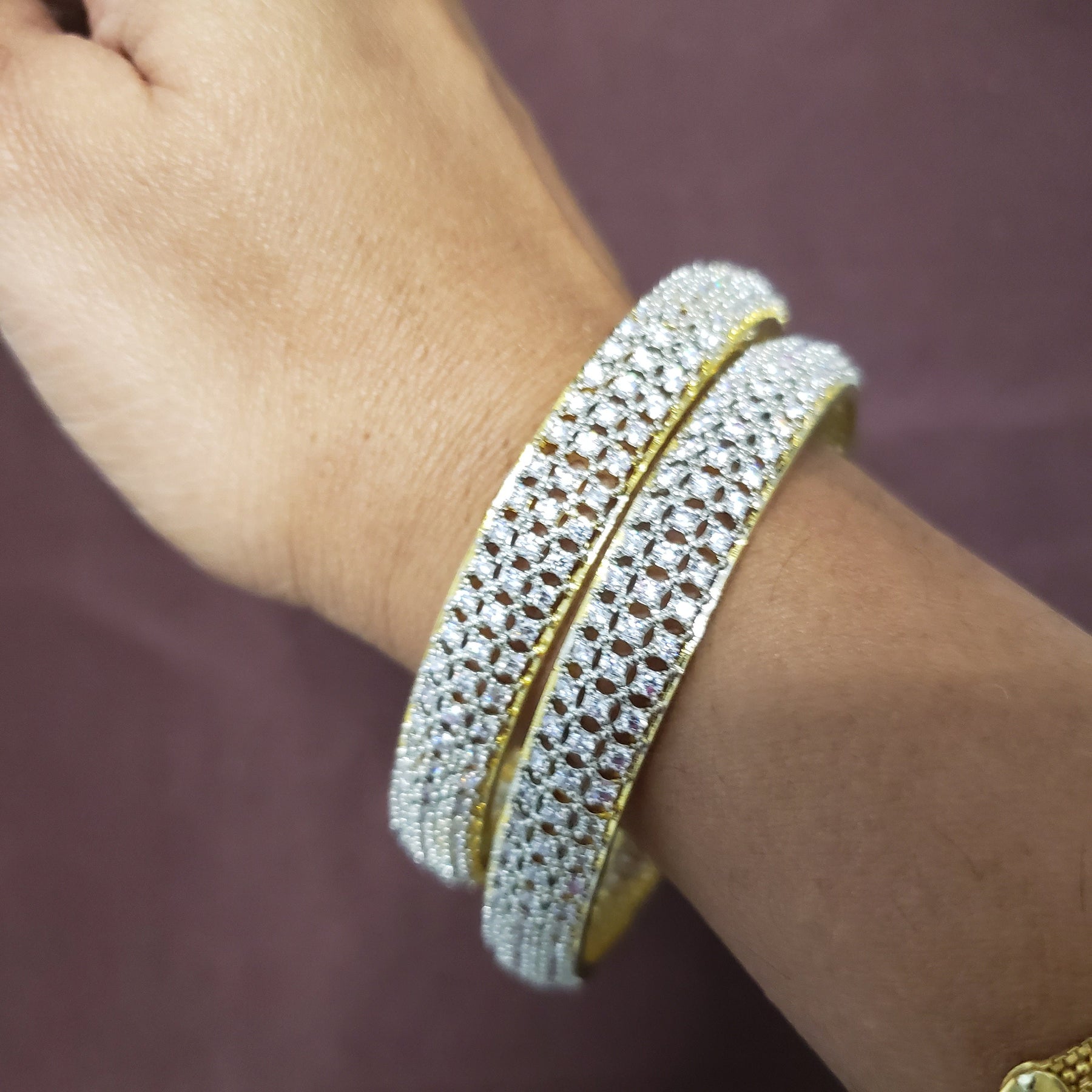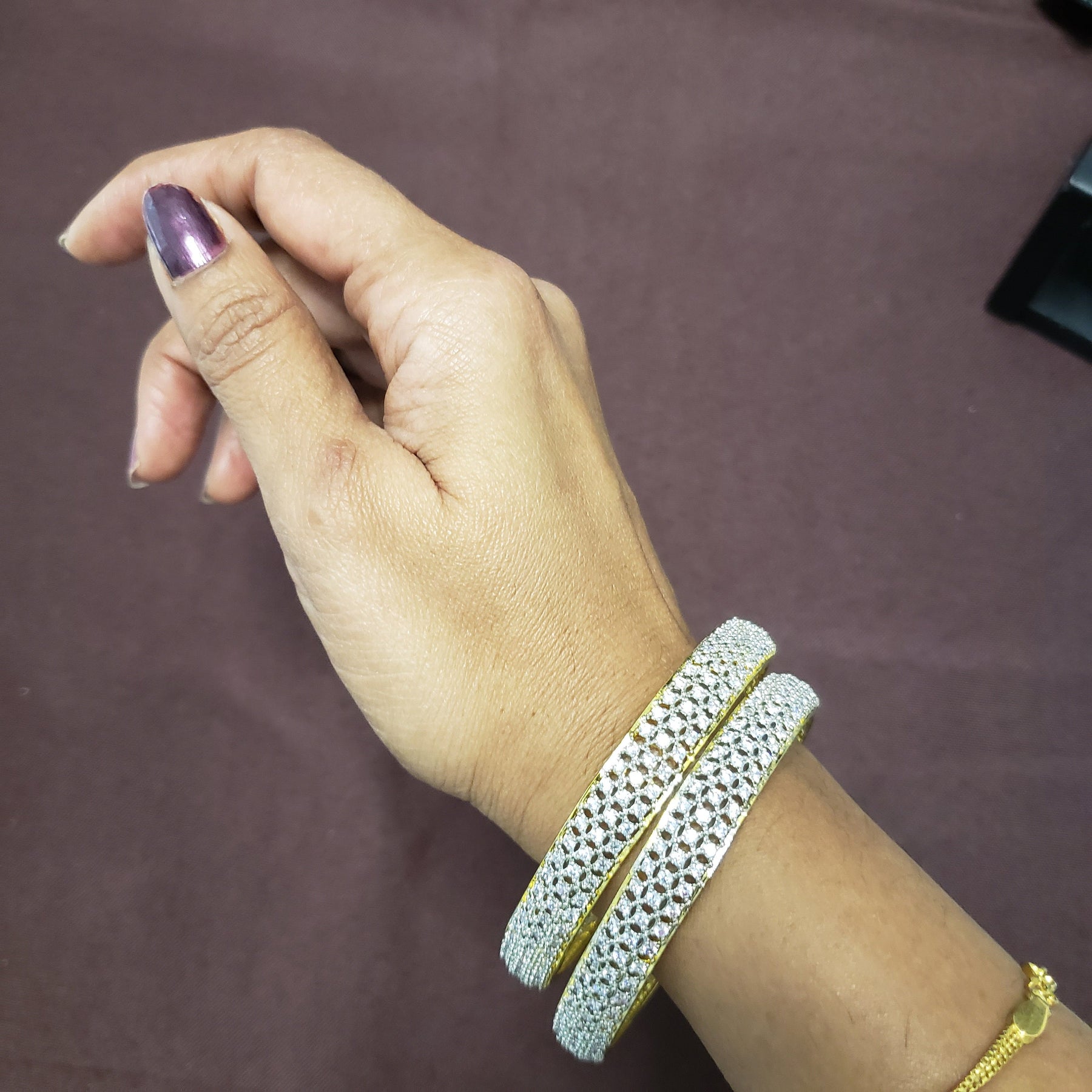 Look your best with this elegant-looking bangle/bracelet set from the house of Nemali Jewelry. This set looks elegant at first glance. You can Mix and match or easily pair it up with Glass bangles, Thread work bangles, Stone or Kundan bangles. Due to the simple intricate design of this jewelry piece, it Ideally goes well with Sarees, Dresses, and Kurtis.